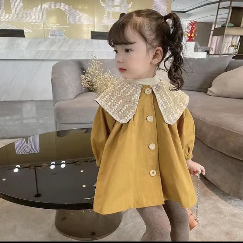 여아 코트 2025 봄 새로운 스타일 여아 한국 스타일 탑 여아 중간 길이 보우 윈드 브레이커 유행스토어 가기