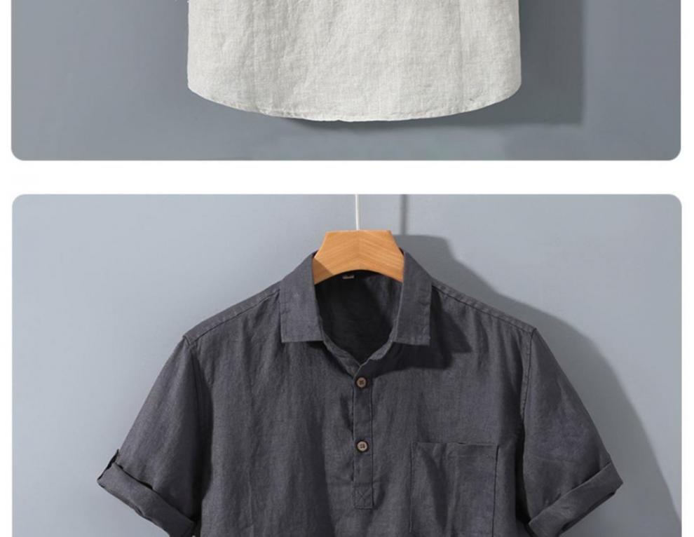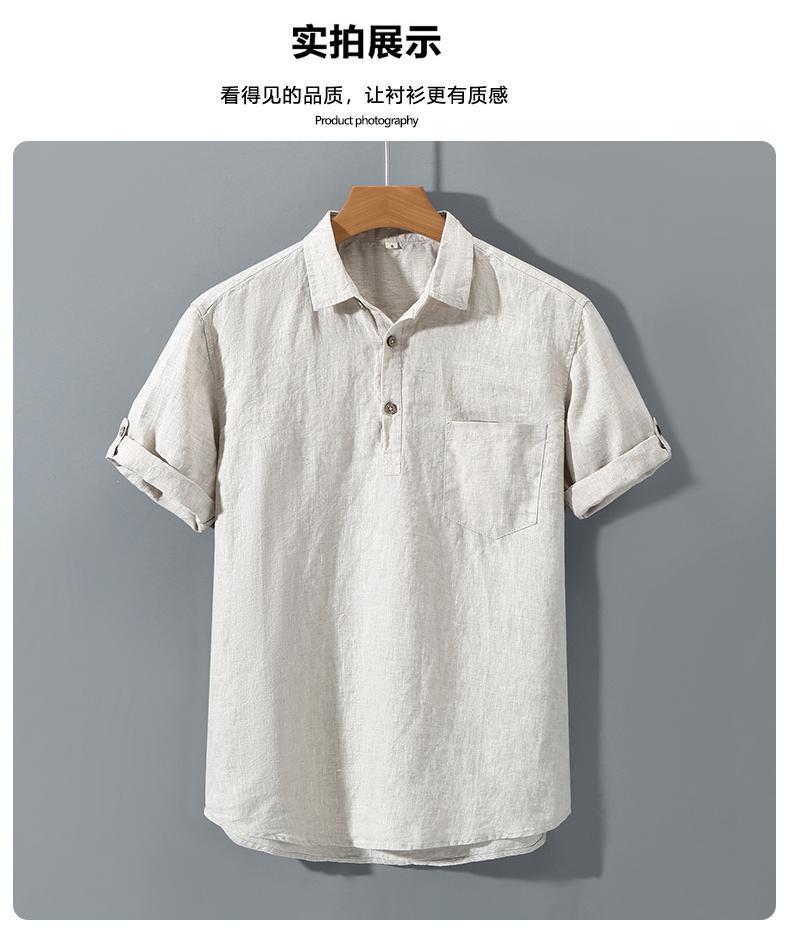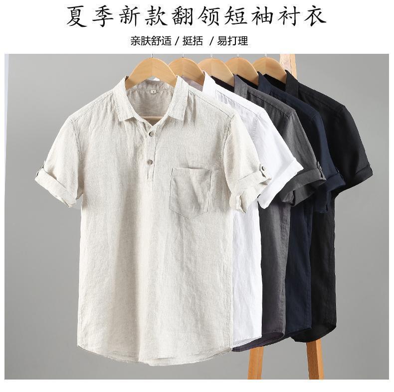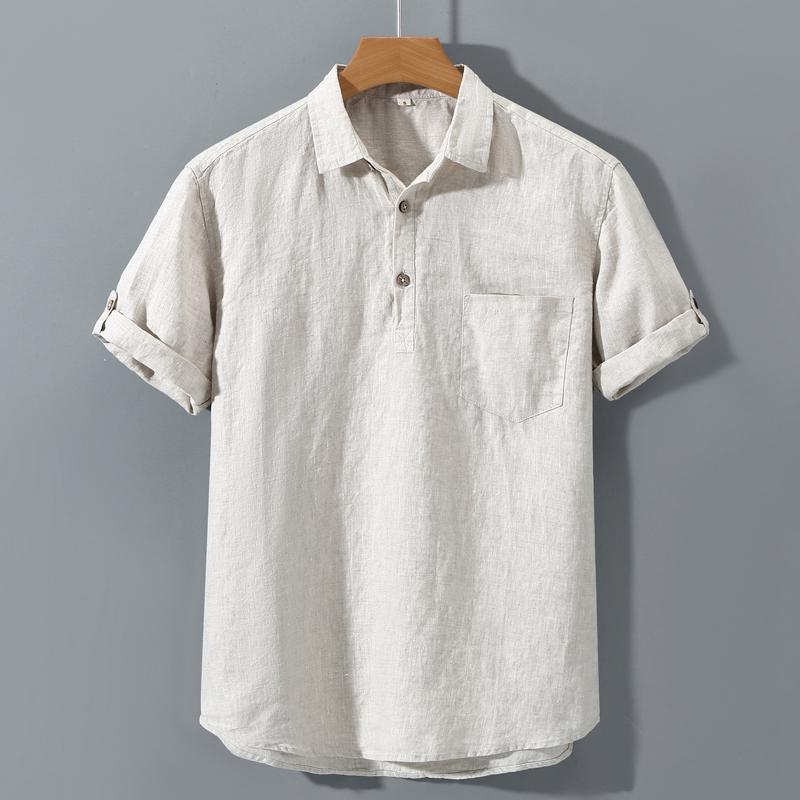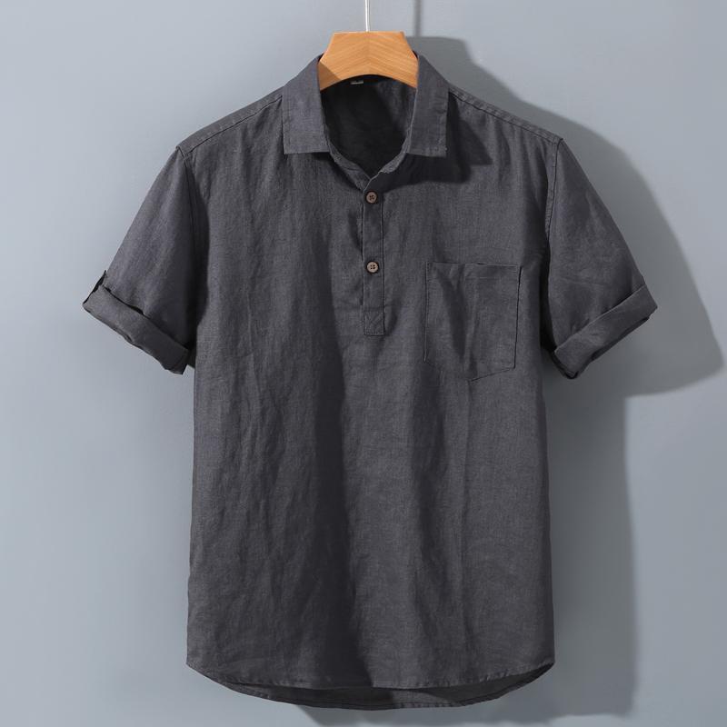 남성용 순수 리넨 반팔 셔츠 리넨 남성용 캐주얼 원사 염색 원단 풀 리넨 셔츠스토어 가기