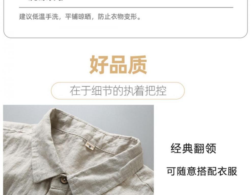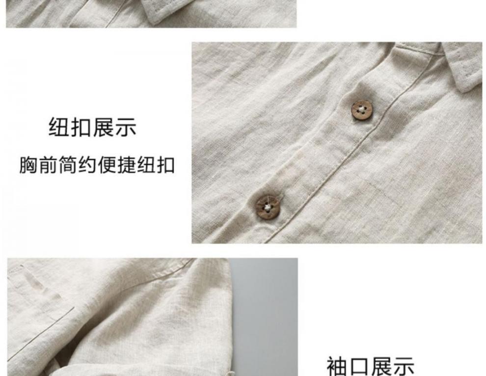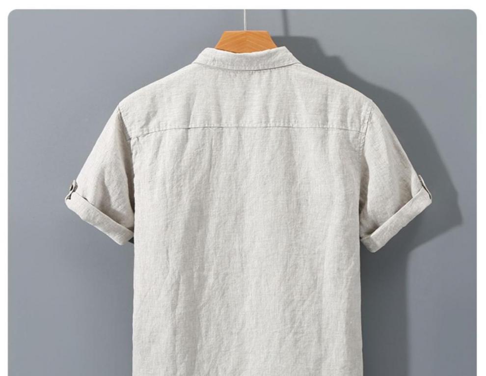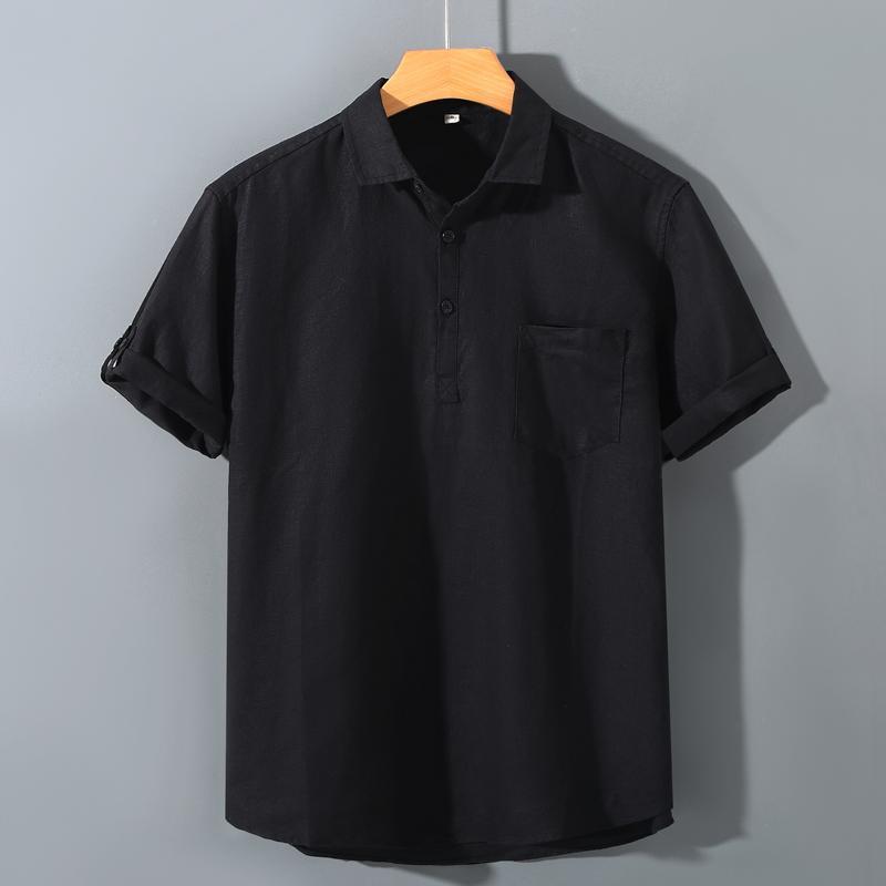 남성용 순수 리넨 반팔 셔츠 리넨 남성용 캐주얼 원사 염색 원단 풀 리넨 셔츠스토어 가기
