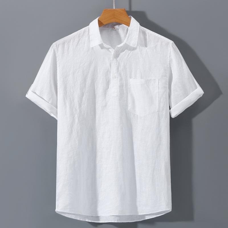 남성용 순수 리넨 반팔 셔츠 리넨 남성용 캐주얼 원사 염색 원단 풀 리넨 셔츠