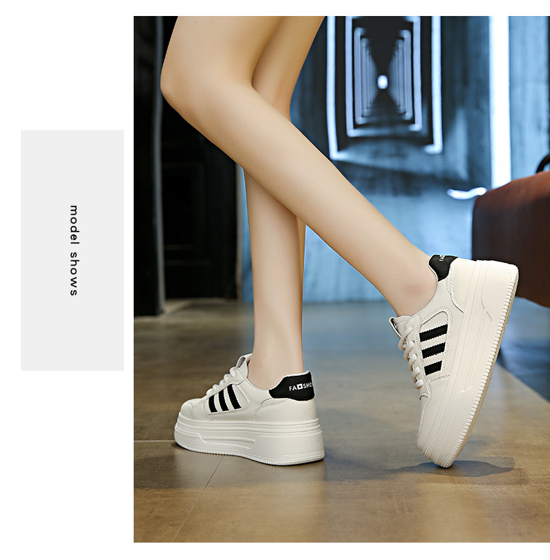 작은 흰색 신발 여성의 2025 새로운 폭발 두꺼운 밑창 캐주얼 운동화 봄 올 매치 작은 높이 보드 신발스토어 가기