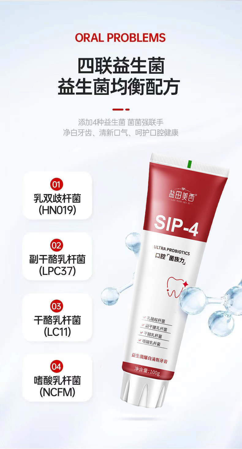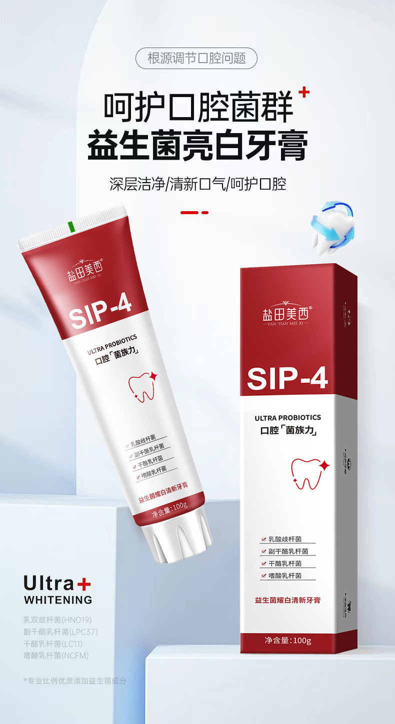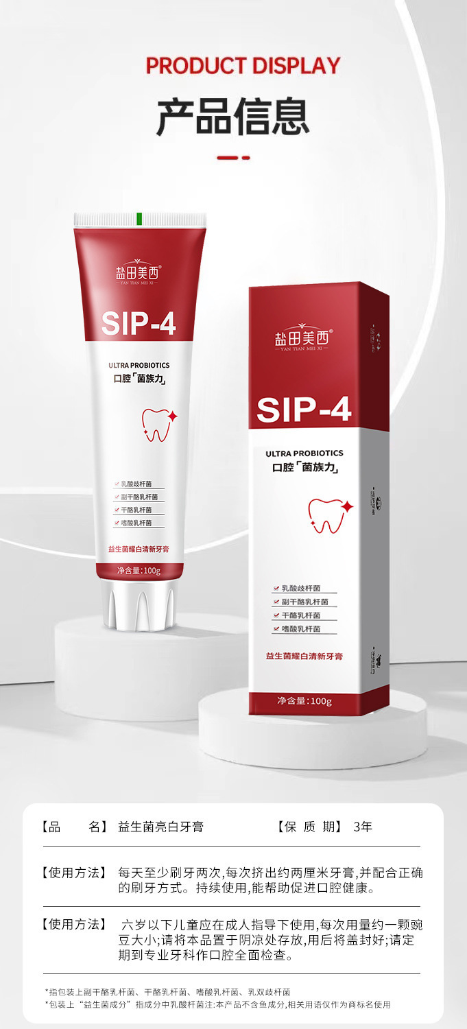 Yantian Meixi 인터넷 연예인 인기 치약 신선한 호흡과 치아 얼룩 감소 SP4 구강 프로바이오틱스 화이트닝 치약스토어 가기