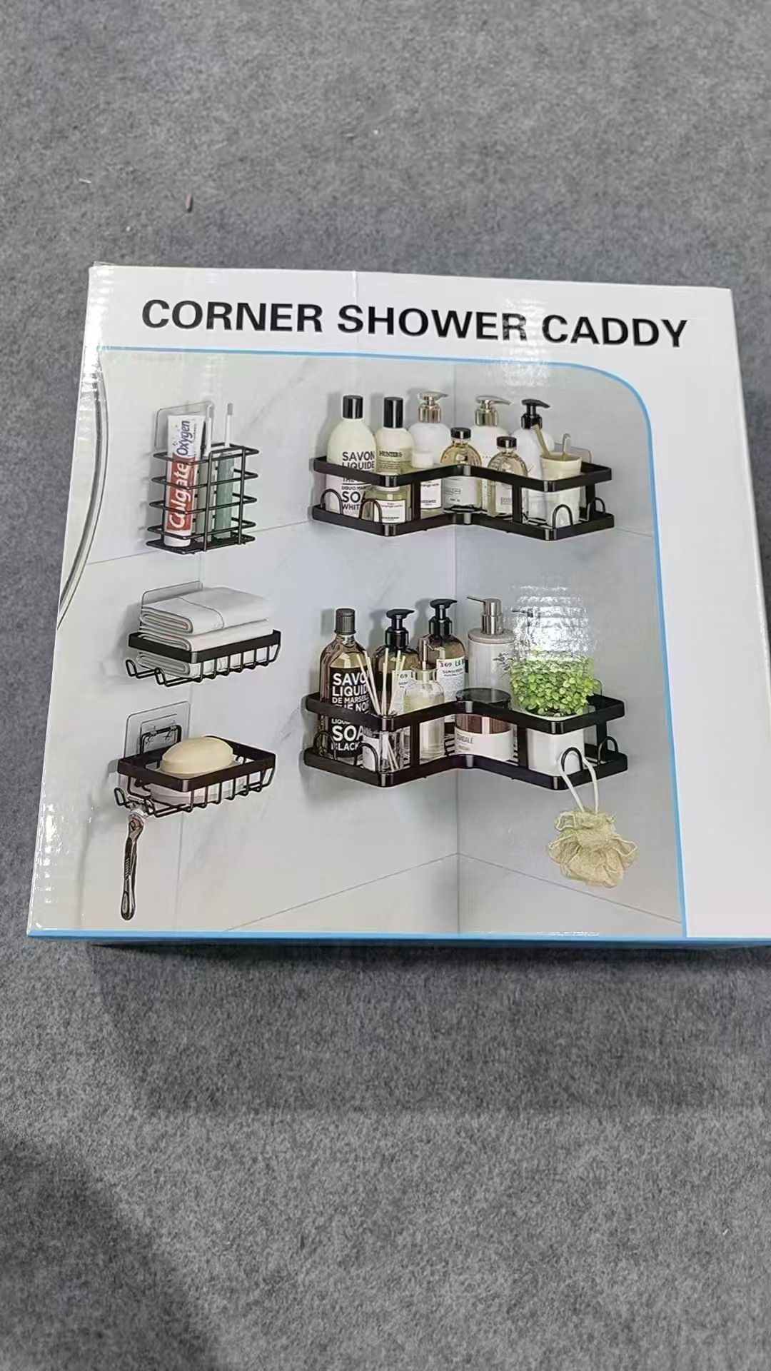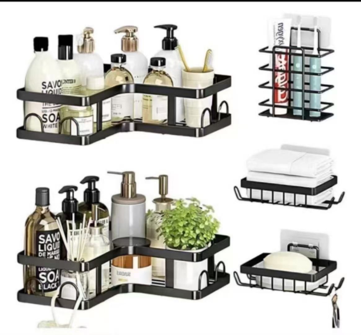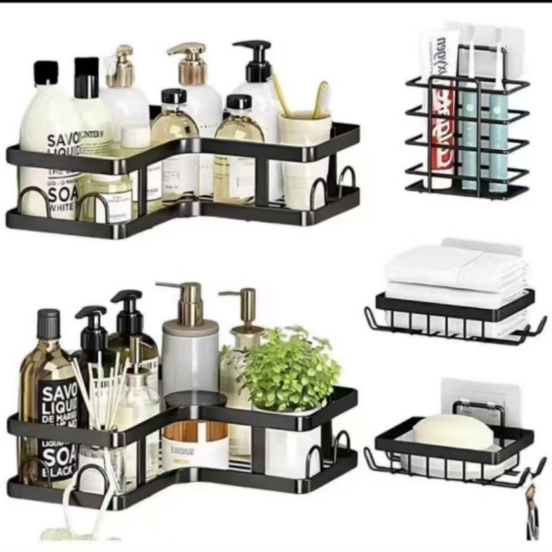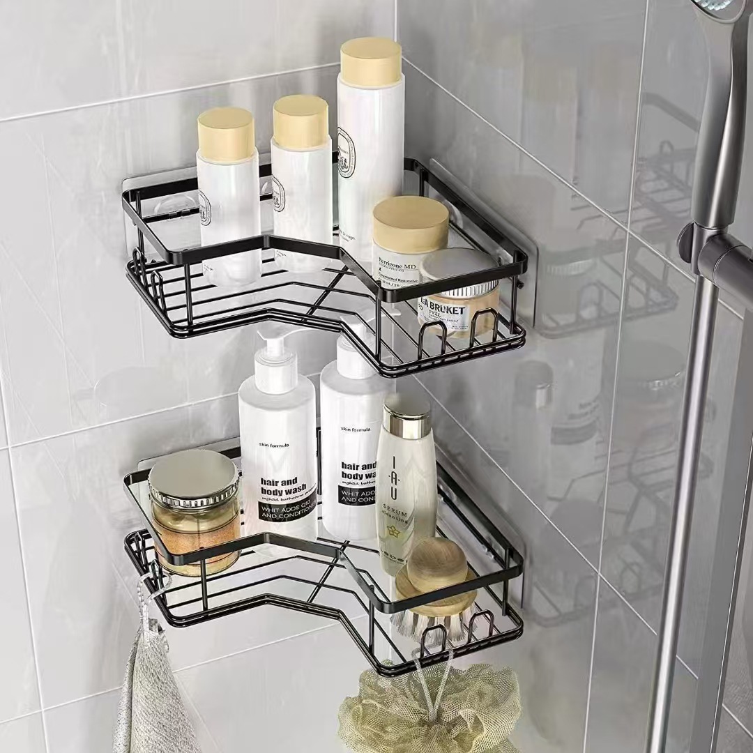 욕실 삼각대, 욕실 세면대, 벽걸이형 수납선반, 화장실, 욕실, 주방 수납을 위한 국경 간 펀치 없는 욕실 삼각대스토어 가기