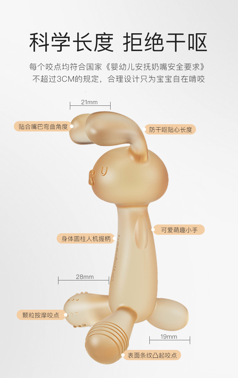 귀토끼 치발기, 아기 어금니 스틱, 아기 씹는 장난감, 실리콘 장난감, 핸드피드 방지