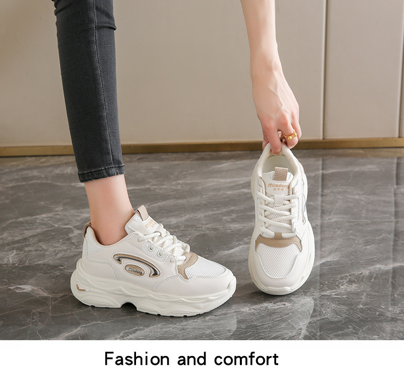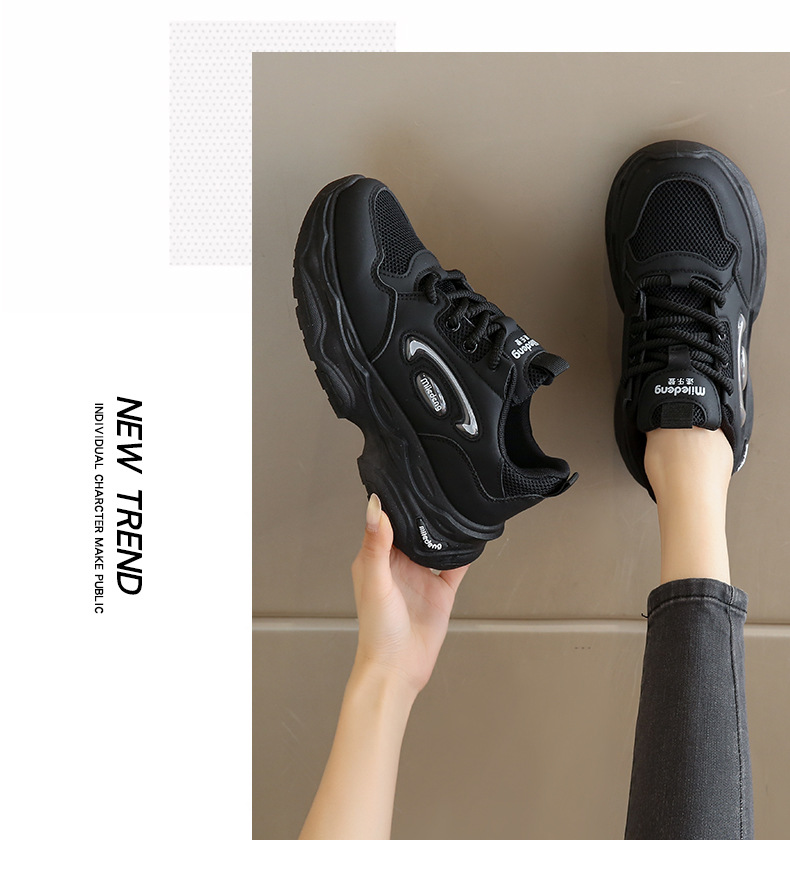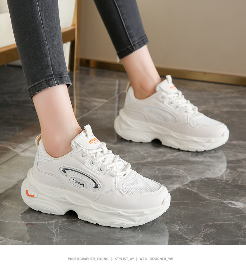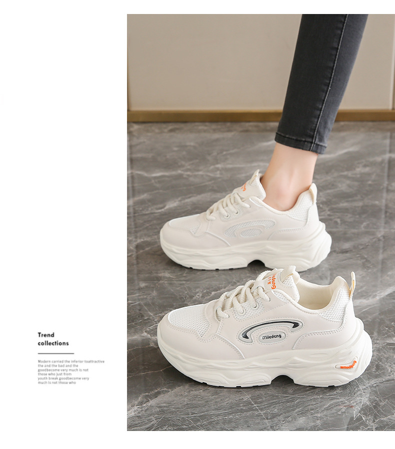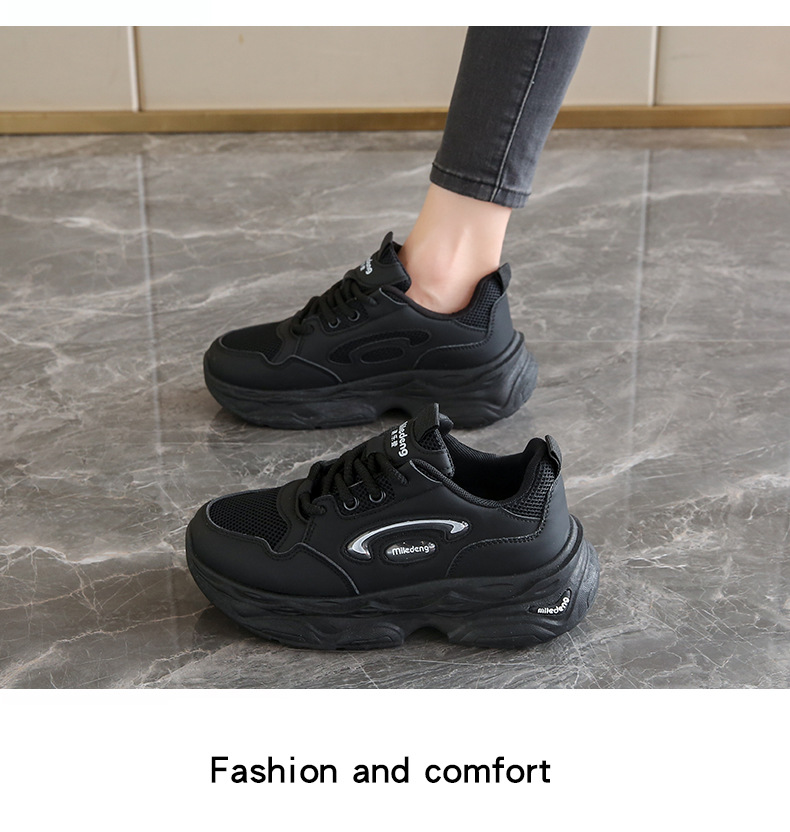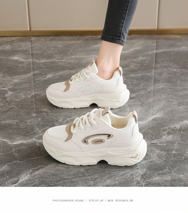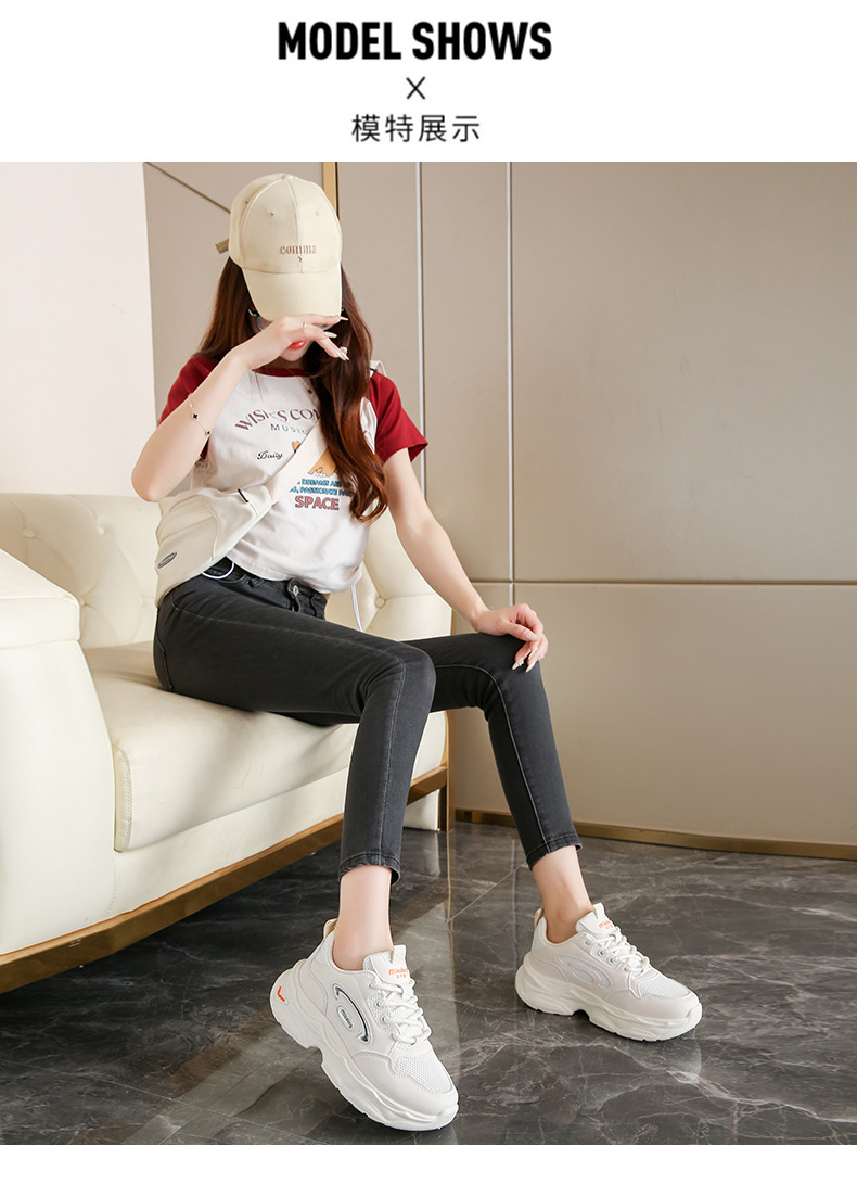 여성 신발 2025 여름 새로운 다목적 하이 엔드 캐주얼 스포츠 신발 여학생 캠퍼스 두꺼운 밑창 높이 증가 아빠 신발스토어 가기