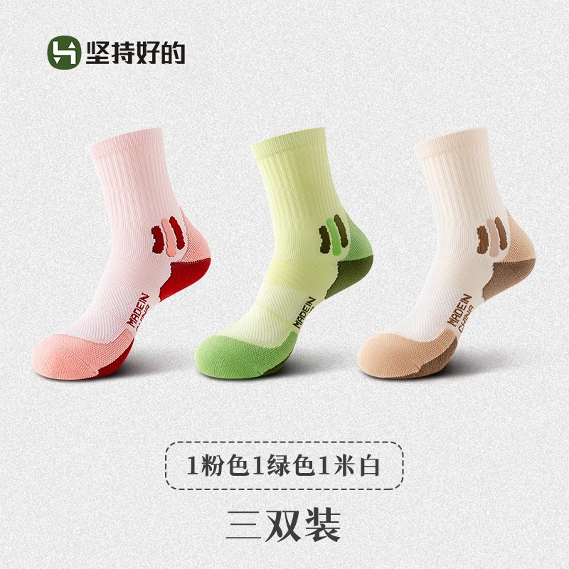여성용 중간 길이 양말 3켤레 세트, 야외 하이킹, 등산, 러닝, 사이클링 양말, 타월 바닥 배드민턴 양말, 냄새 방지 및 통기성