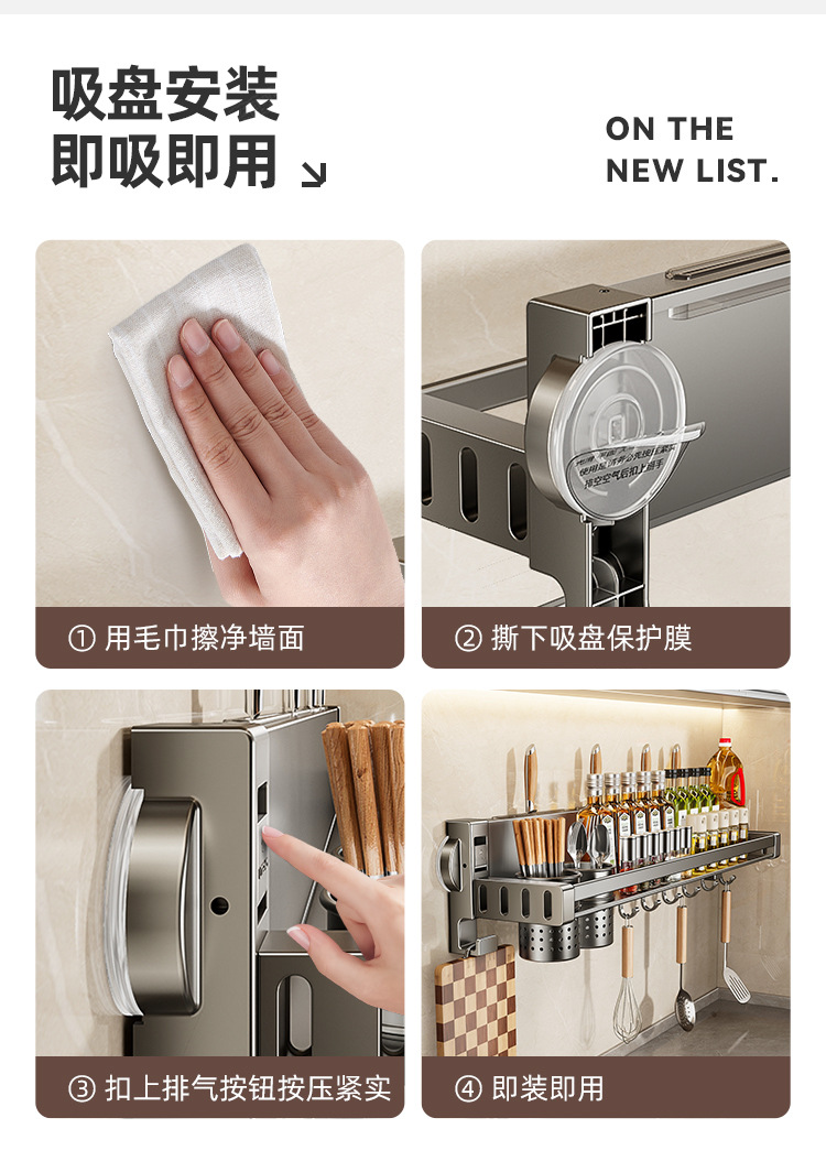 강력한 흡입 컵 나이프 랙 스토리지 랙 주방 가정용 다기능 비 펀치 벽 장착 젓가락 스토리지 랙스토어 가기