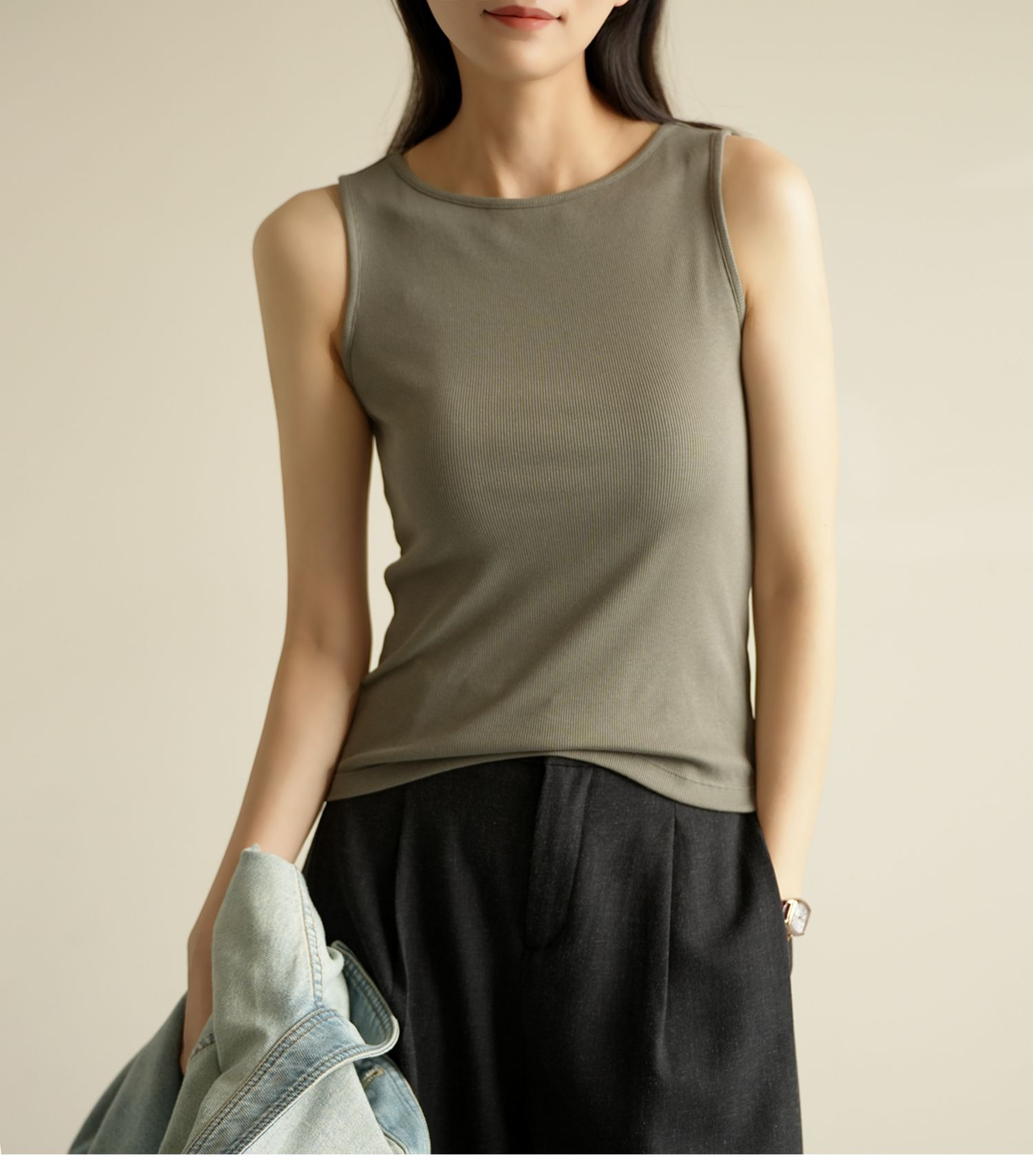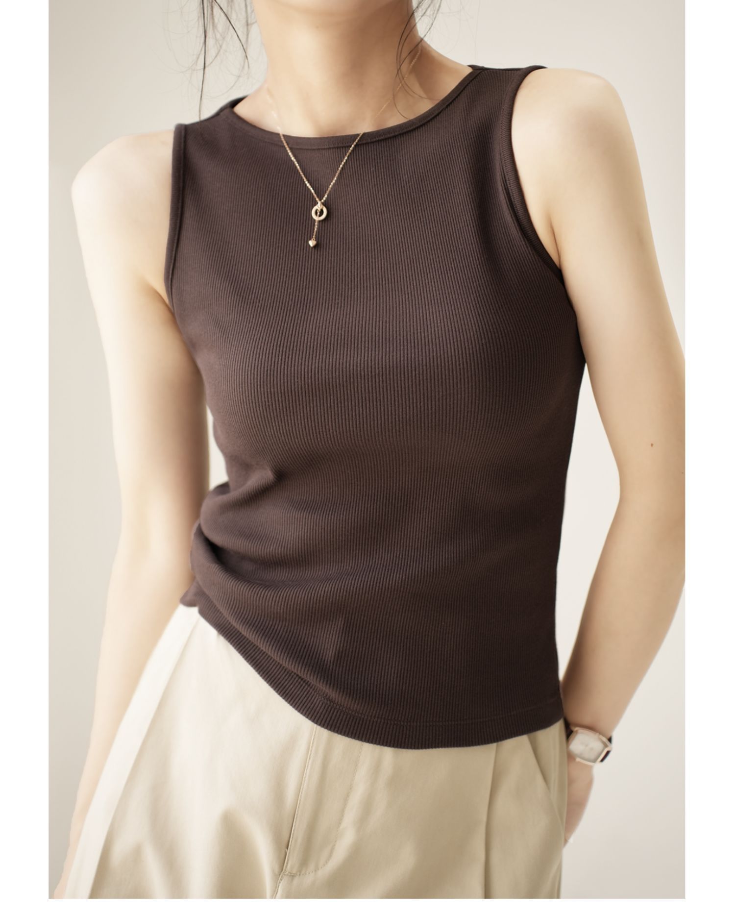 봄과 여름 I 모양의 퓨어 코튼 조끼 여성 한 캐릭터 칼라 교수형 넥 슬리밍 내실 민소매 베이스 셔츠 슬링 탑