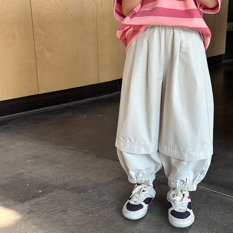 남학생과 여학생을위한 Emo Beibei 어린이 2025 여름 경량 스티칭 라벨 발목 바지 서양식 쿨 루즈 안티 모기 바지스토어 가기