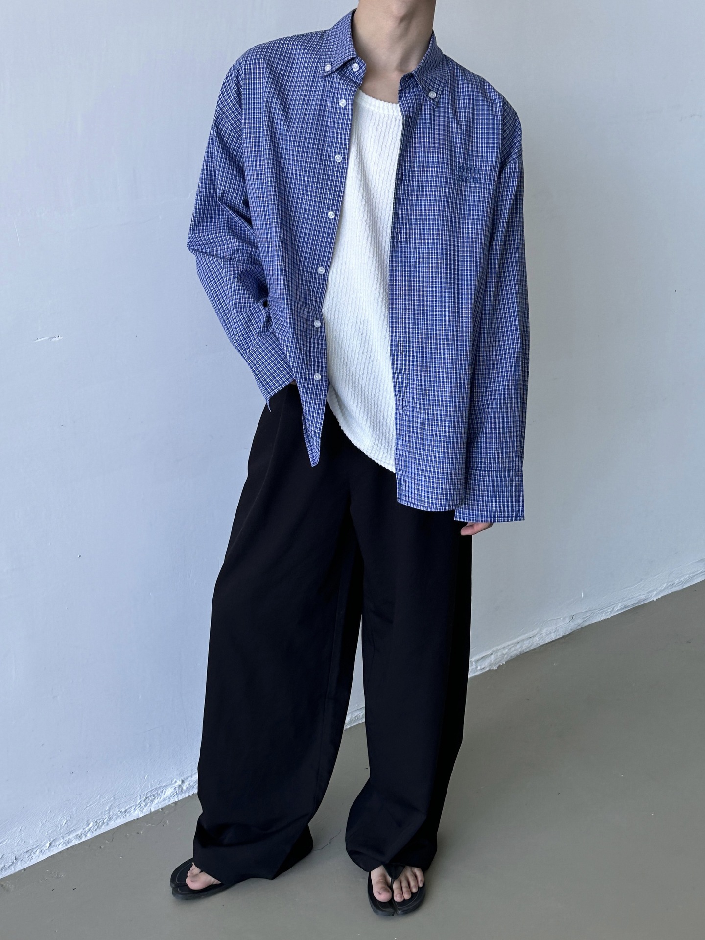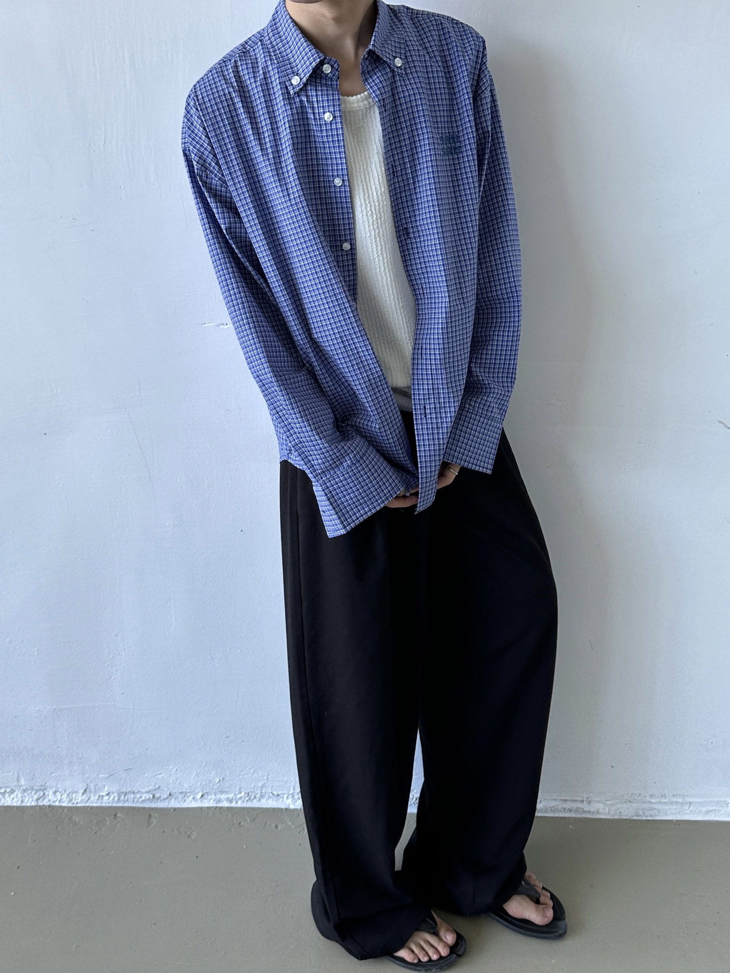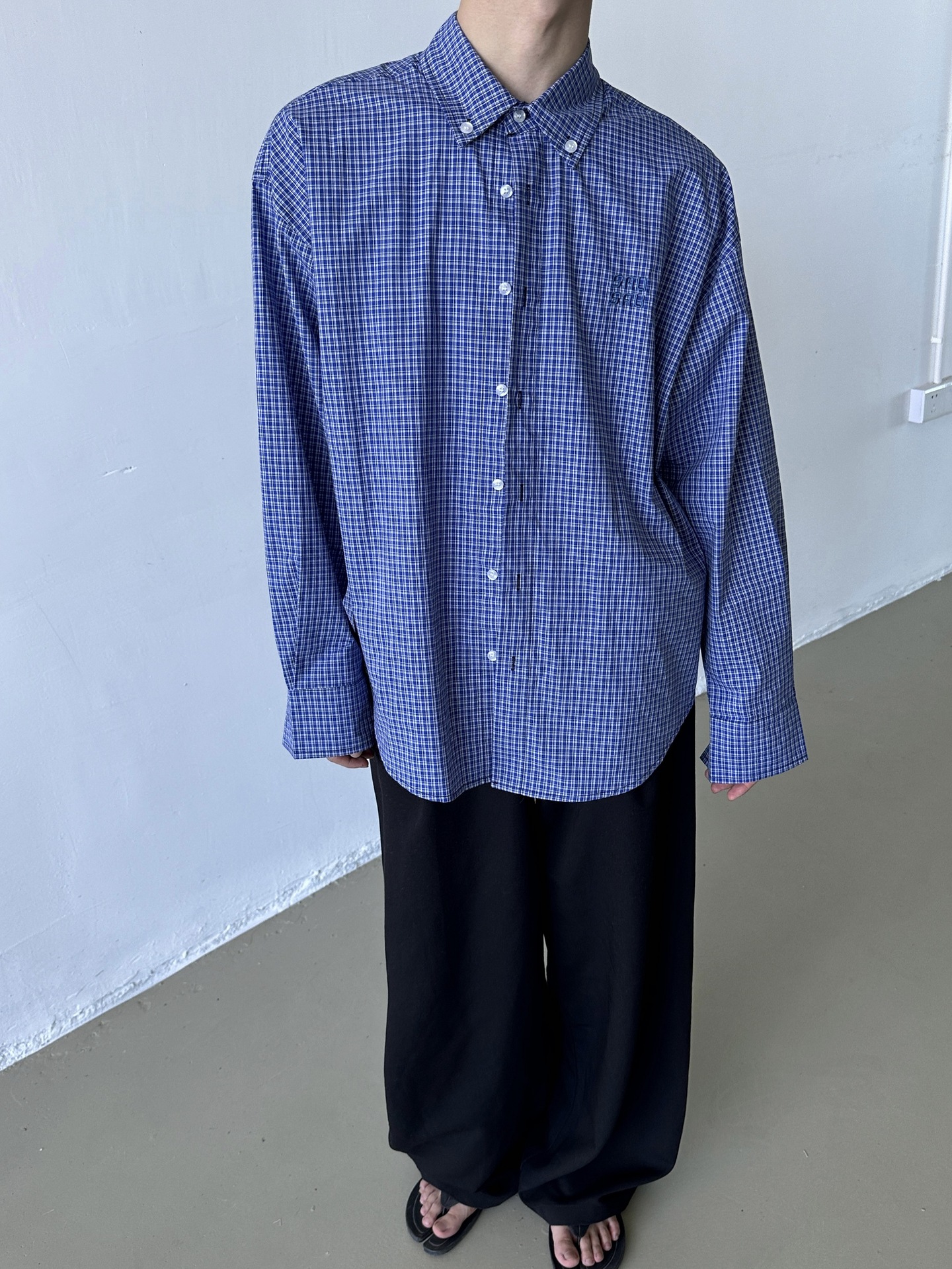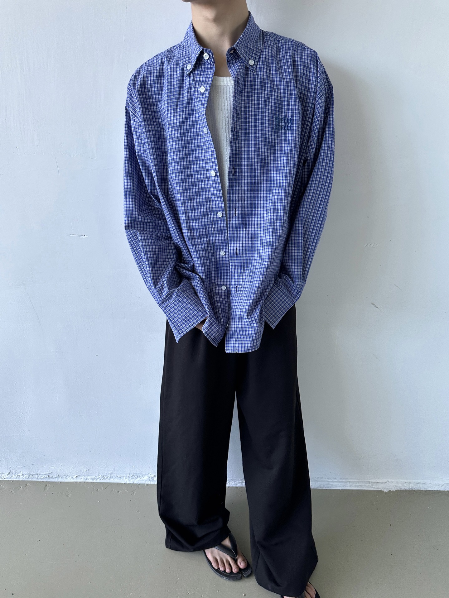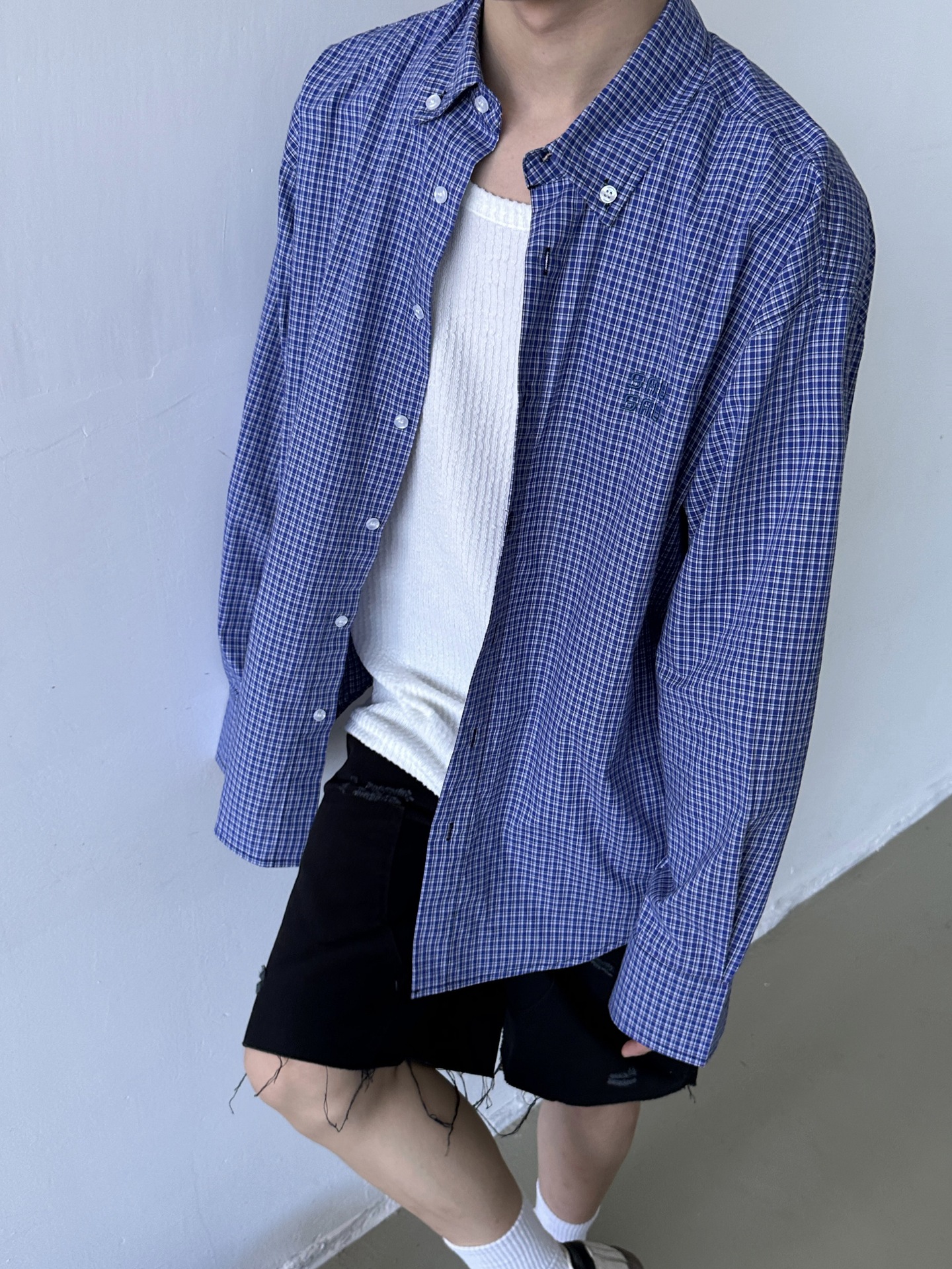 아메리칸 레트로 게으른 느슨한 블루 격자 무늬 긴팔 셔츠 남자 2024 년 새로운 올 매치 캐주얼 자수 셔츠 트렌디스토어 가기