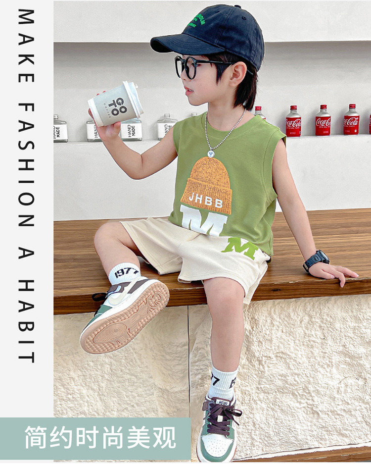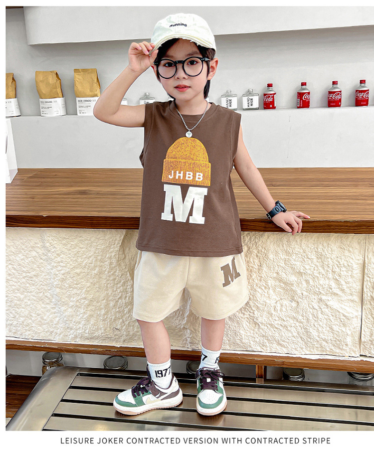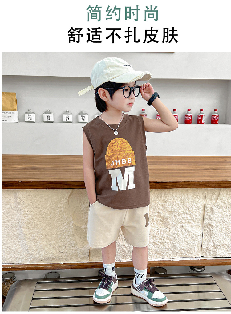소년 여름 얇은 조끼 세트 2025 여름 의류 어린이 멋진 민소매 탑 반바지 투피스 세트스토어 가기