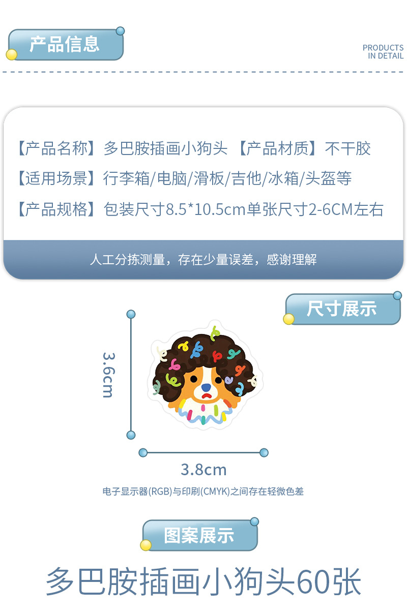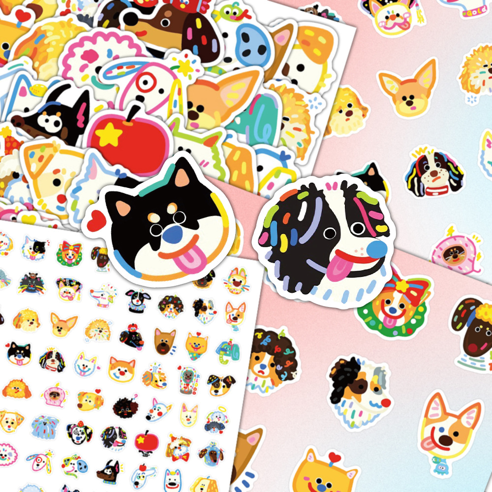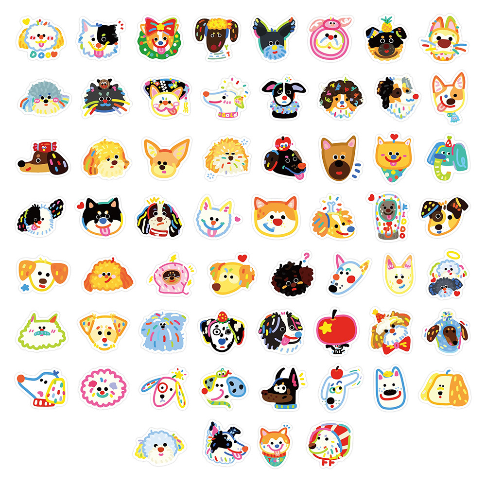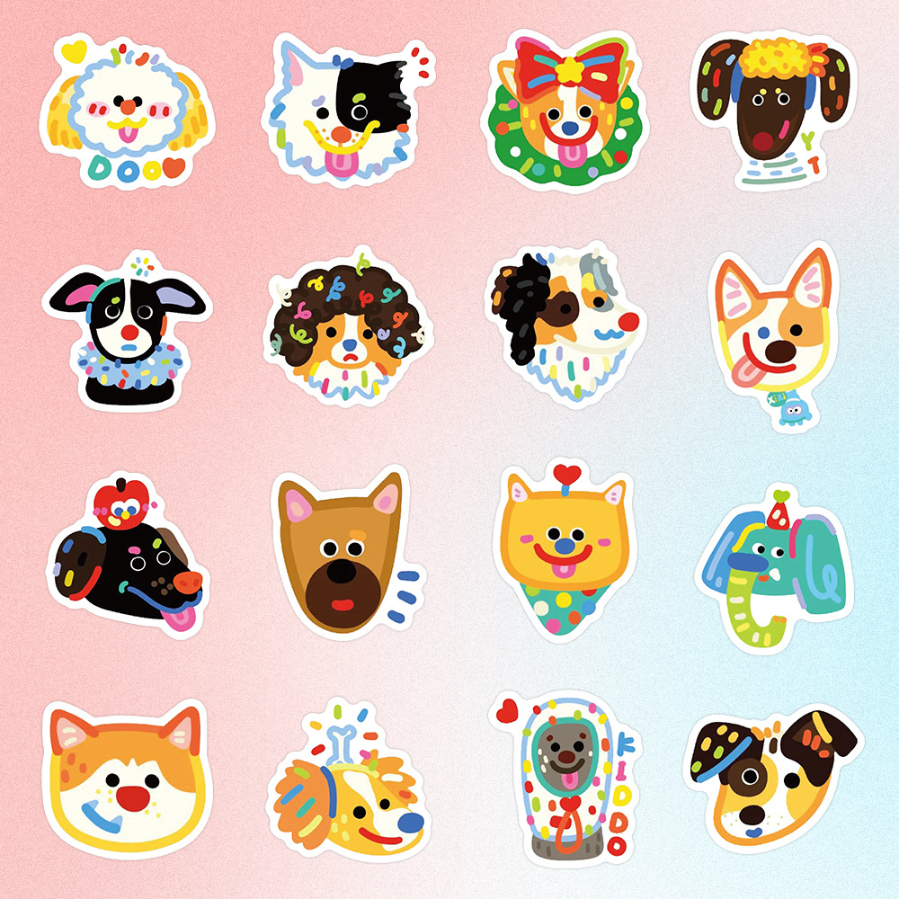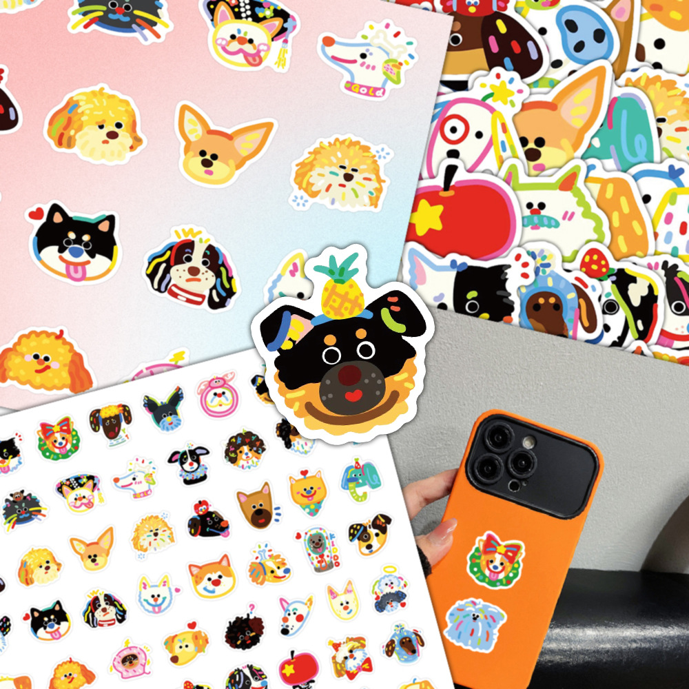 60 스티커 도파민 그림 개 머리 스티커 귀여운 창조적 인 장식 수하물 노트북 문구 손 계정 스티커스토어 가기