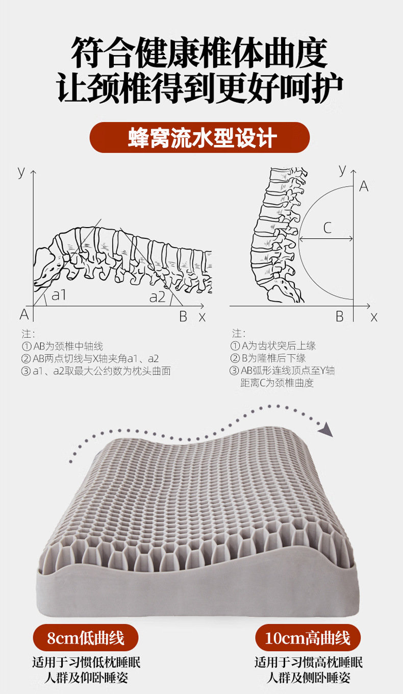 Johaz 도매 Graphene 압력 릴리프 베개 목 베개 TPE Pectin 베개 코어 세척 가능한 제로 센스 압력 없음