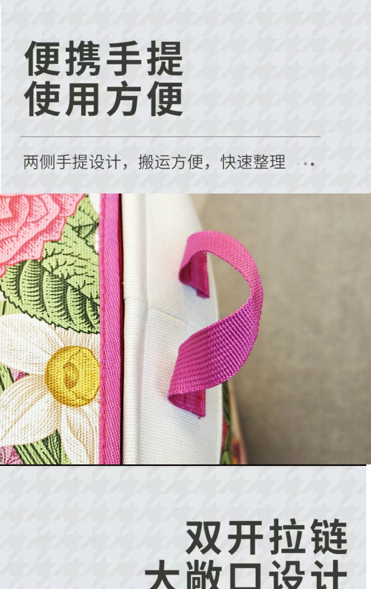 재고 120 더블 지퍼 강철 반지 모란 꽃 뚜껑 방진 적합 바구니 가방 계절 이불 옷 보관 상자