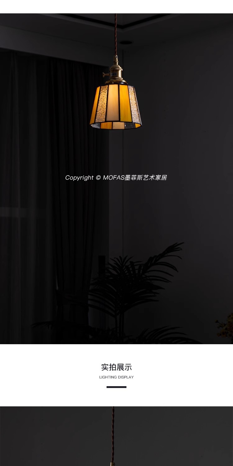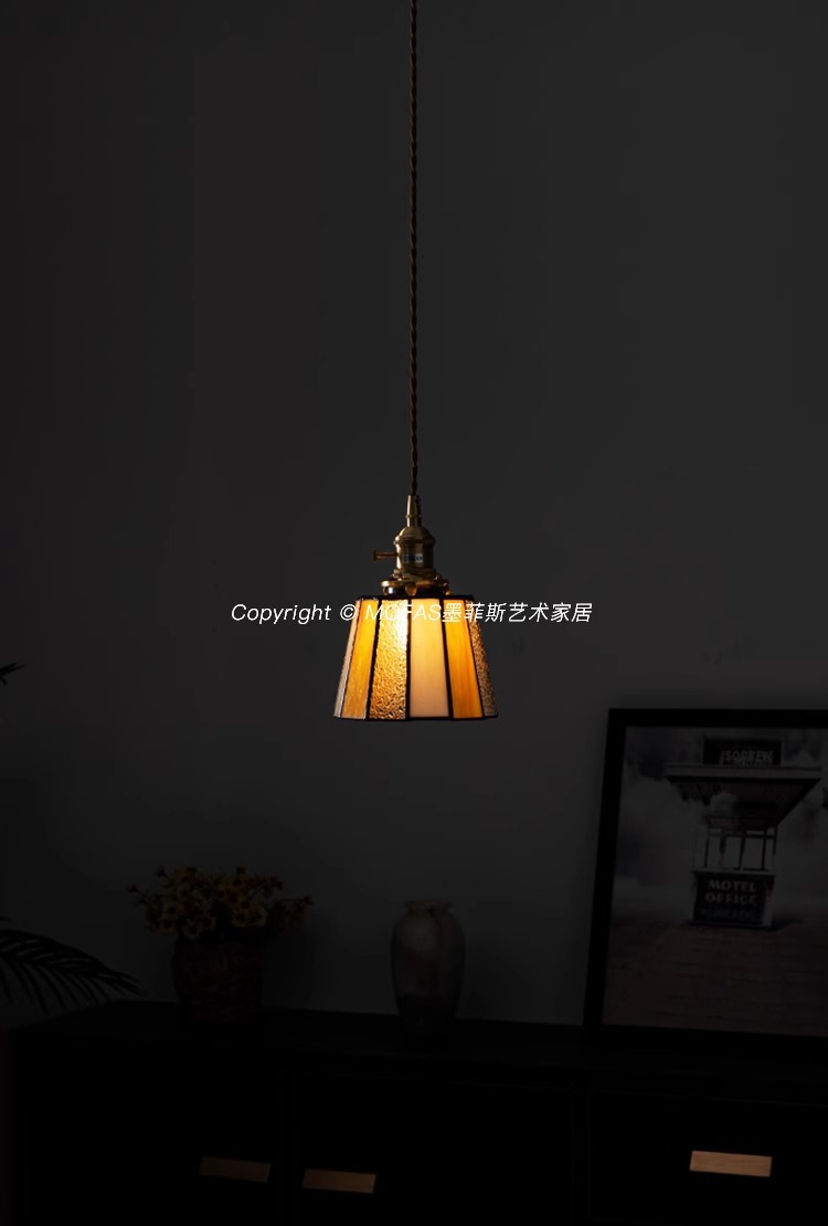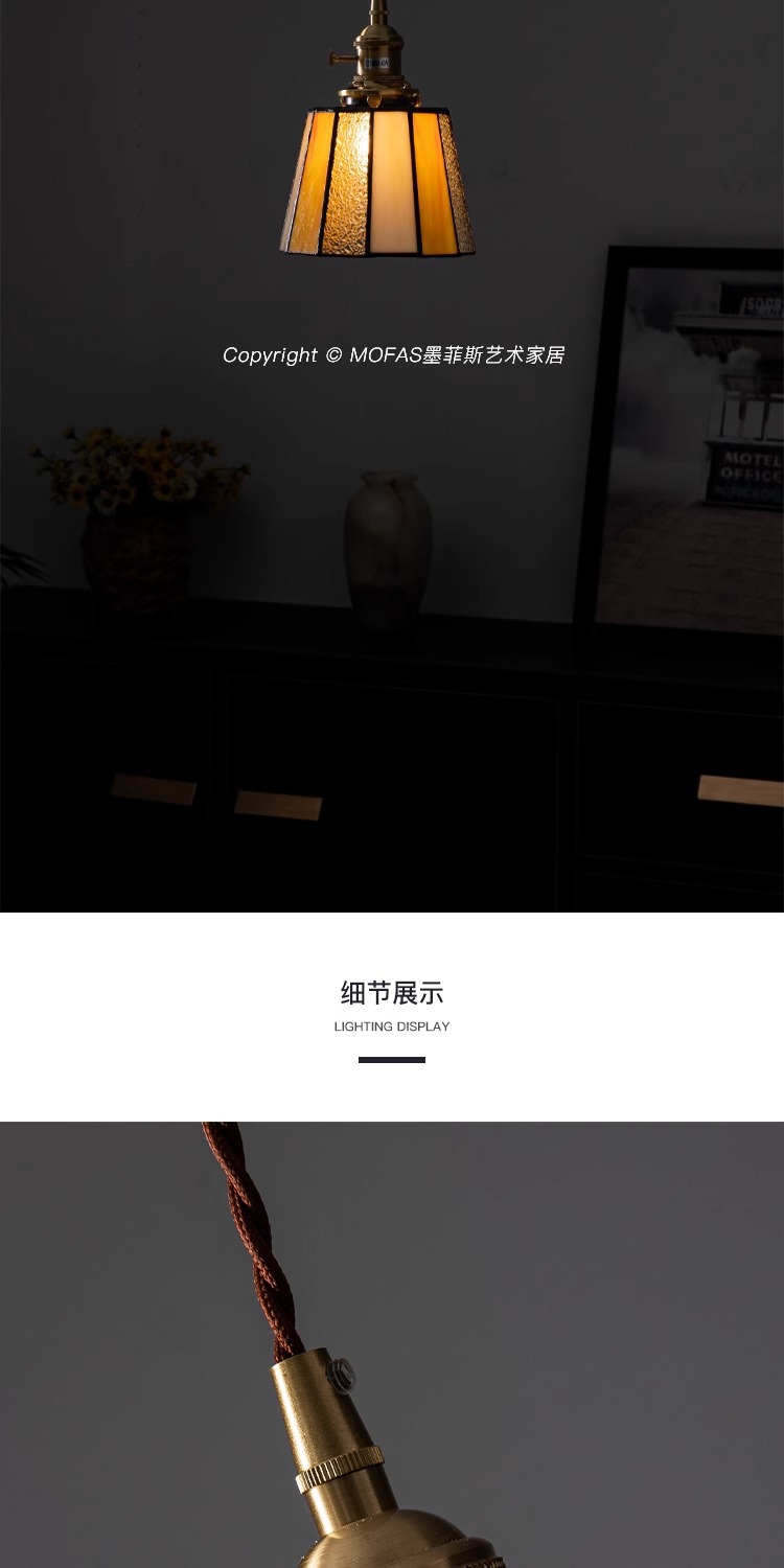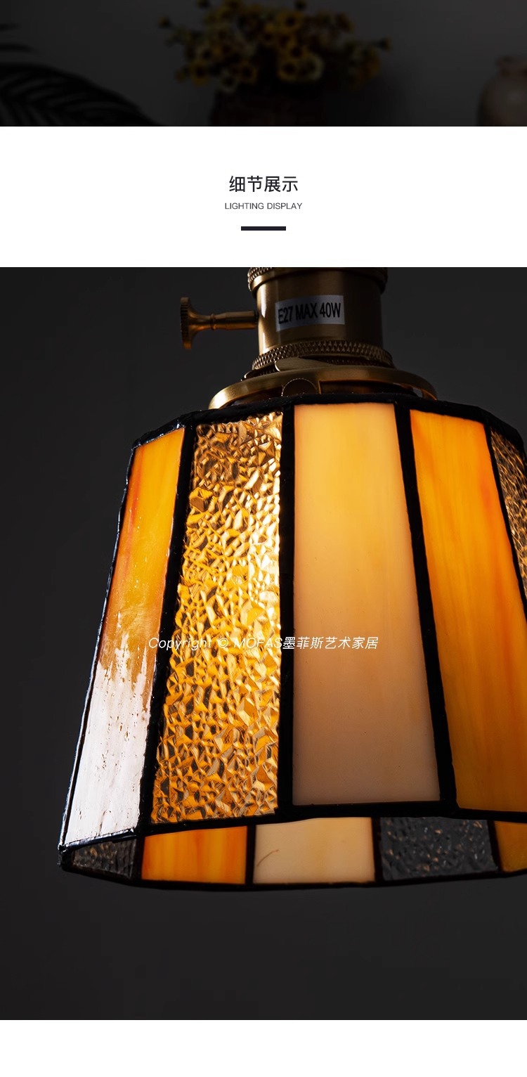 풀 스펙트럼 레트로 목회 황동 작은 샹들리에 아메리칸 스타일 침대 옆 레스토랑 카페 스테인드 글라스 샹들리에스토어 가기