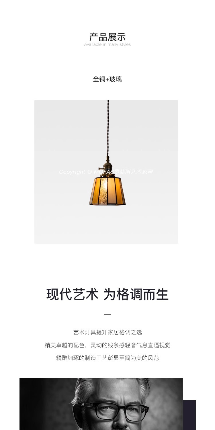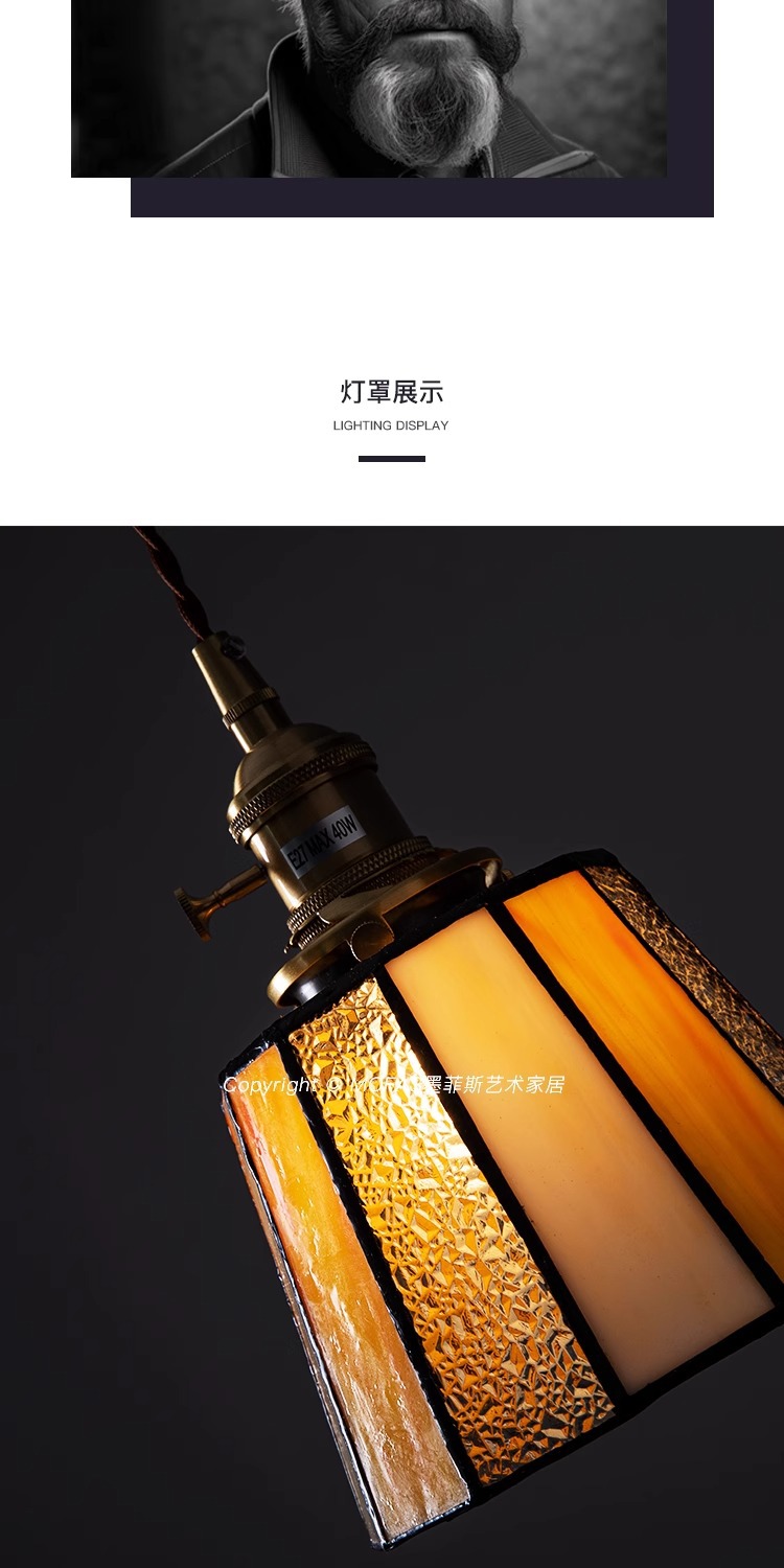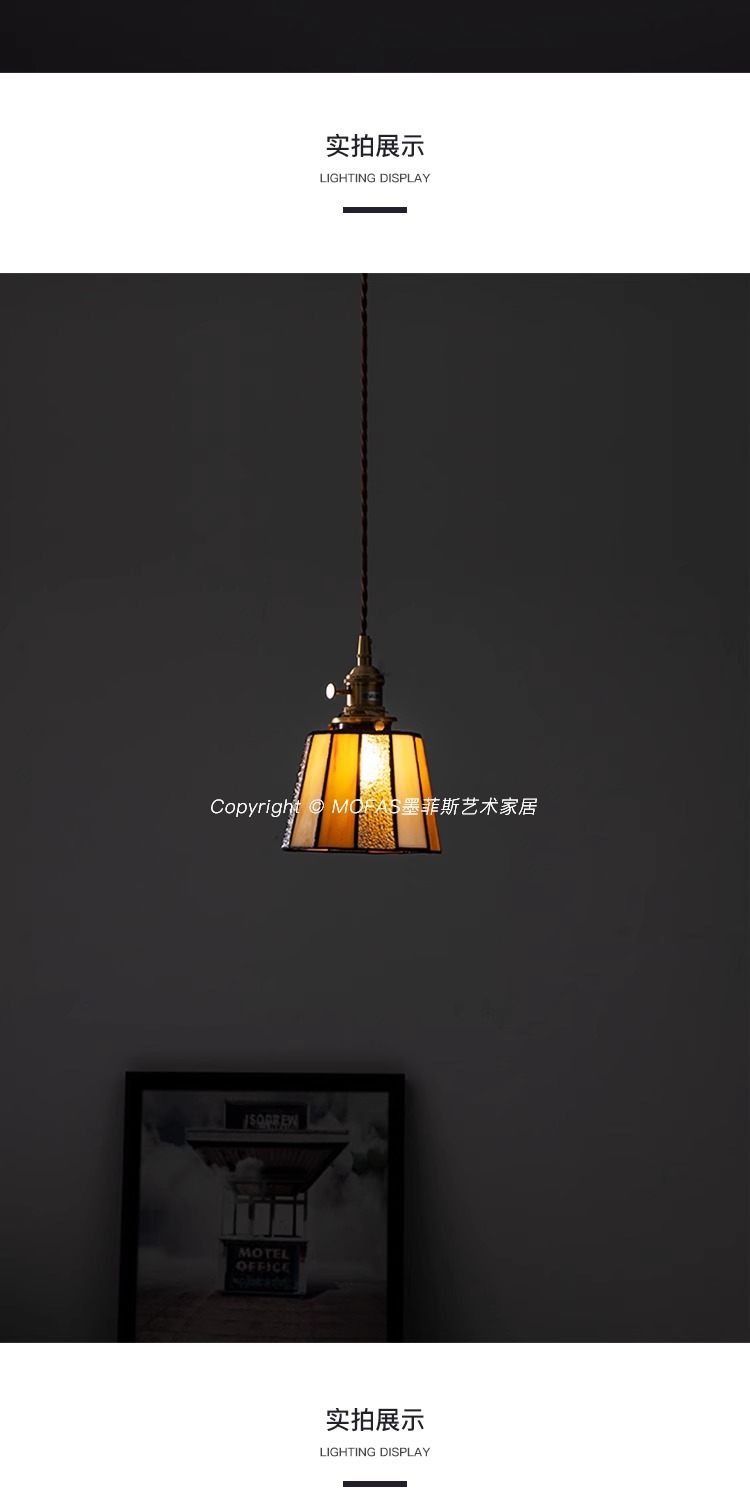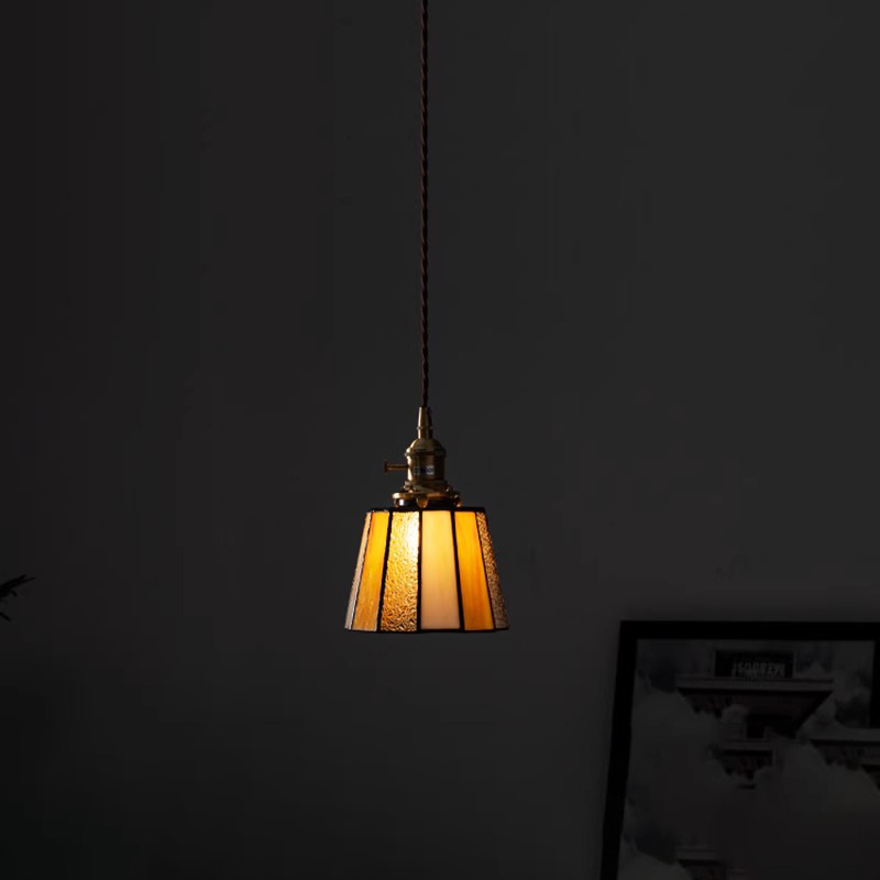 풀 스펙트럼 레트로 목회 황동 작은 샹들리에 아메리칸 스타일 침대 옆 레스토랑 카페 스테인드 글라스 샹들리에스토어 가기
