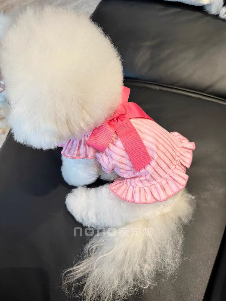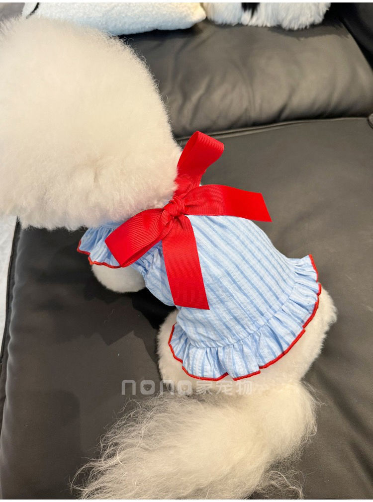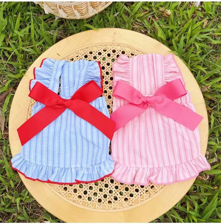 강아지 옷 여름 얇은 줄무늬 큰 활 비행 소매 슬립 스커트 애완 동물 비터 곰 테디 고양이 옷