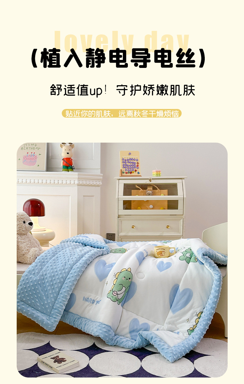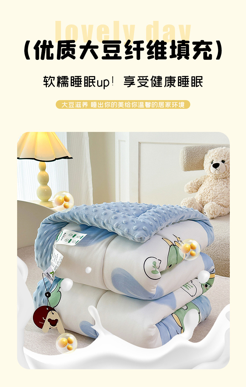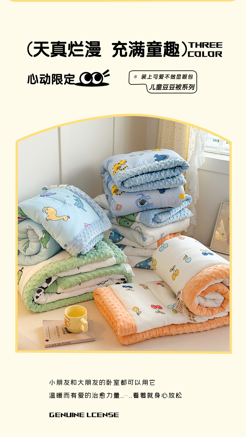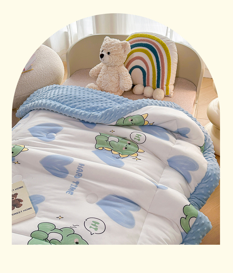 2025 새로운 어린이 콩 이불 봄과 가을 콩 벨벳 이불 코어 겨울 이불 두꺼운 이불 코어 만화 니트 면 이불