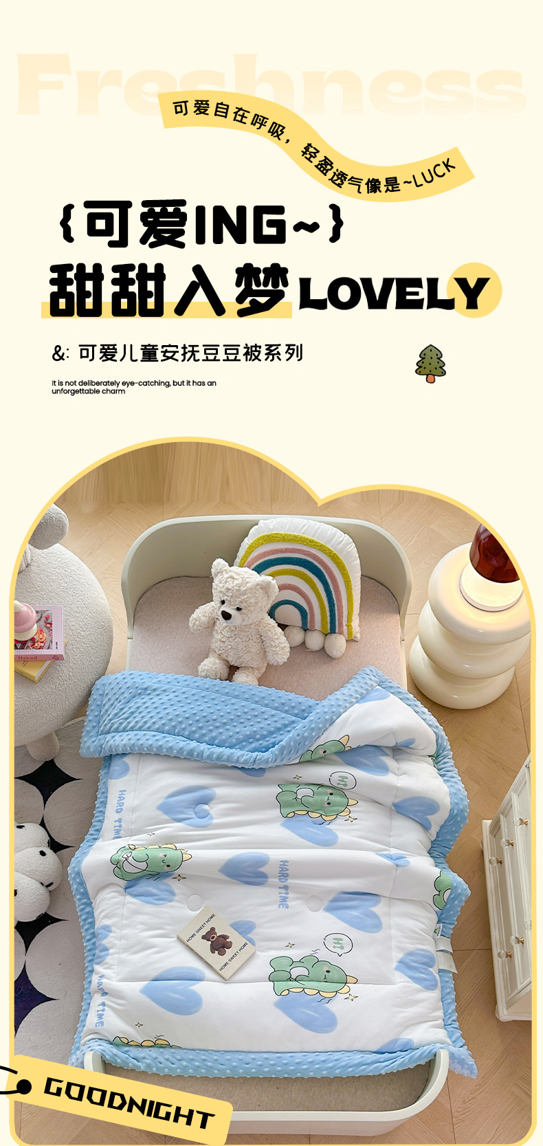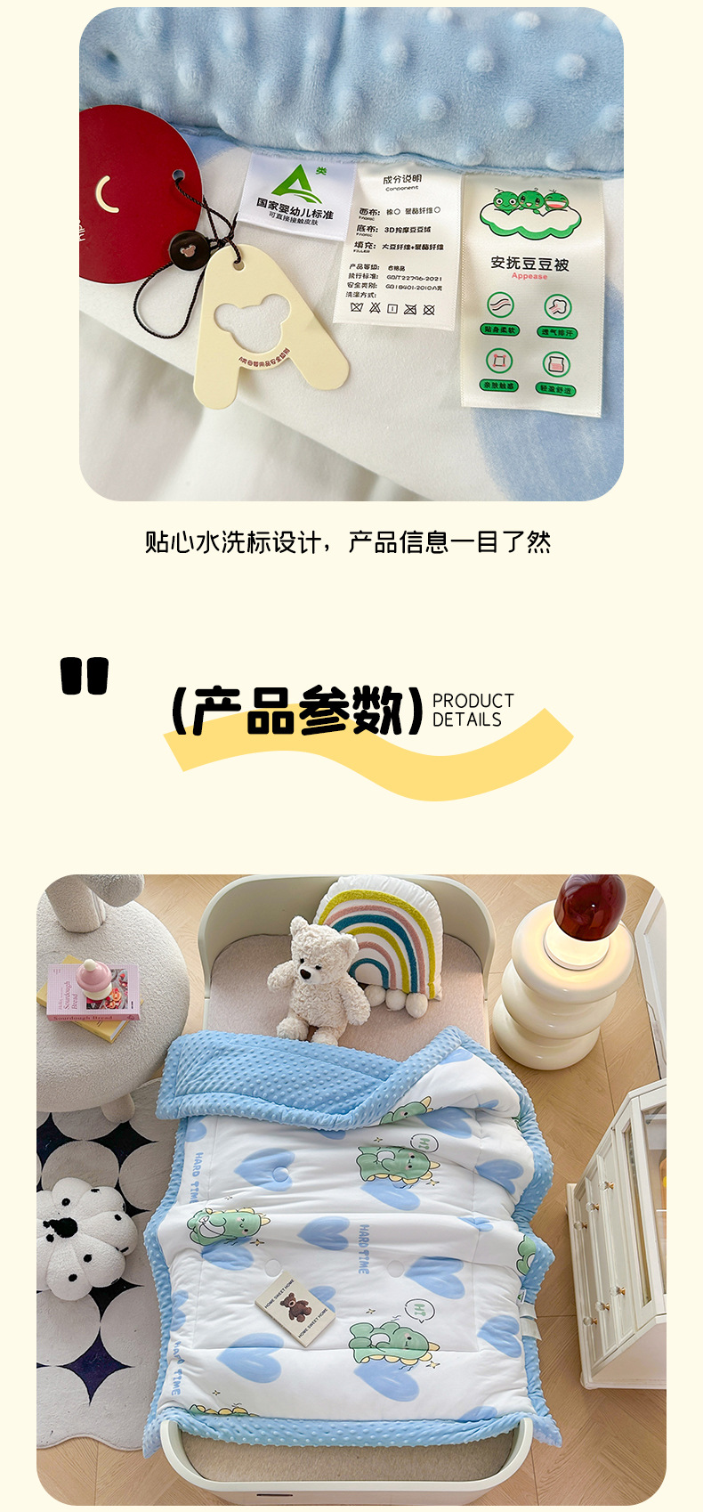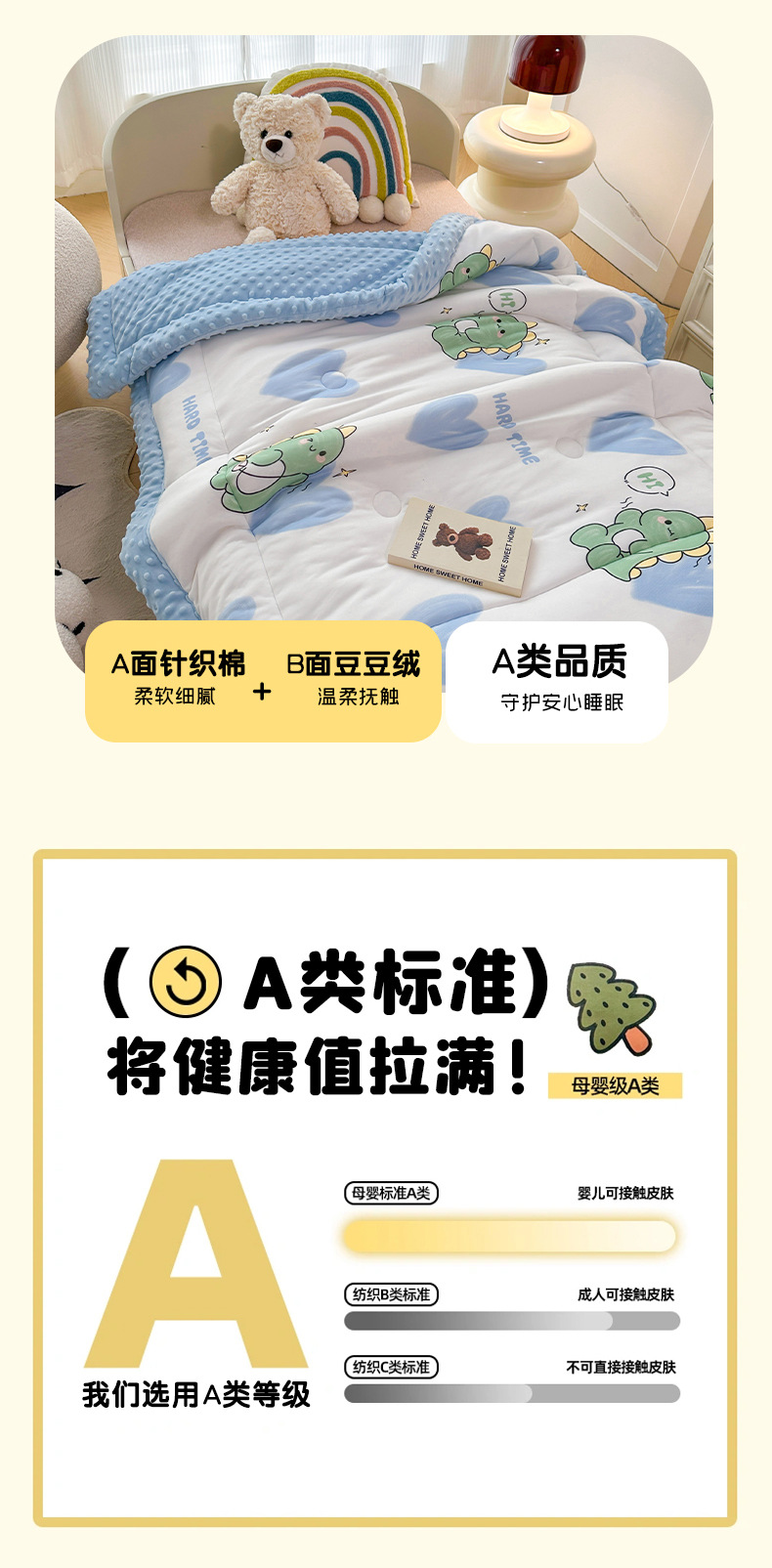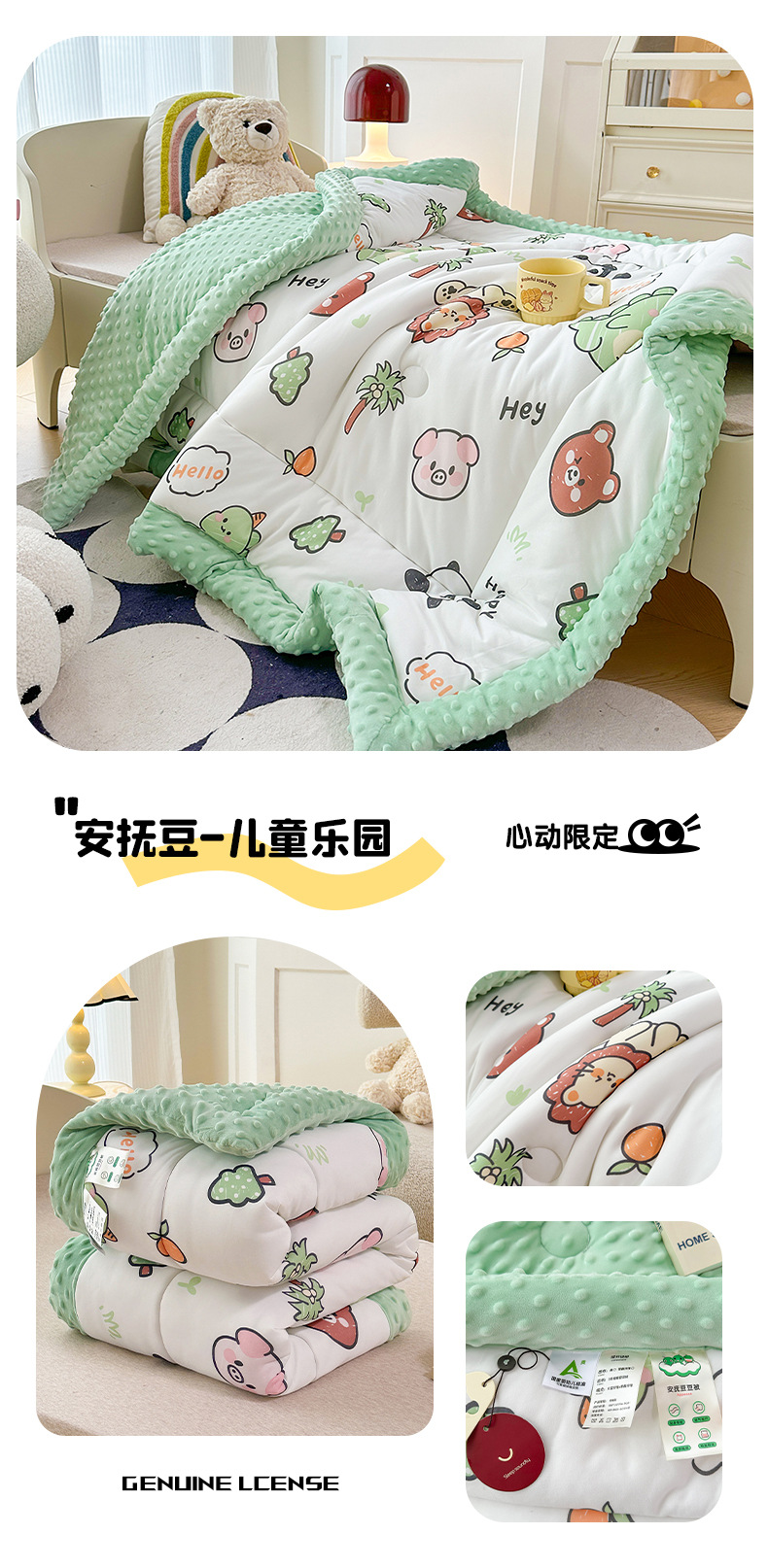 2025 새로운 어린이 콩 이불 봄과 가을 콩 벨벳 이불 코어 겨울 이불 두꺼운 이불 코어 만화 니트 면 이불