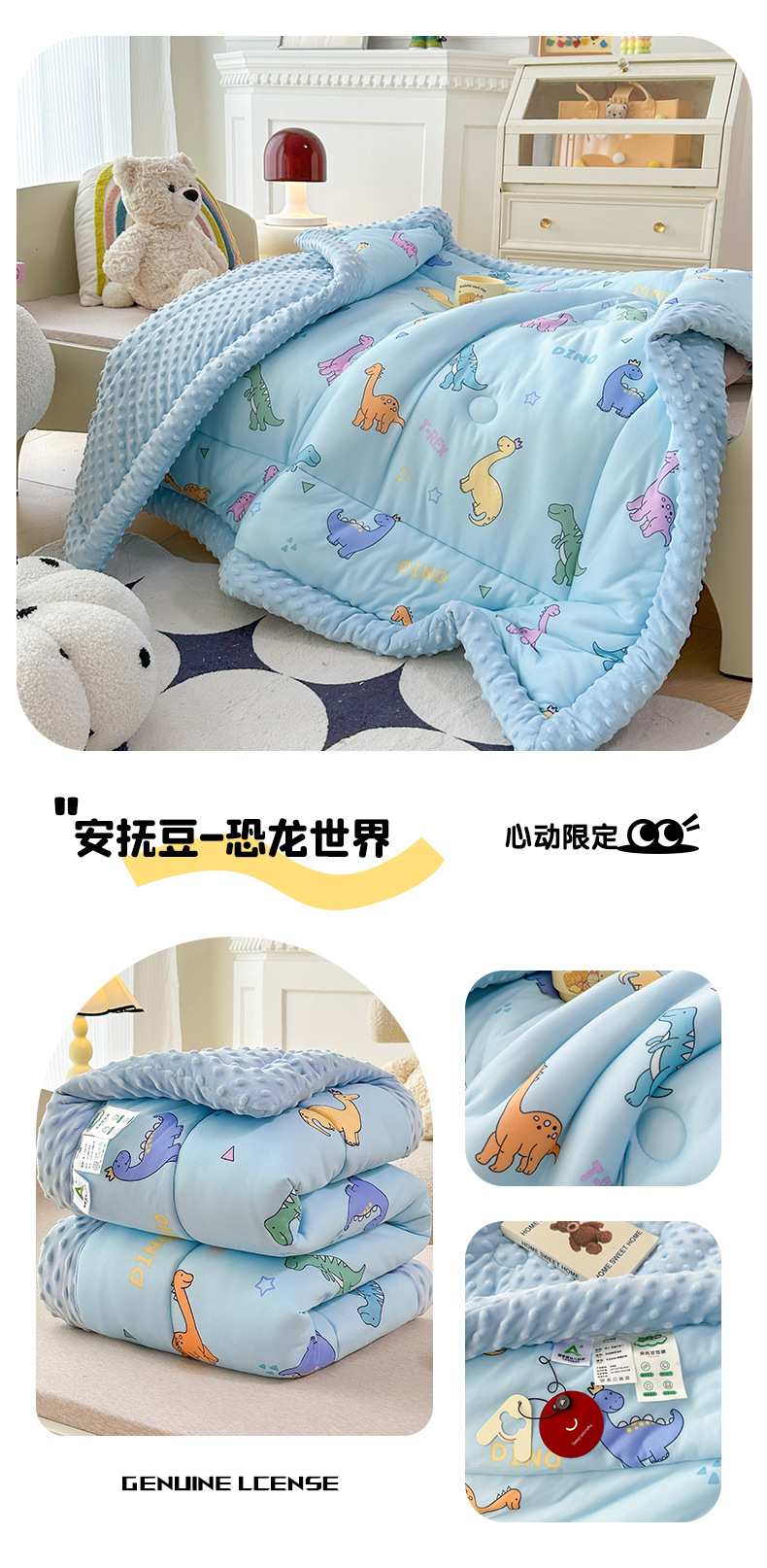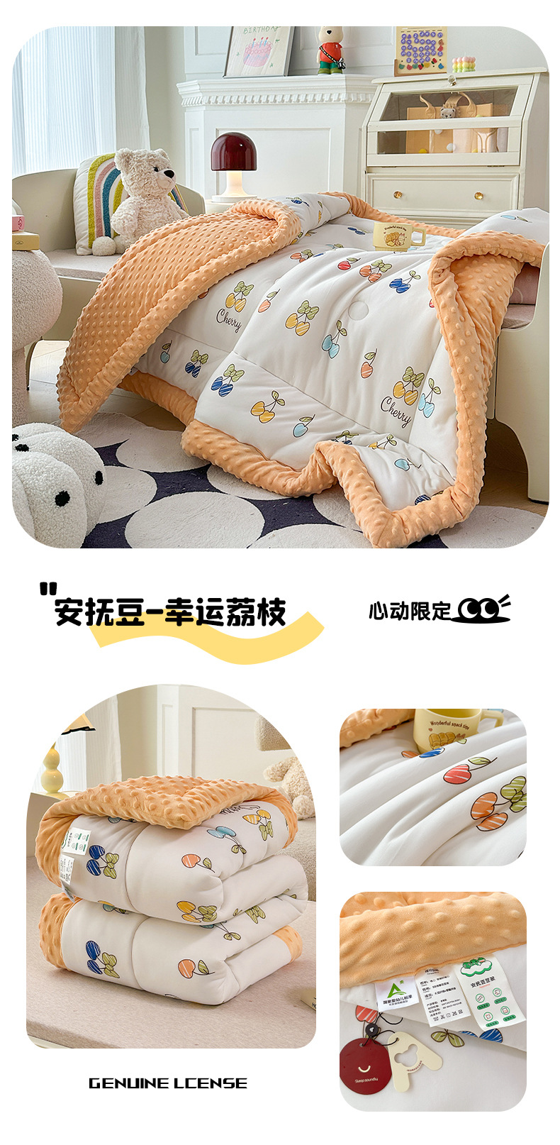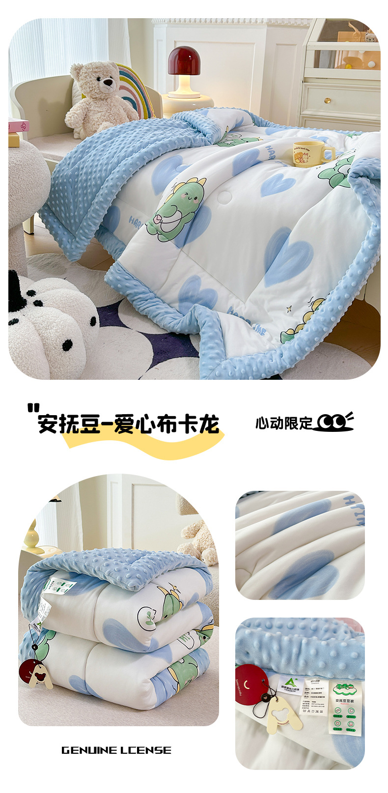 2025 새로운 어린이 콩 이불 봄과 가을 콩 벨벳 이불 코어 겨울 이불 두꺼운 이불 코어 만화 니트 면 이불스토어 가기