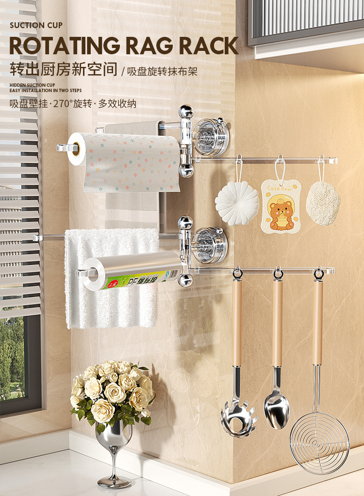 흡입 컵 헝겊 배수 랙 주방 다기능 스폰지 저장 랙 가정용 벽 매달려 회전 가능한 접시 세척 천 보관 랙