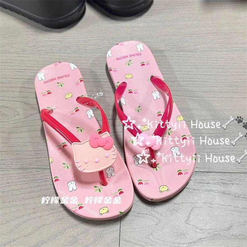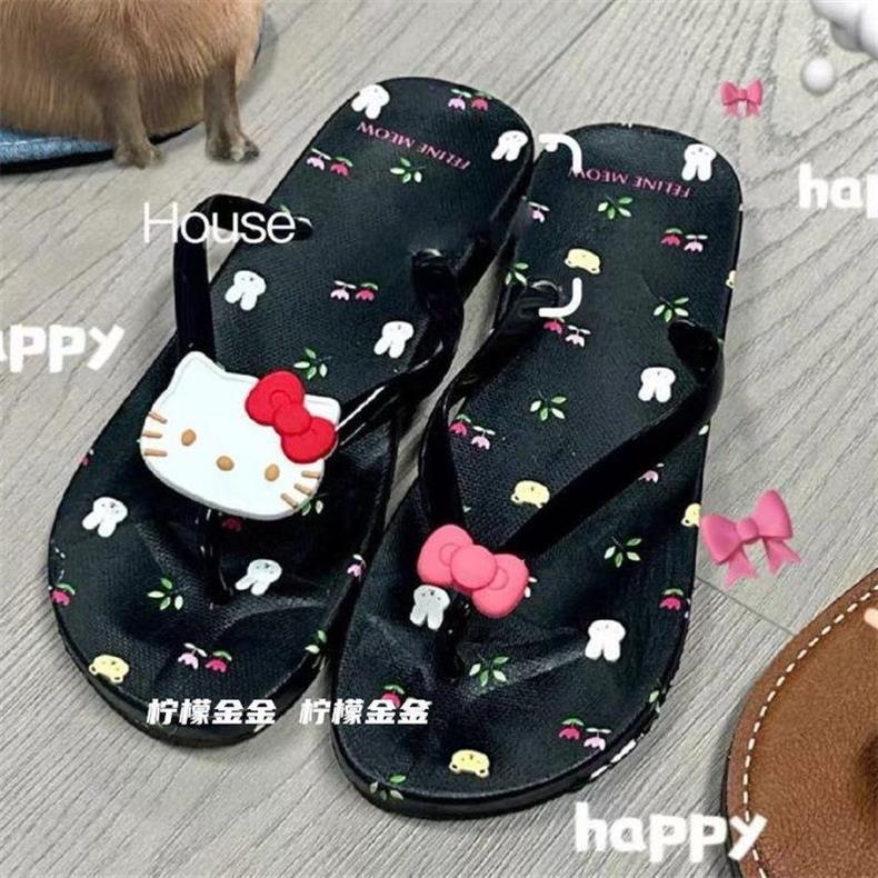 슈퍼 귀여운 핑크 인터넷 연예인 새로운 KT 고양이 슬리퍼 여름 플립 플롭 여성 플립 플롭 플랫 비치 신발스토어 가기