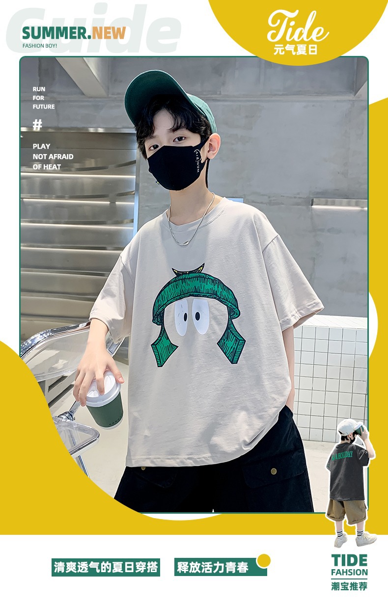 아동복 남아 반팔 티셔츠 여름옷 2026 신상 아동 여름 스타일 중대형 아동 상의 순면 남아 여름 트렌디 티셔츠