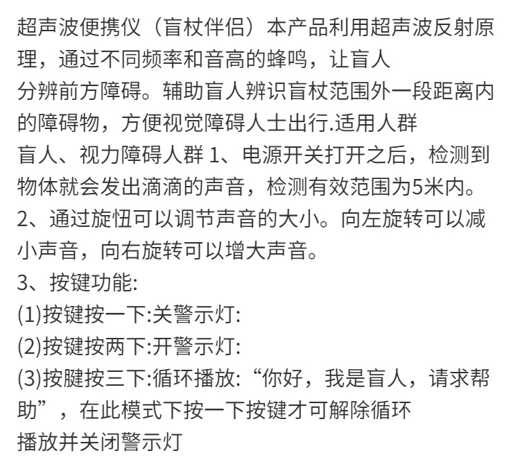 • 초음파 전자제품 + 7단 블라인드 지팡이