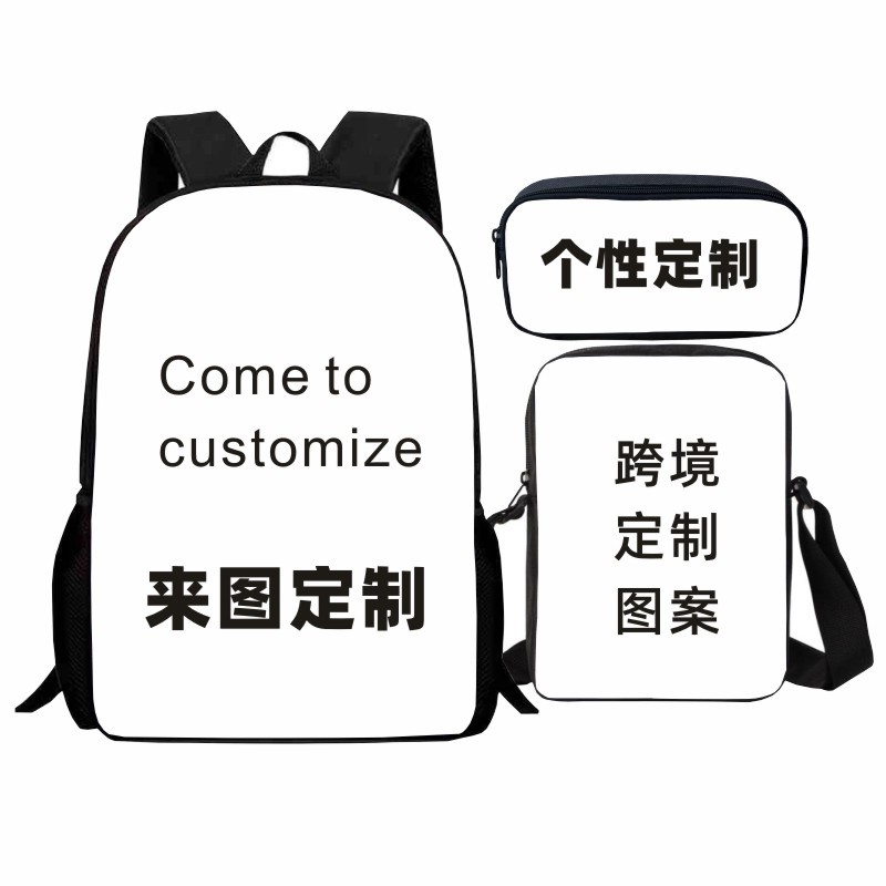 프린트 학생 어린이 책가방 캐주얼 백팩 크로스백 필통 3종 세트 캐주얼 휴대용 백팩 Din 제작