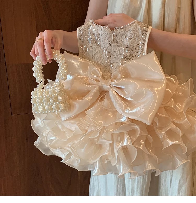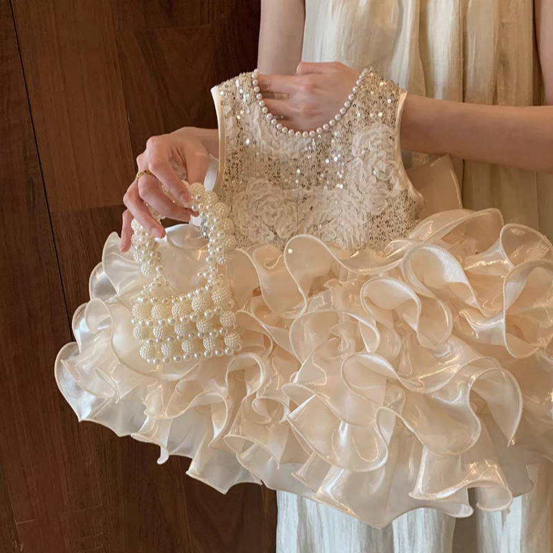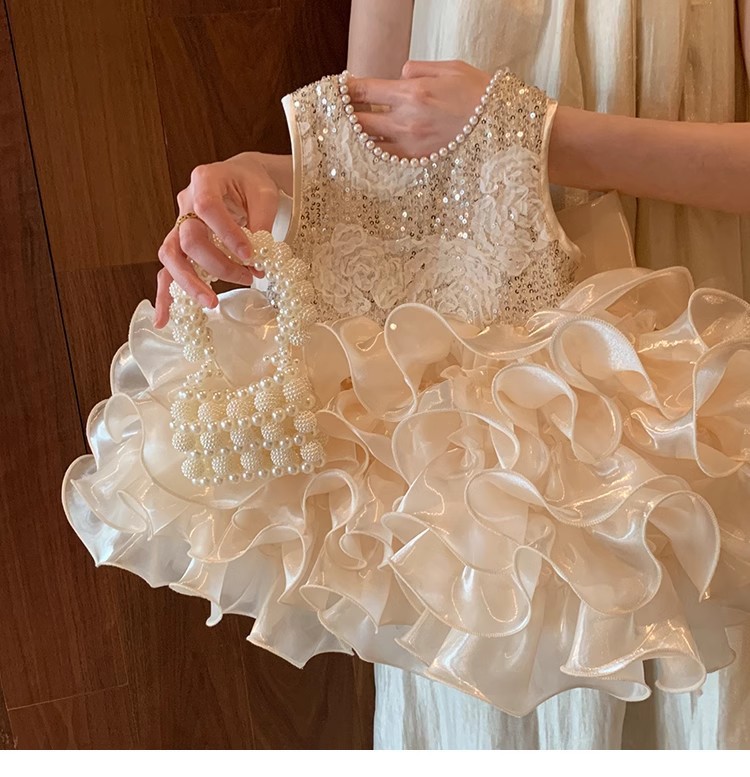 인터넷 축하 소녀 공주 원피스 2025 새로운 여름 공연 원피스 어린이 서양식 원피스 아기 소녀의 생일