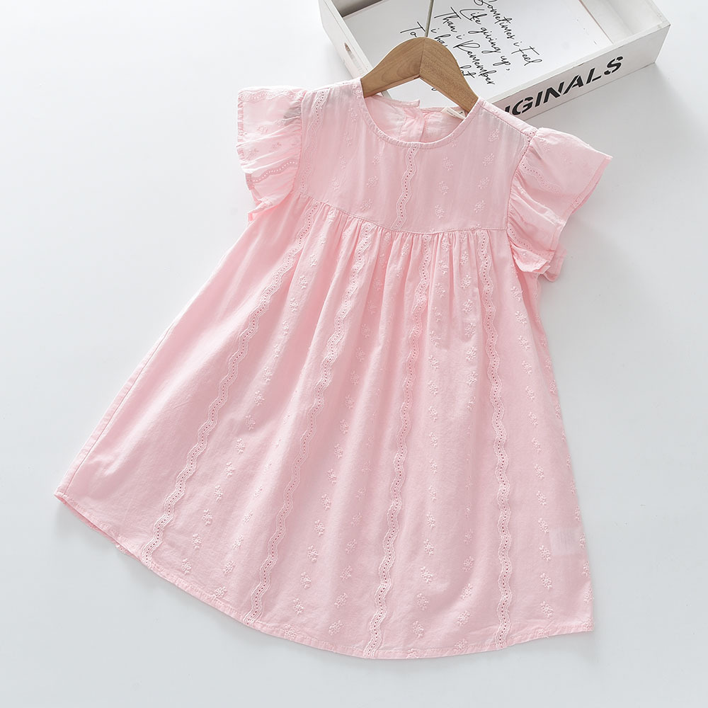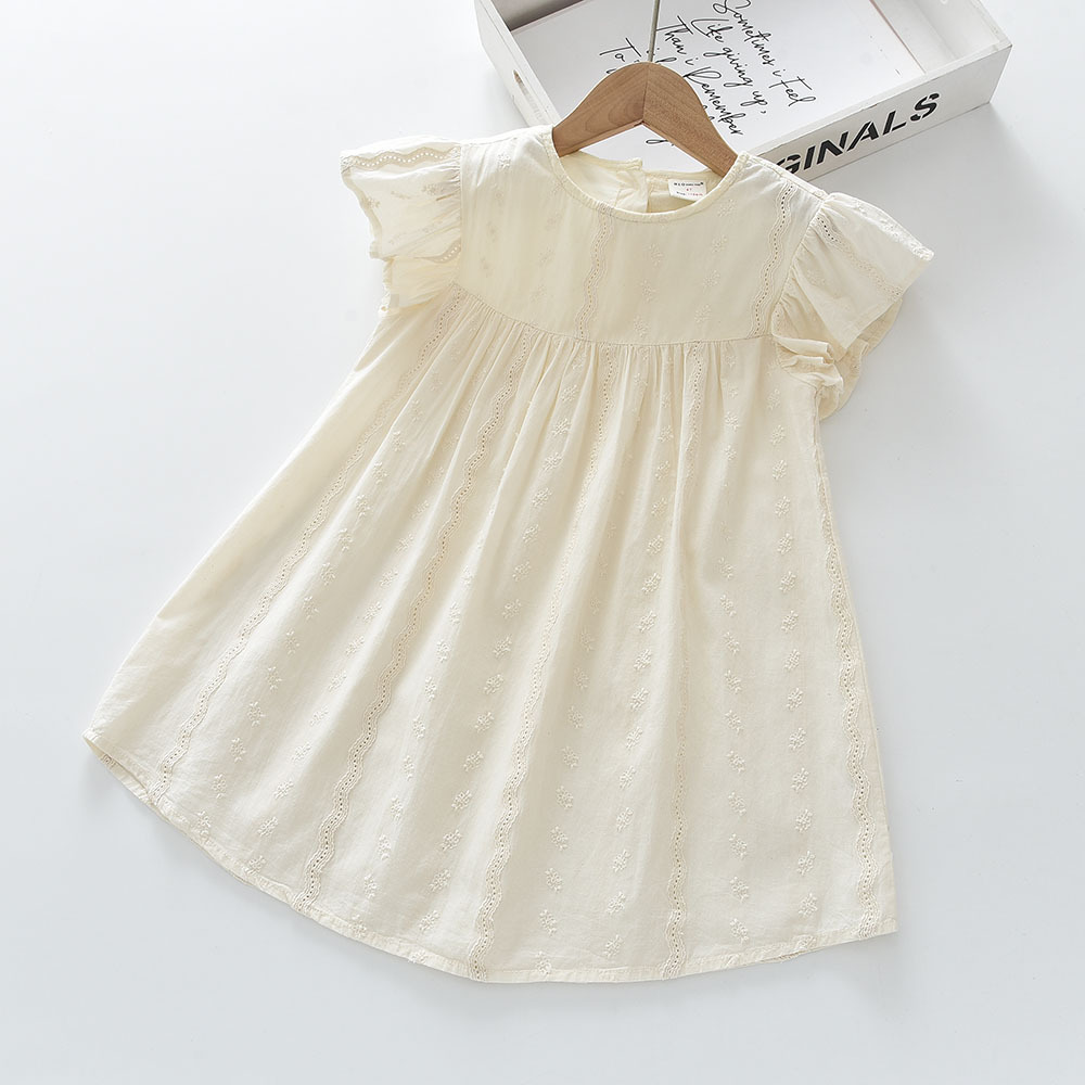 2025夏季新款 花朵绣花圆领短袖女童夏装背心裙连衣裙公主裙