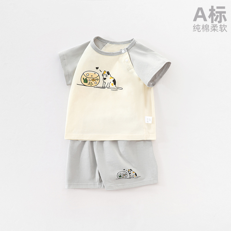 아기 여름 세트 소년 여름 착용 얇은 소녀의 반팔 순면 아기 옷 어린 아이들의 반바지 슈퍼 귀여운스토어 가기