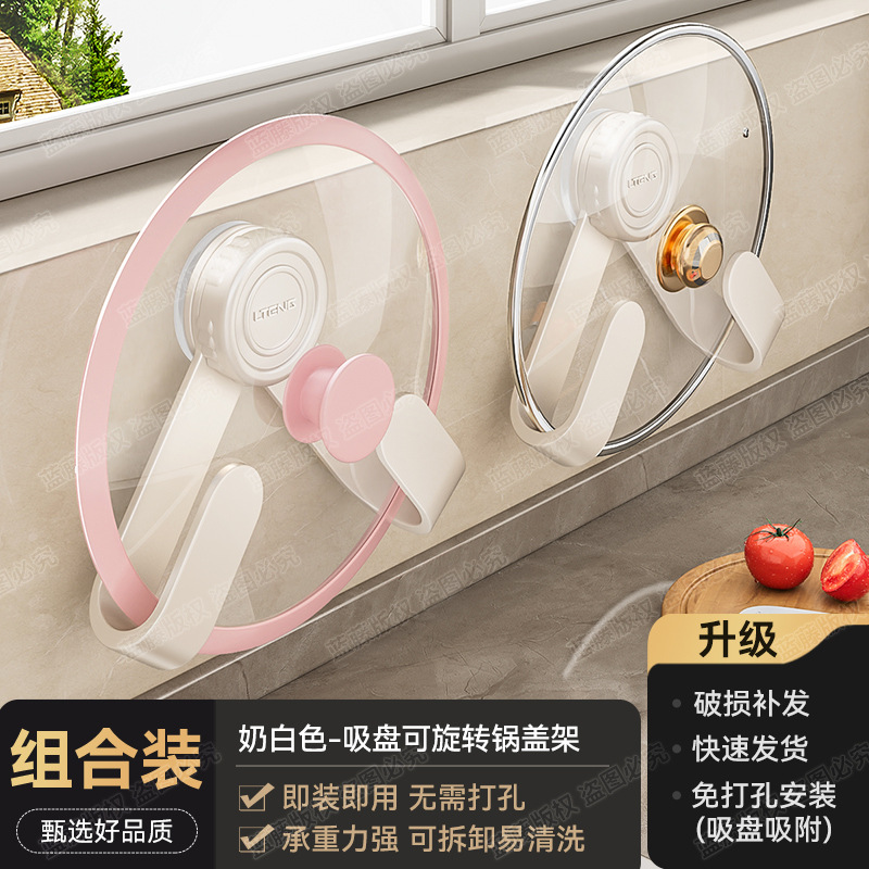 • 유백색 흡착컵 회전식 냄비 뚜껑 홀더 2팩
