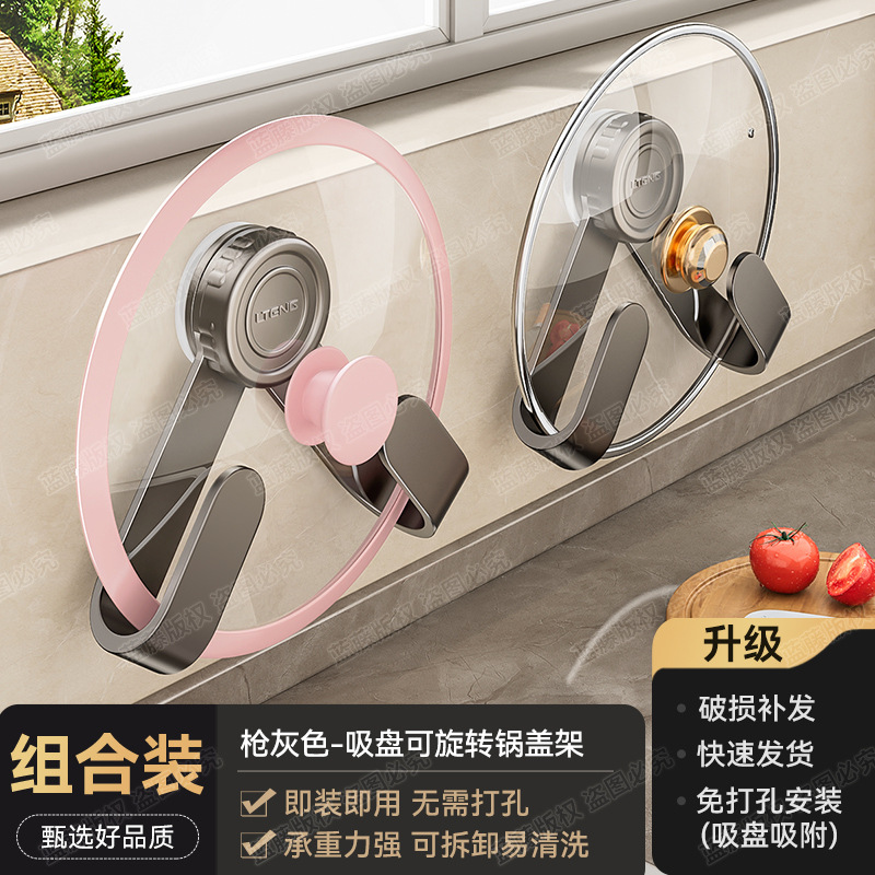 • 건 그레이 - 흡입 컵 회전식 냄비 뚜껑 홀더 2팩