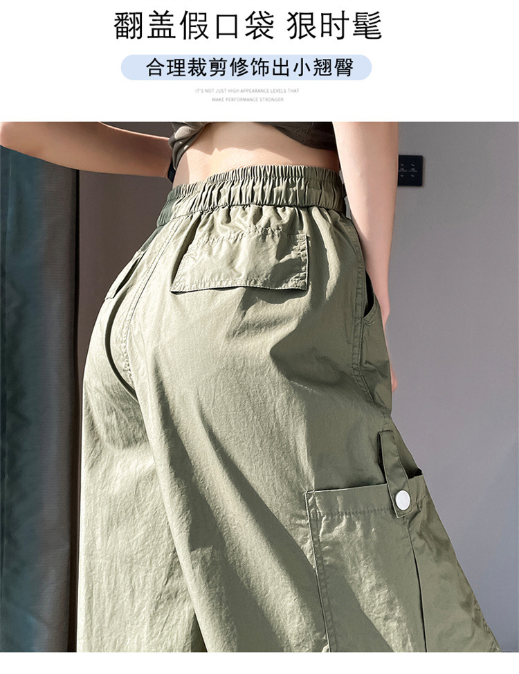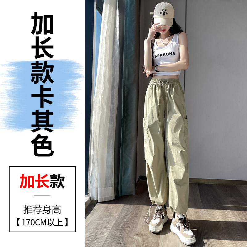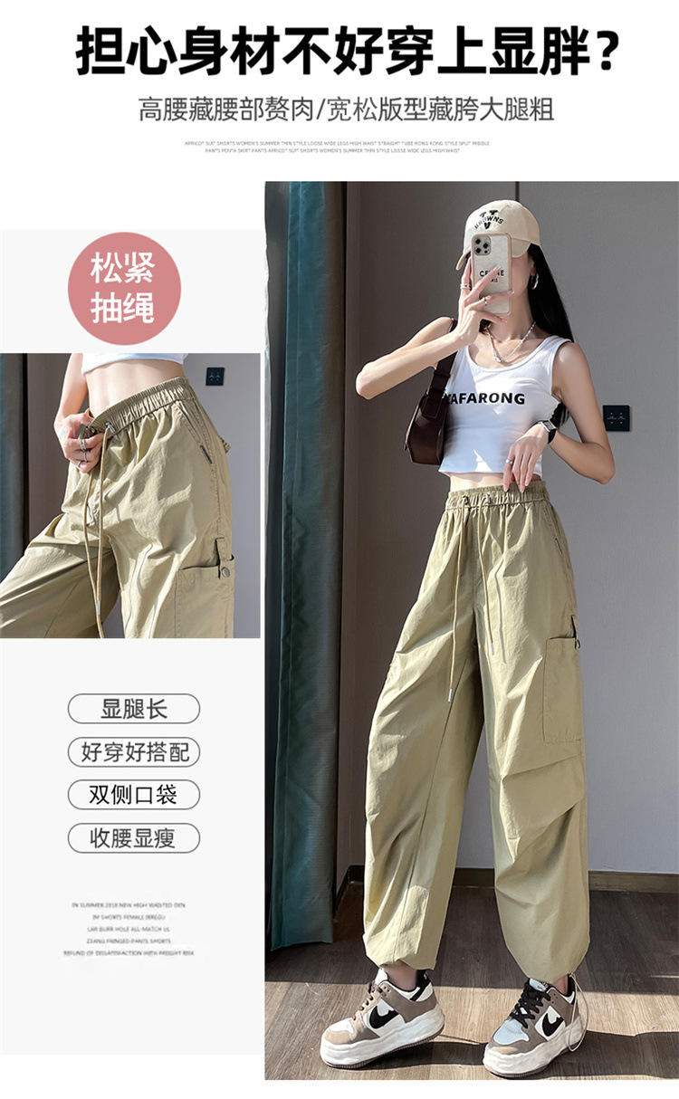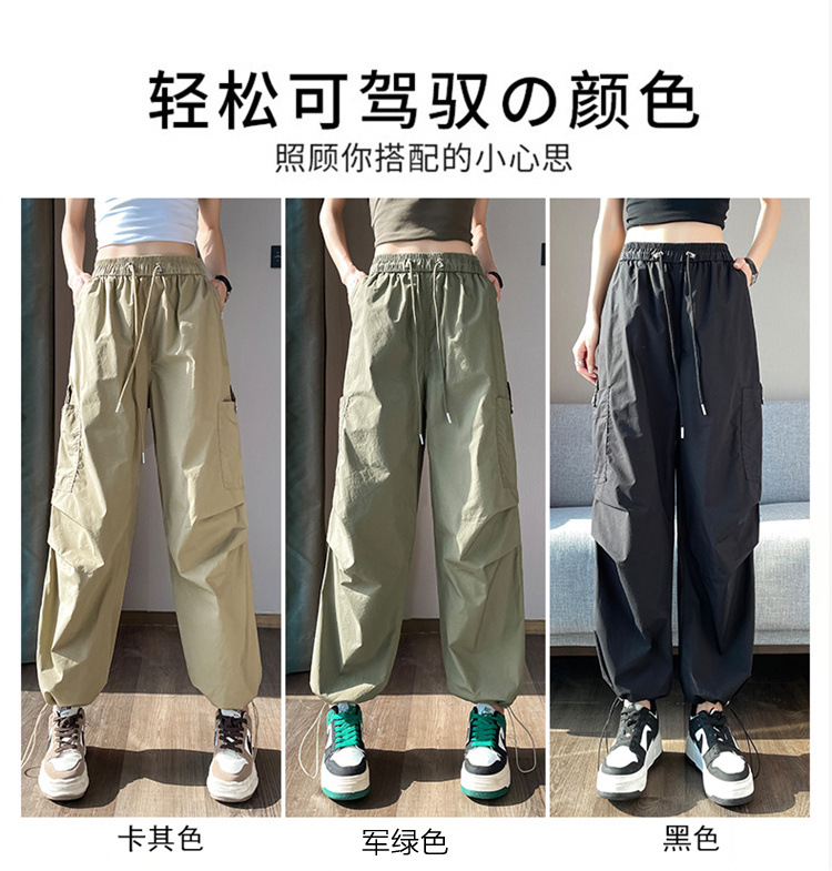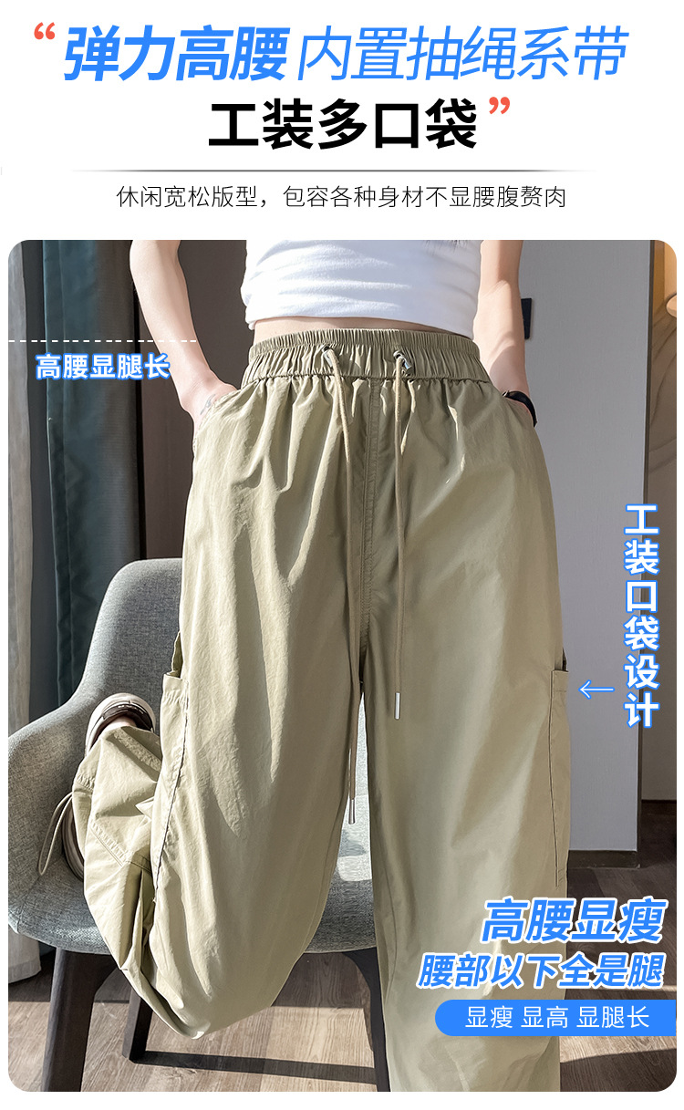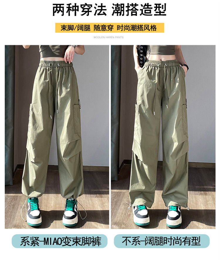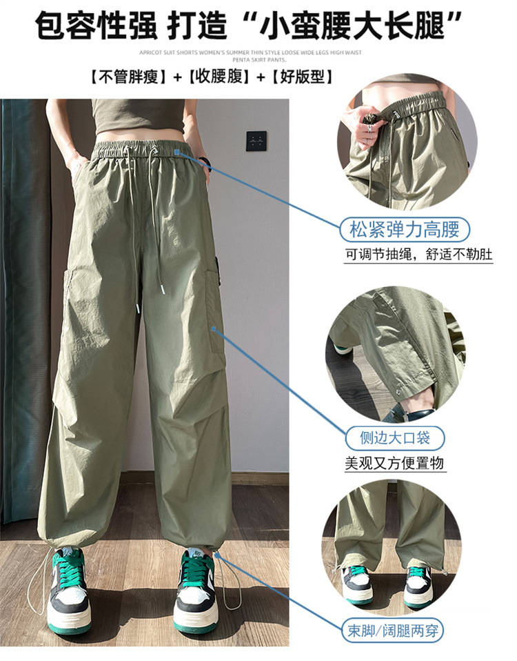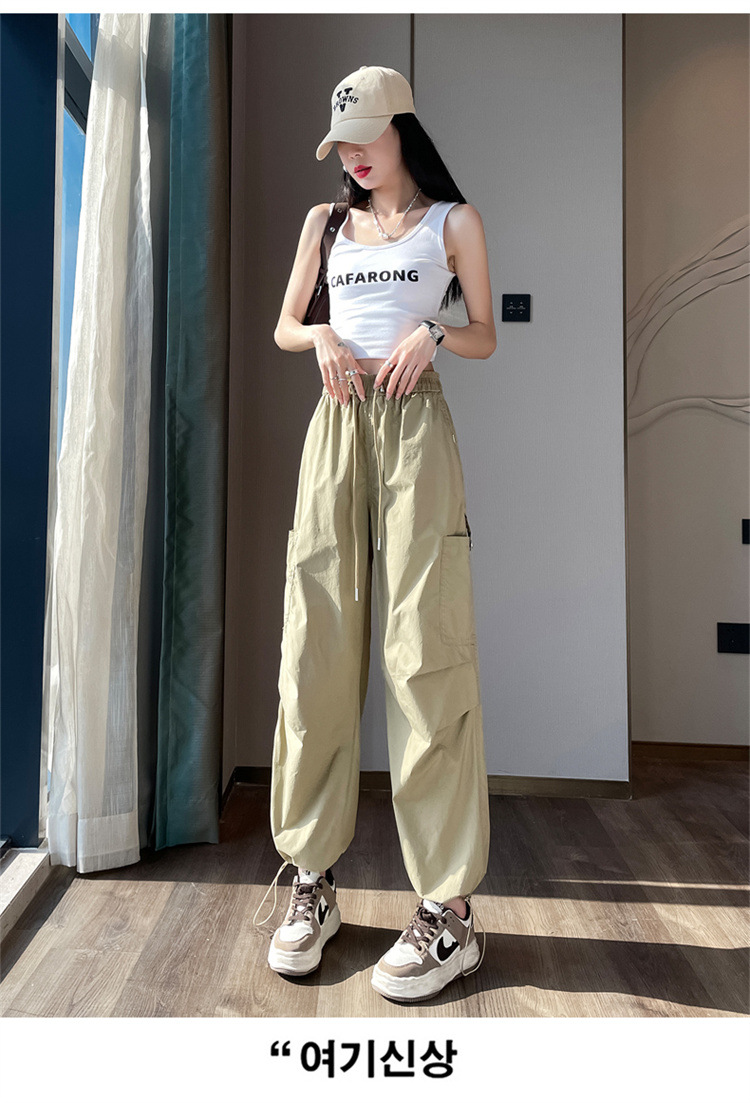 카키 미국의 빠른 건조 오버올 여성용 여름 얇은 등산 바지 하이 웨이스트 캐주얼 드로우 스트링 와이드 레그 낙하산 바지스토어 가기