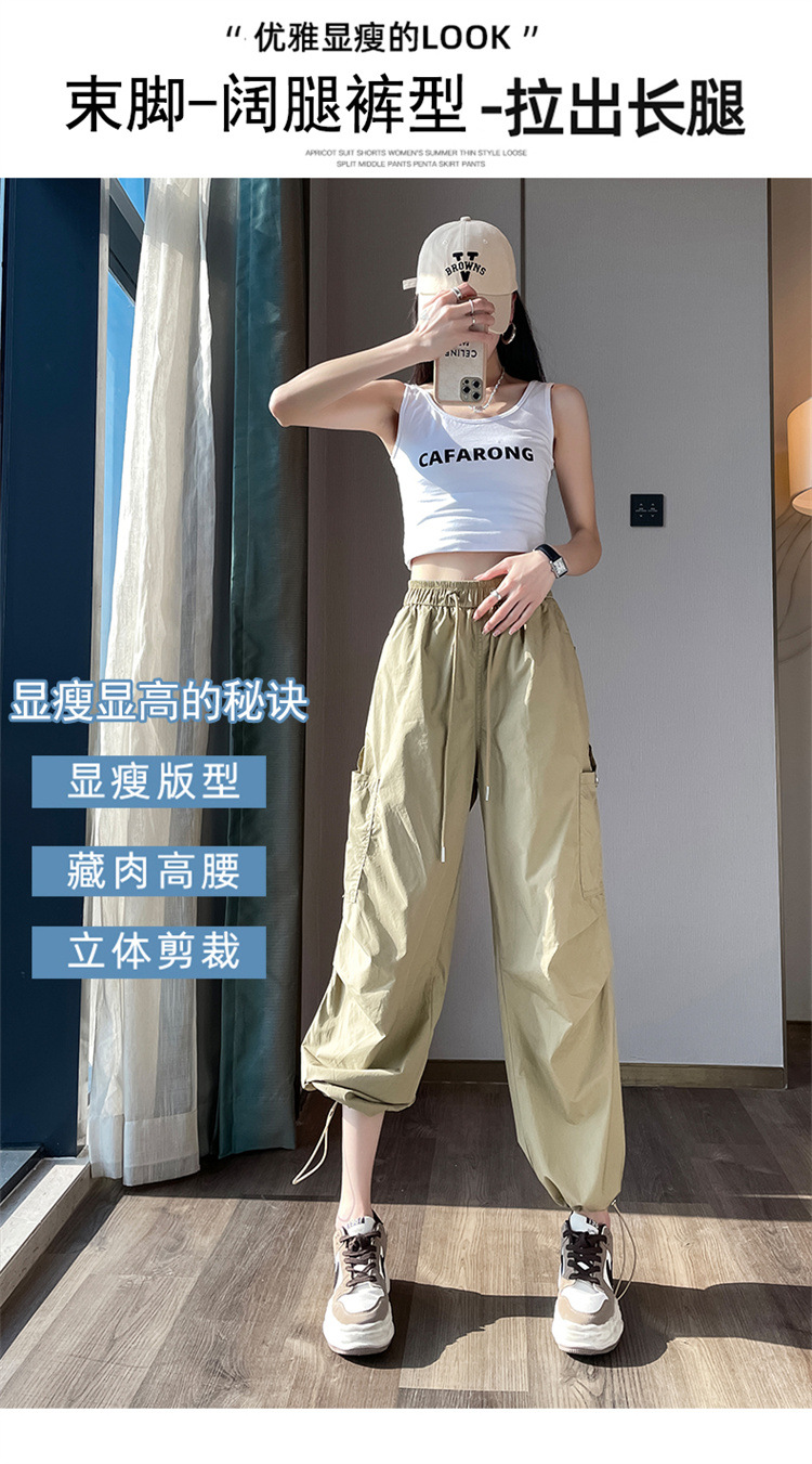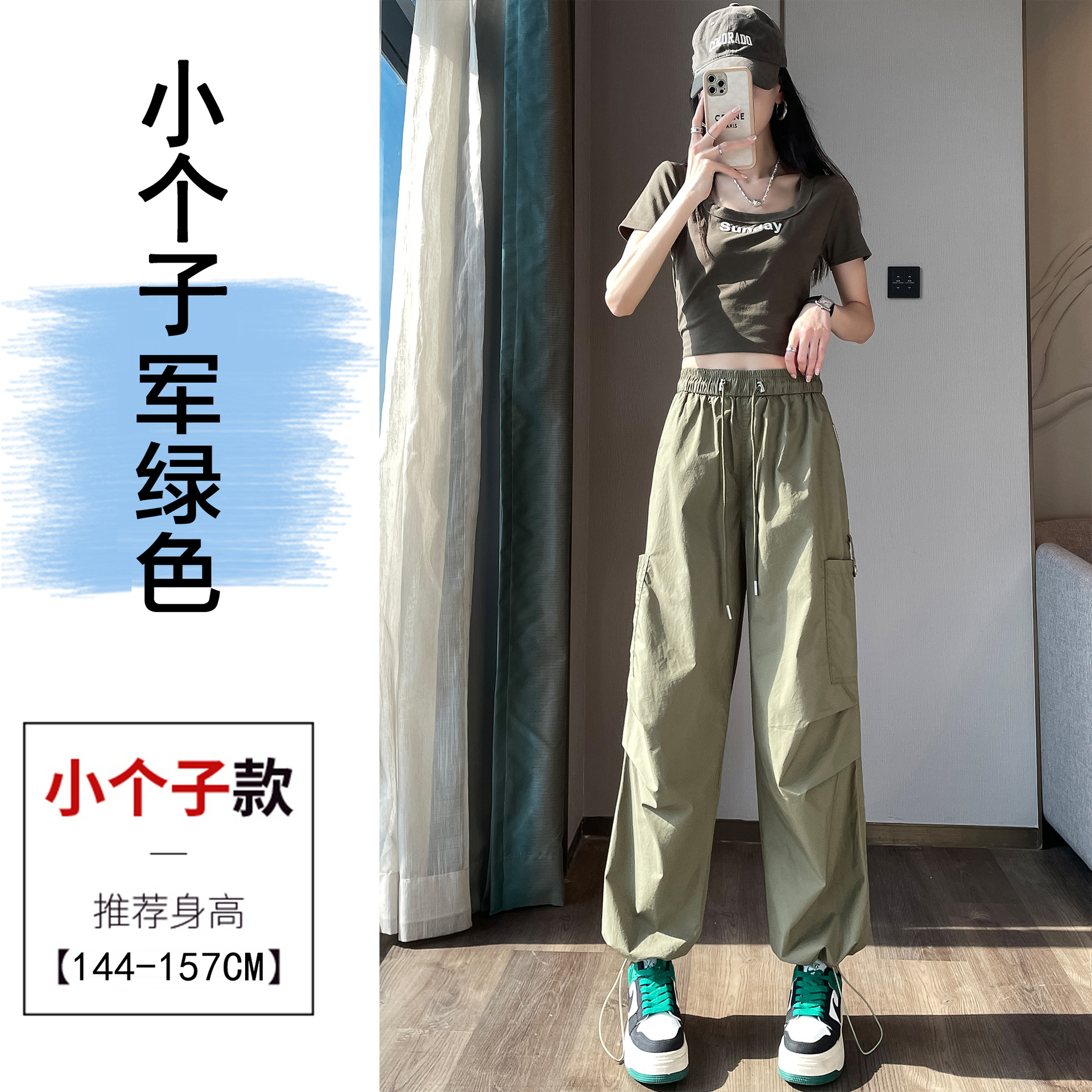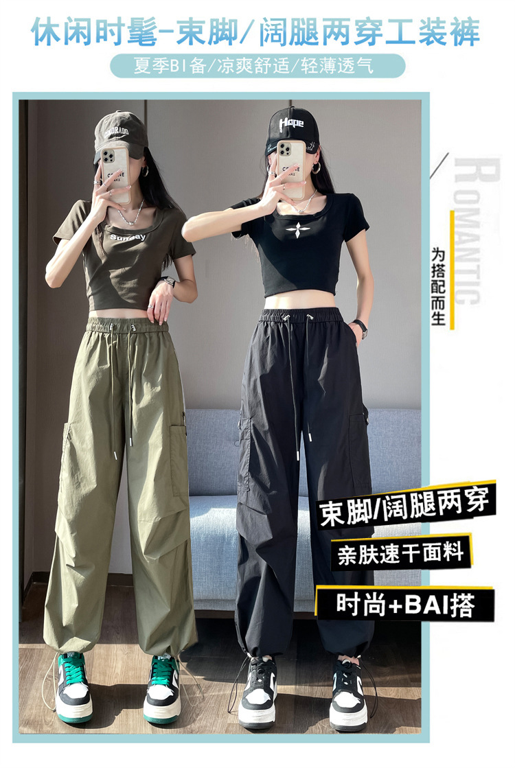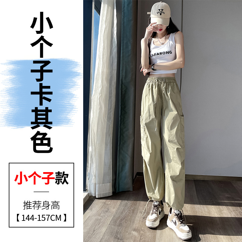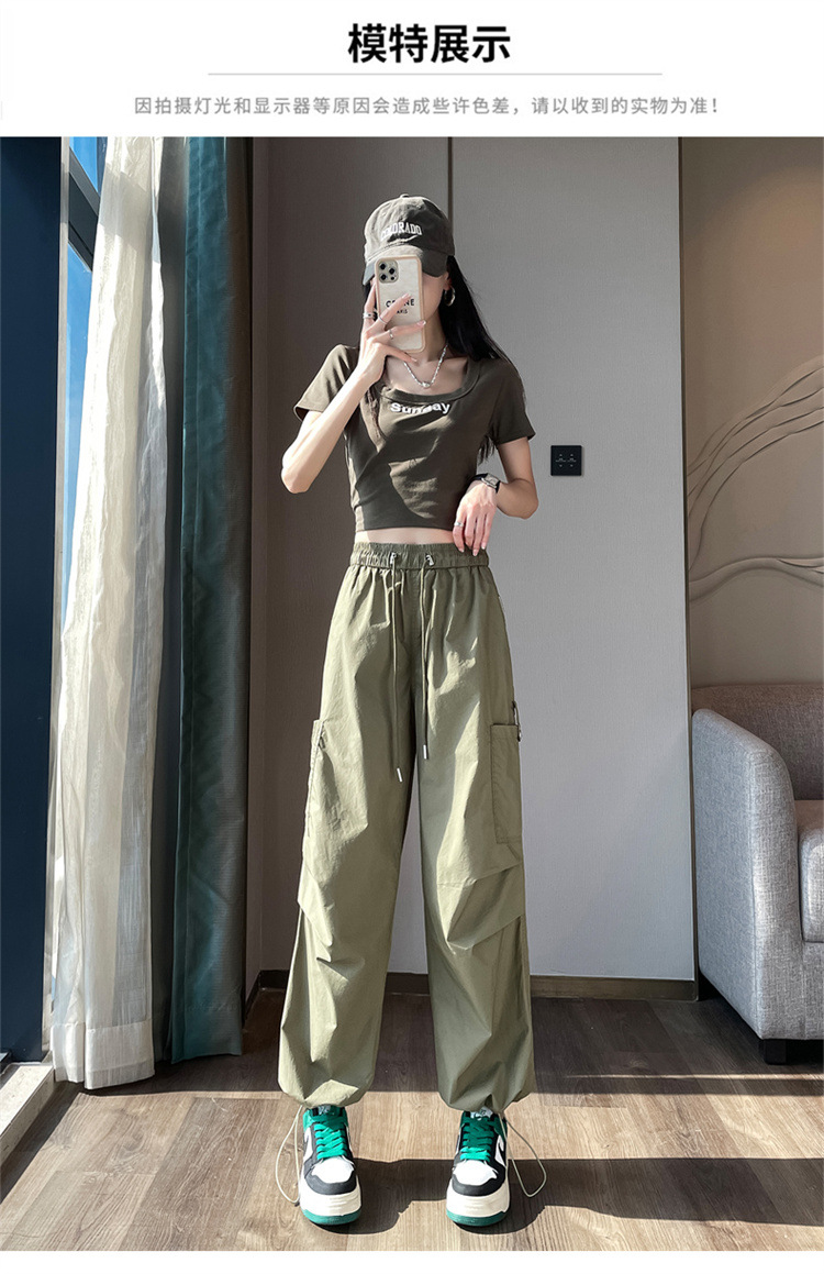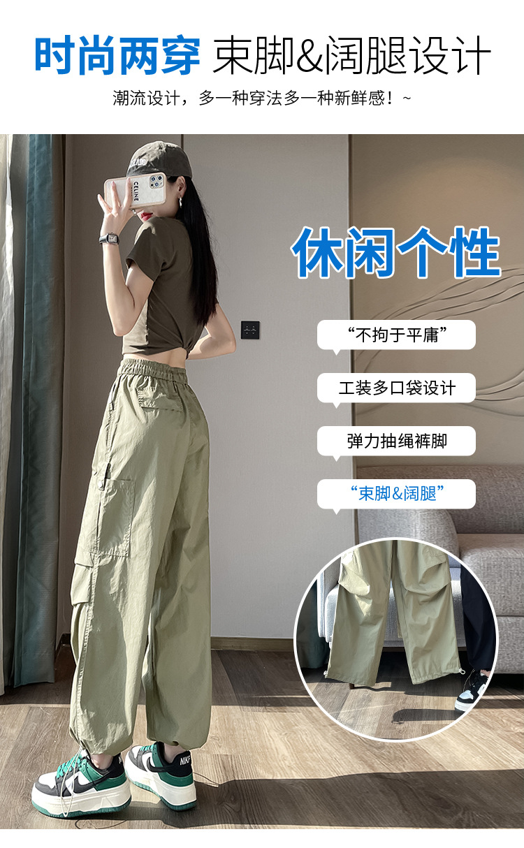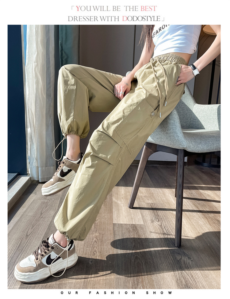 카키 미국의 빠른 건조 오버올 여성용 여름 얇은 등산 바지 하이 웨이스트 캐주얼 드로우 스트링 와이드 레그 낙하산 바지스토어 가기