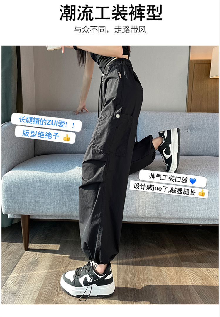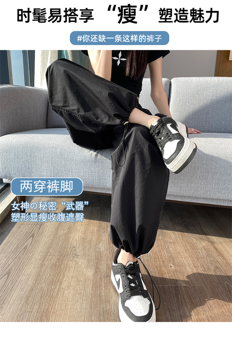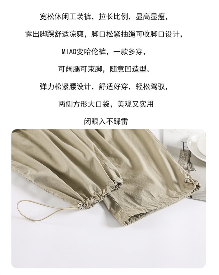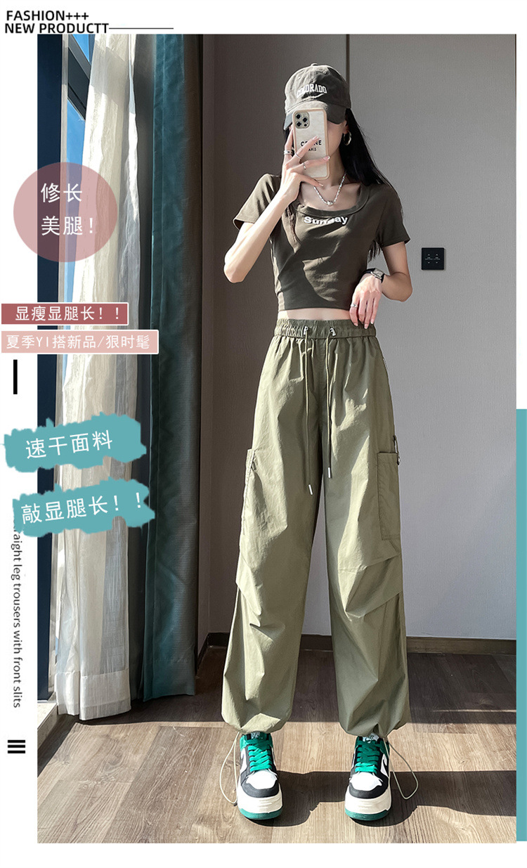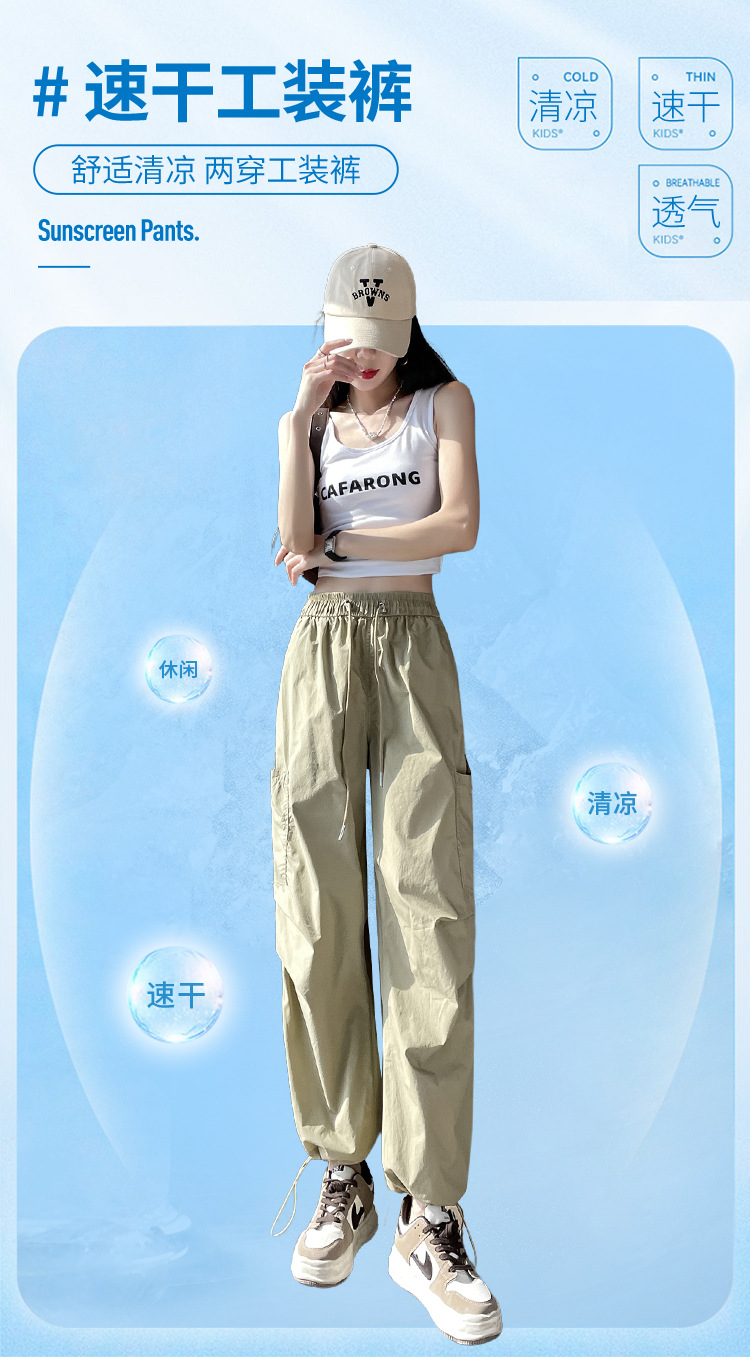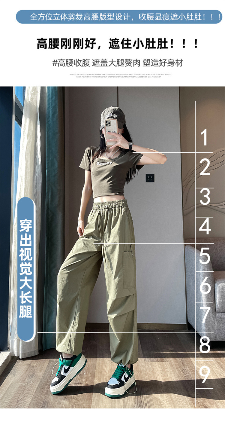 카키 미국의 빠른 건조 오버올 여성용 여름 얇은 등산 바지 하이 웨이스트 캐주얼 드로우 스트링 와이드 레그 낙하산 바지스토어 가기