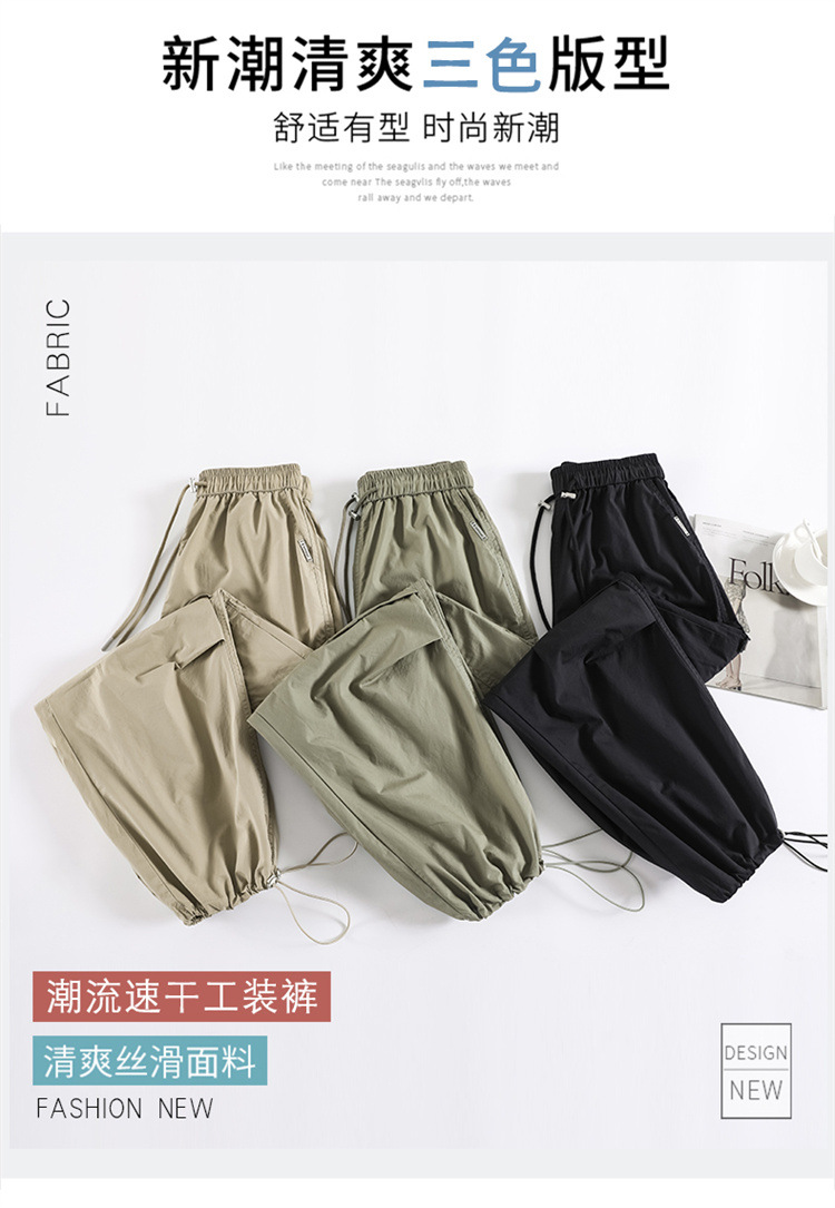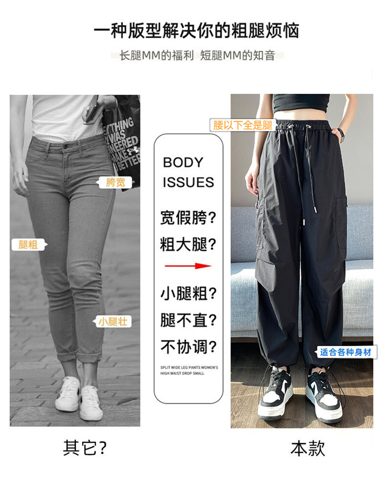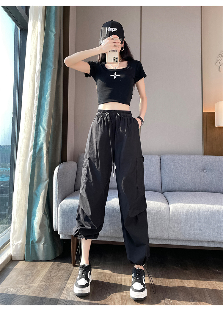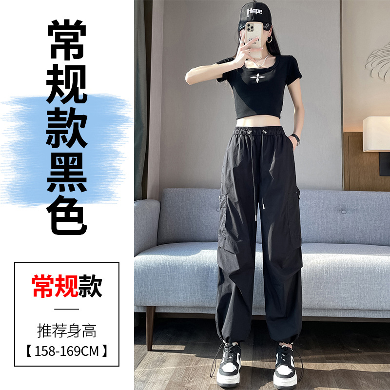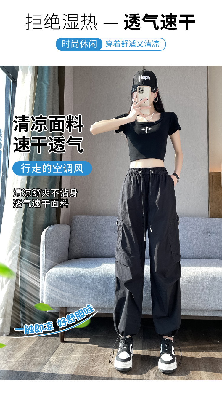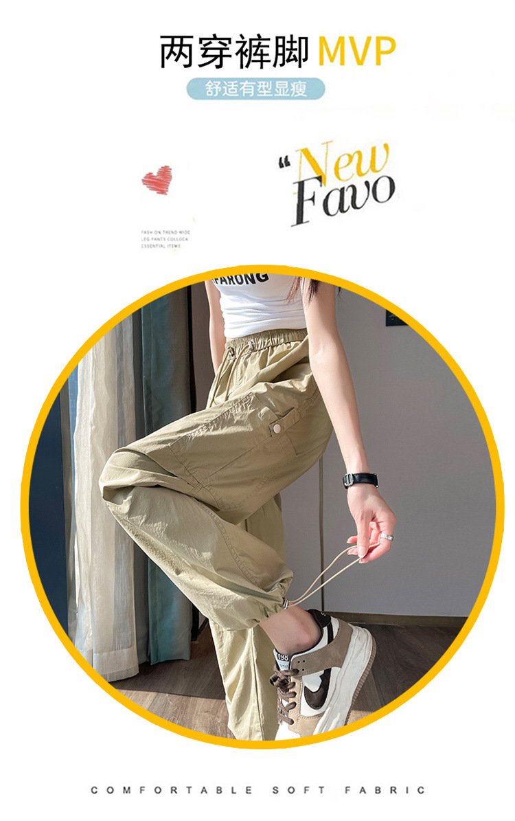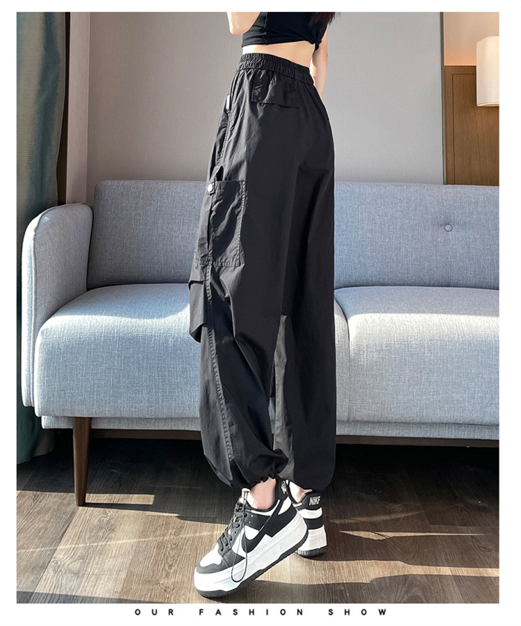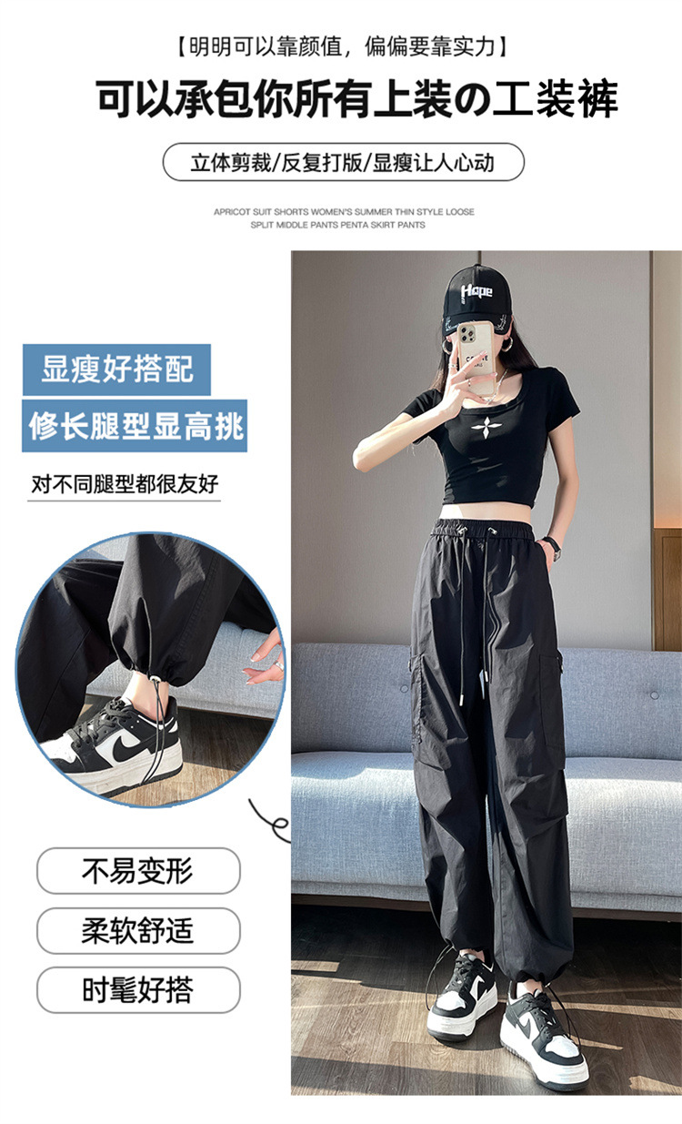 카키 미국의 빠른 건조 오버올 여성용 여름 얇은 등산 바지 하이 웨이스트 캐주얼 드로우 스트링 와이드 레그 낙하산 바지스토어 가기