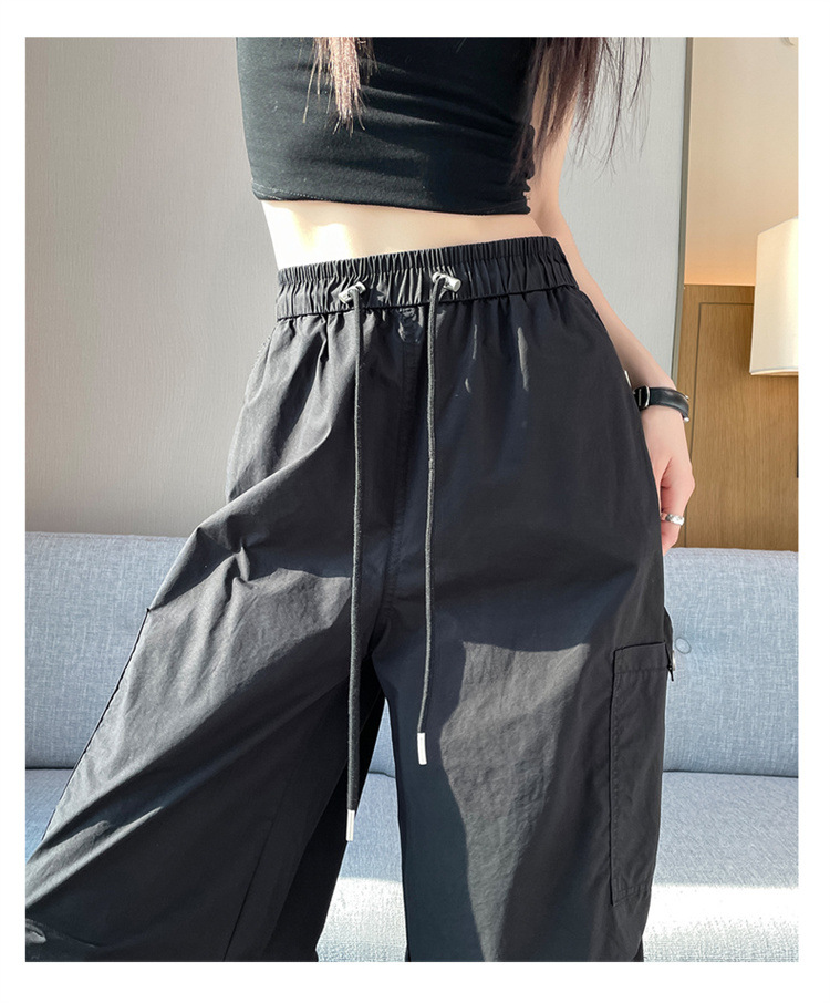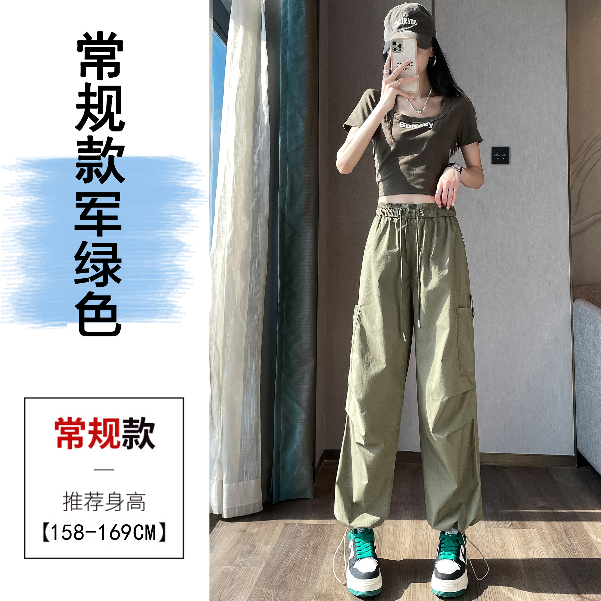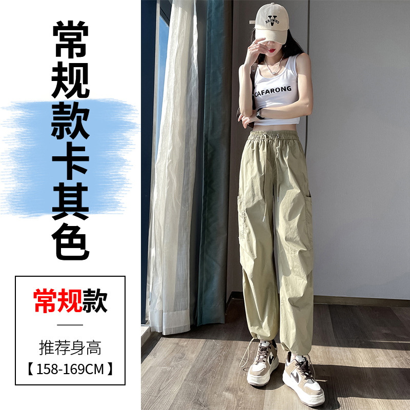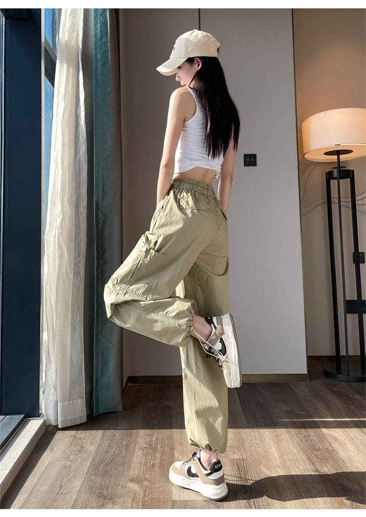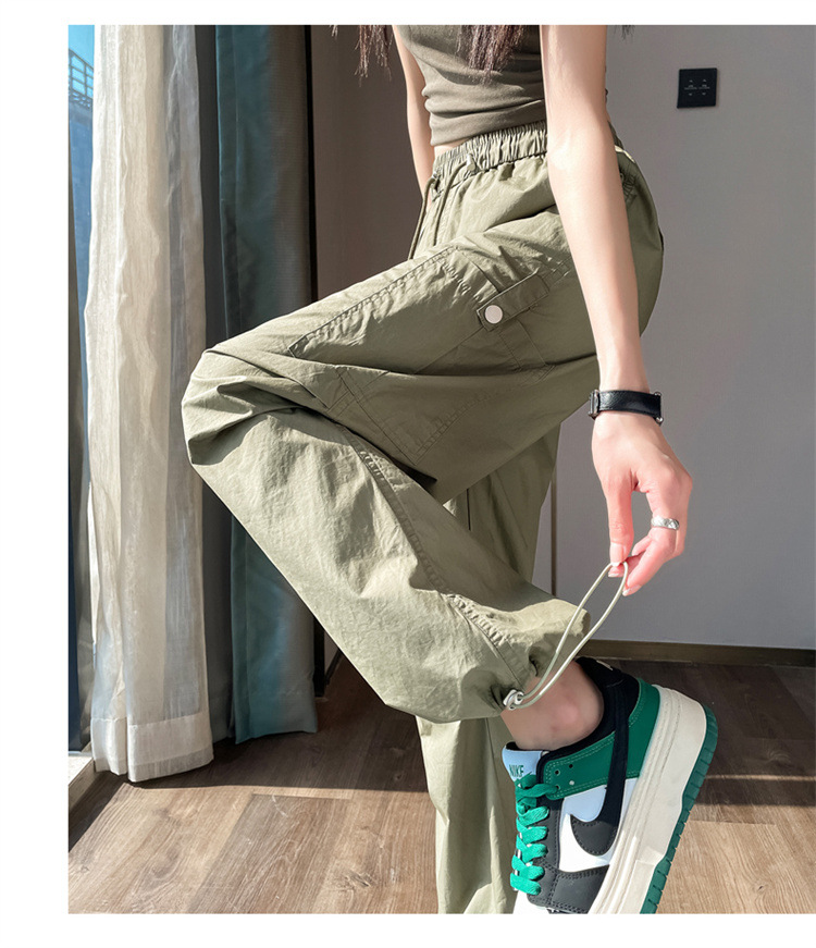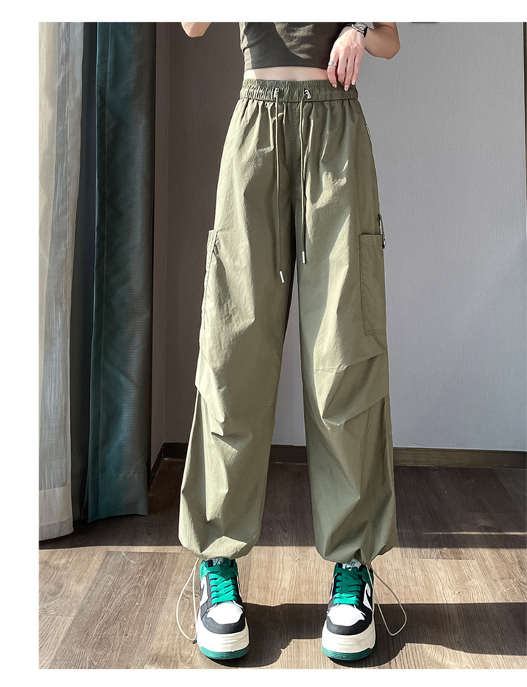 카키 미국의 빠른 건조 오버올 여성용 여름 얇은 등산 바지 하이 웨이스트 캐주얼 드로우 스트링 와이드 레그 낙하산 바지