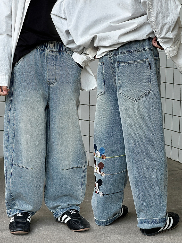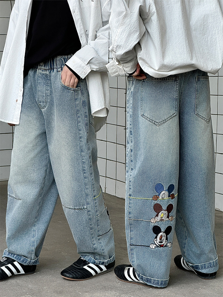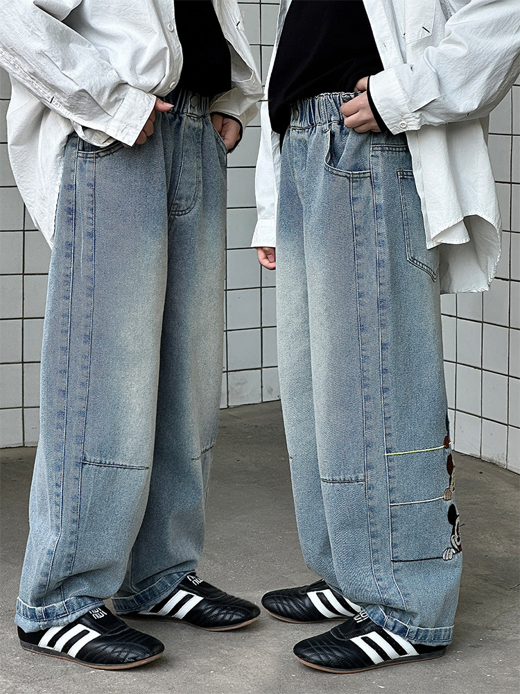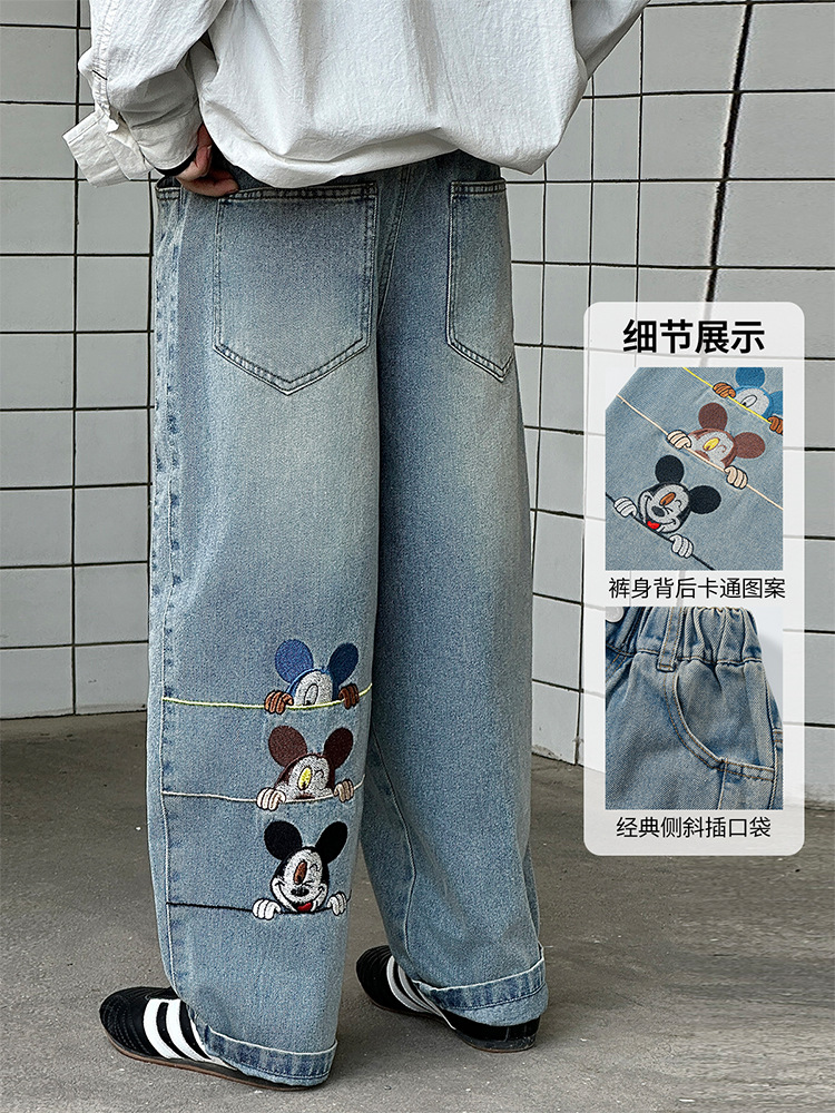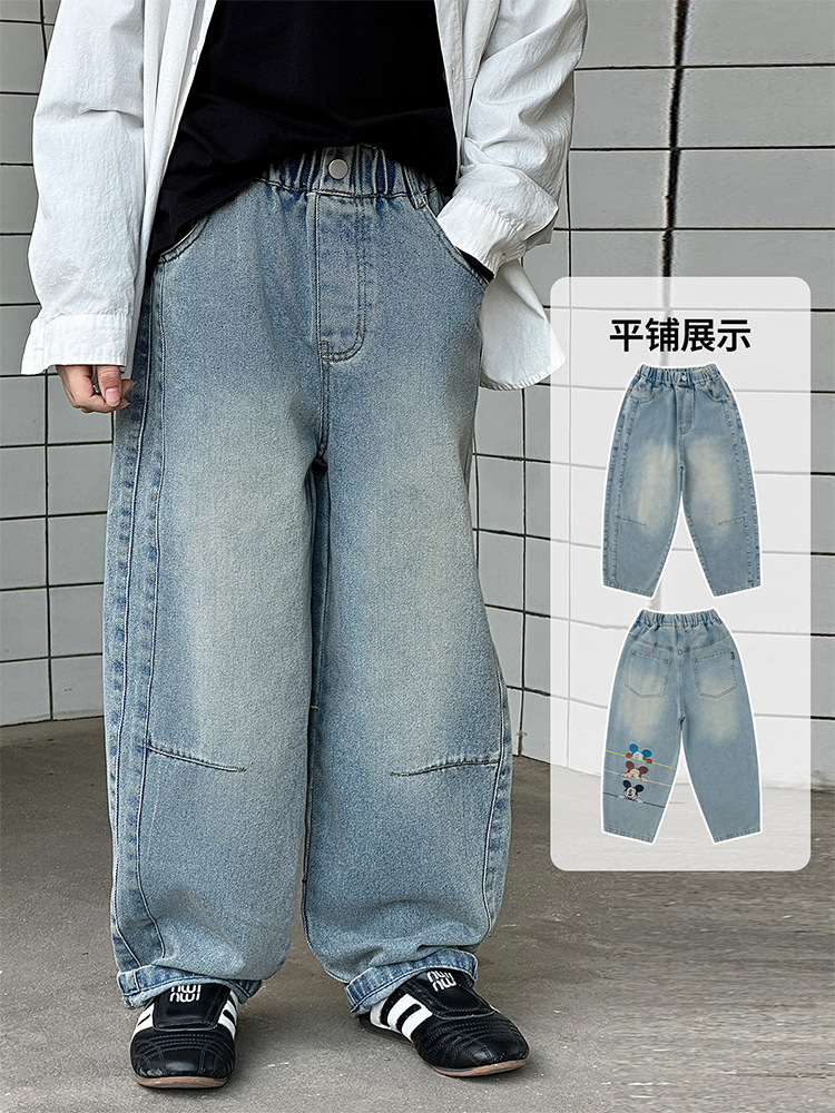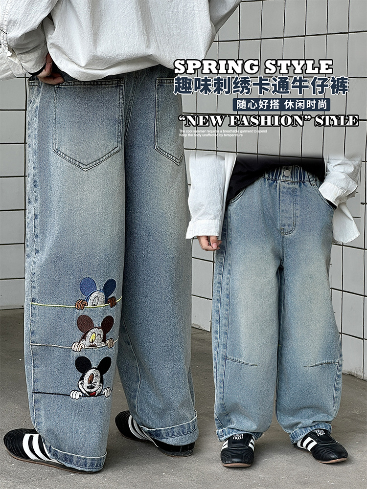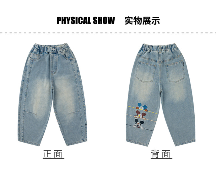 어린이 소년 청바지 2025 봄 새로운 느슨한 만화 재미 맞춤형 자수 서양식 청바지스토어 가기