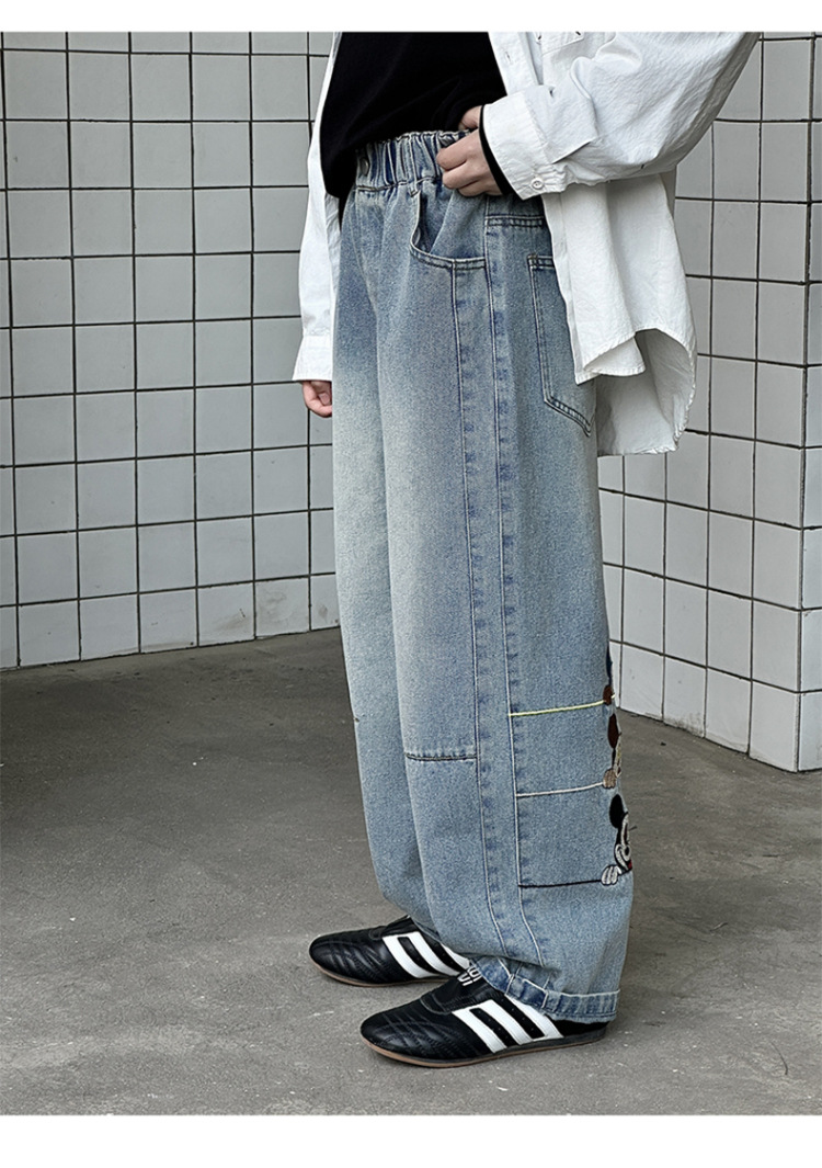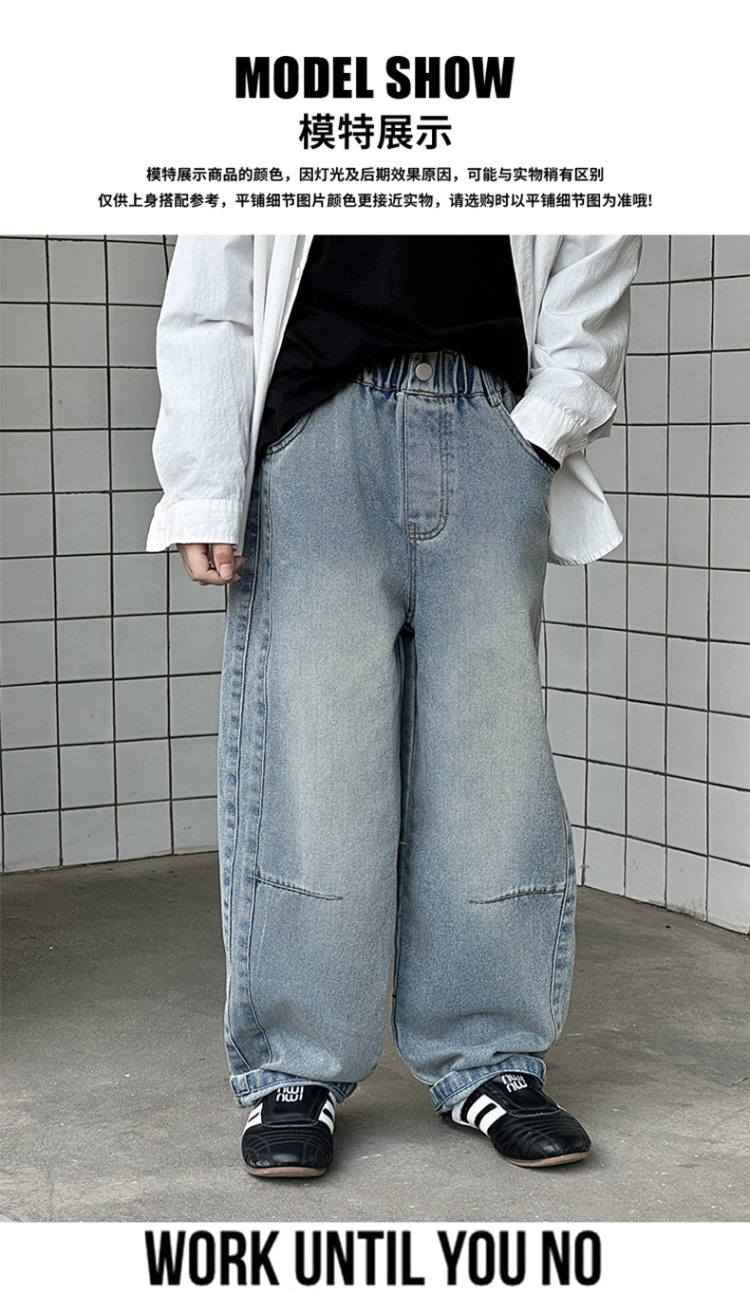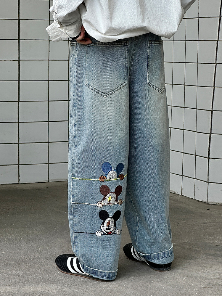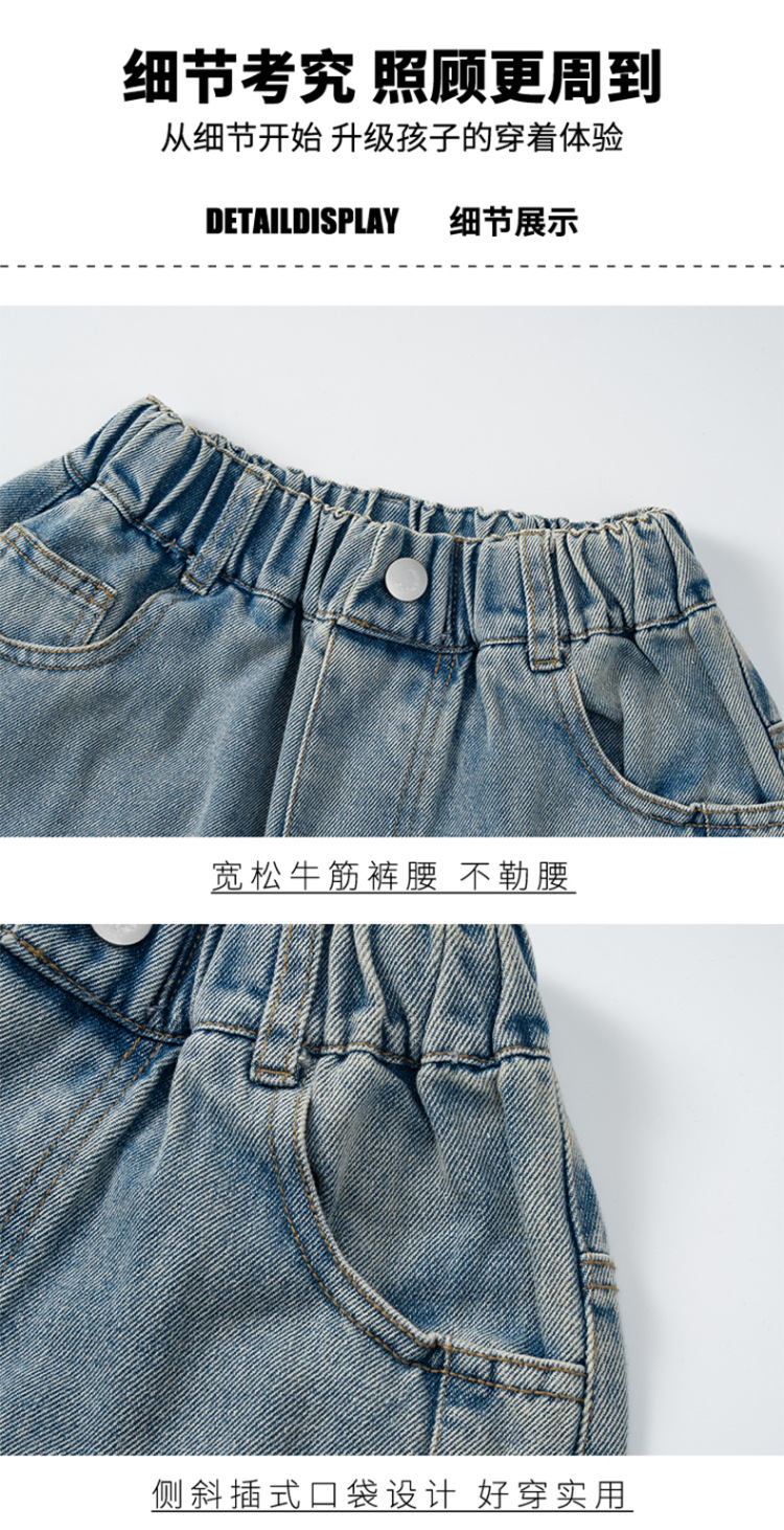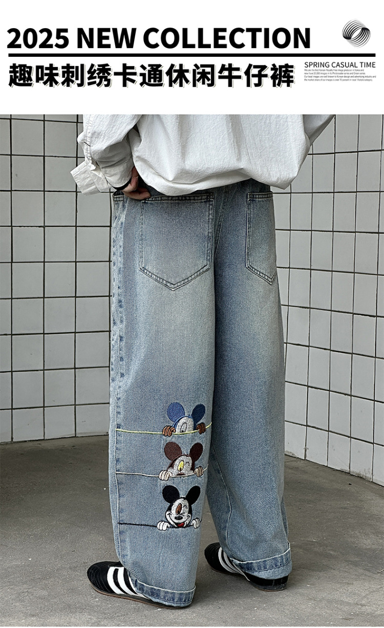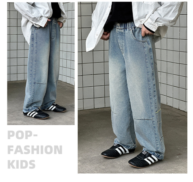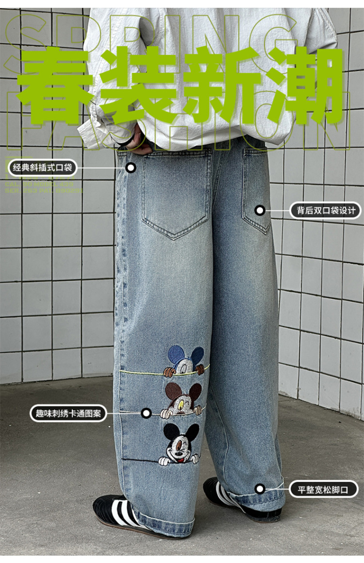 어린이 소년 청바지 2025 봄 새로운 느슨한 만화 재미 맞춤형 자수 서양식 청바지스토어 가기