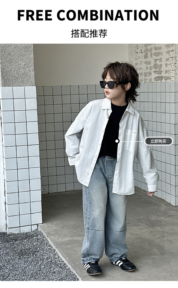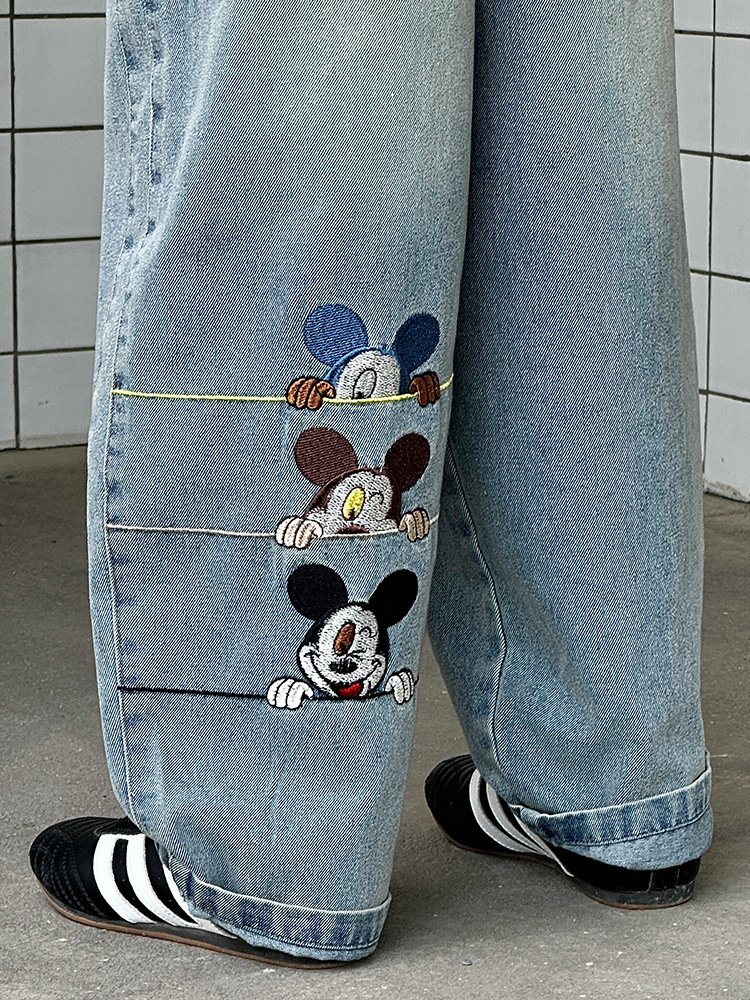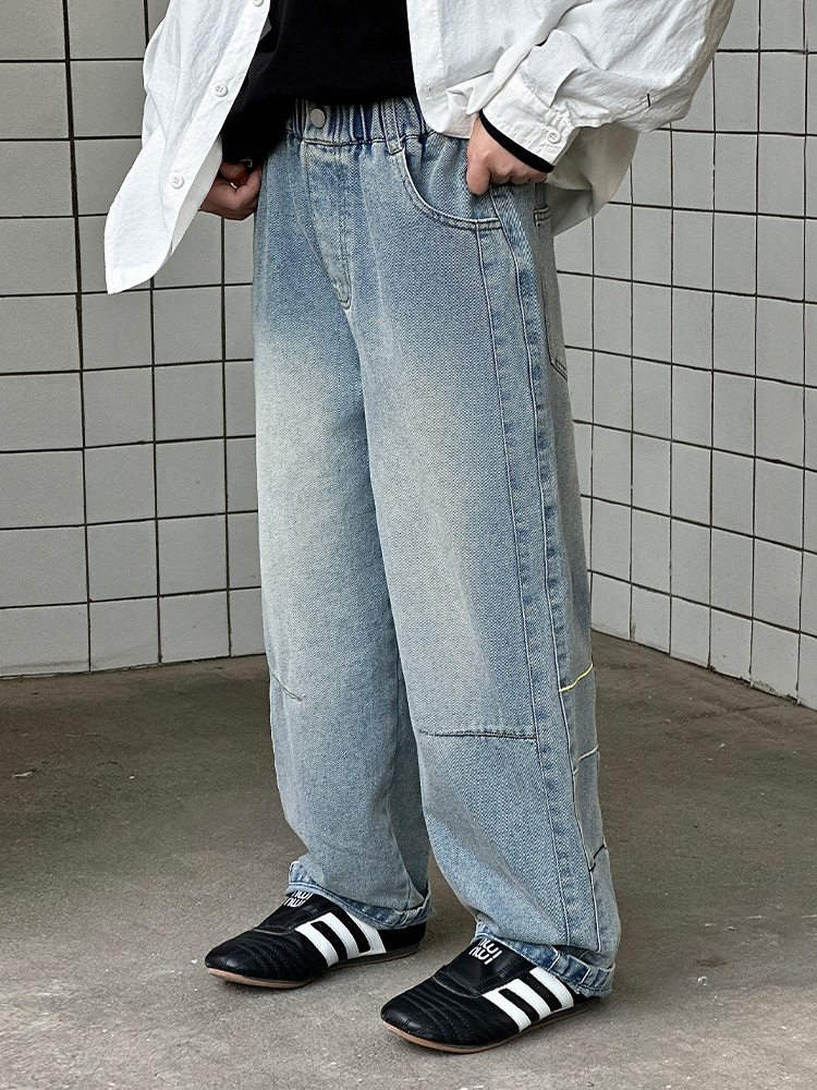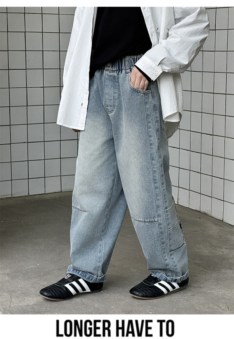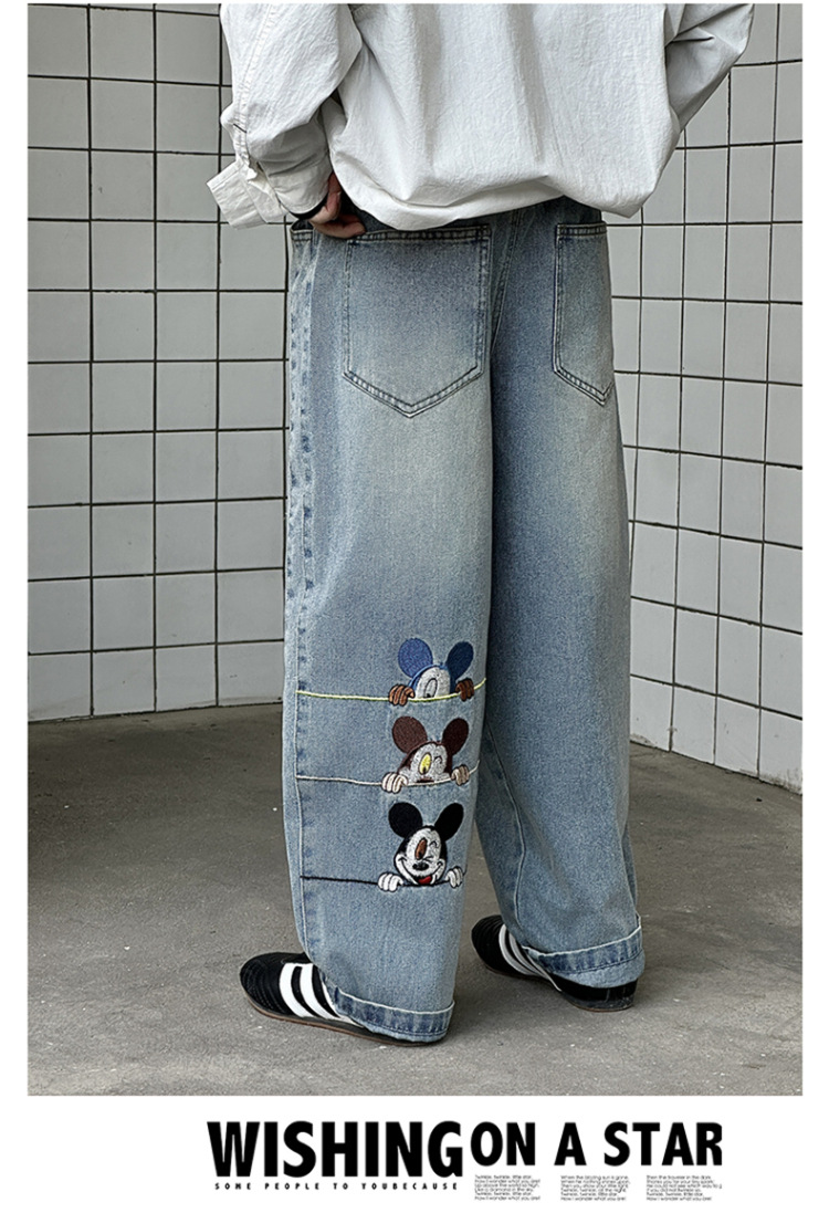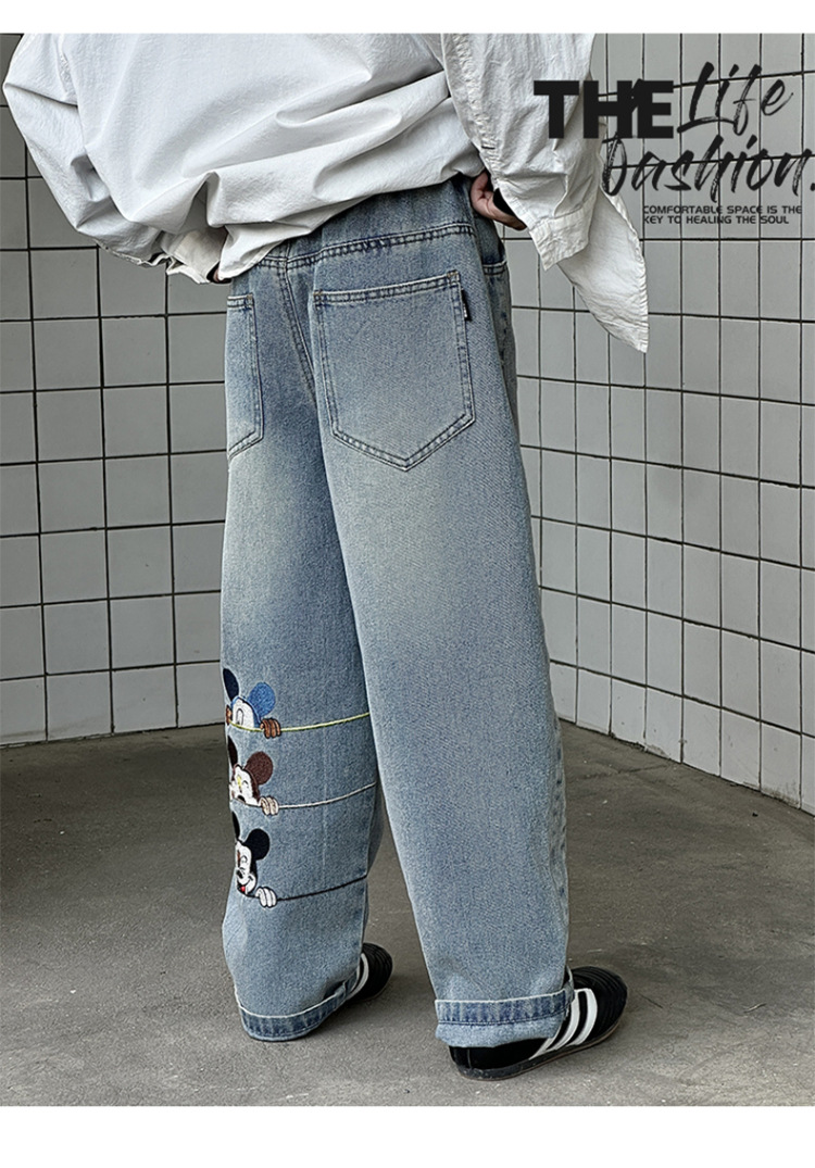 어린이 소년 청바지 2025 봄 새로운 느슨한 만화 재미 맞춤형 자수 서양식 청바지스토어 가기