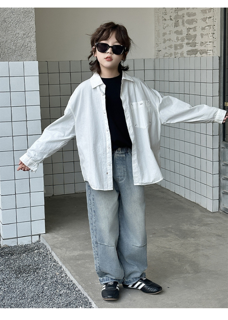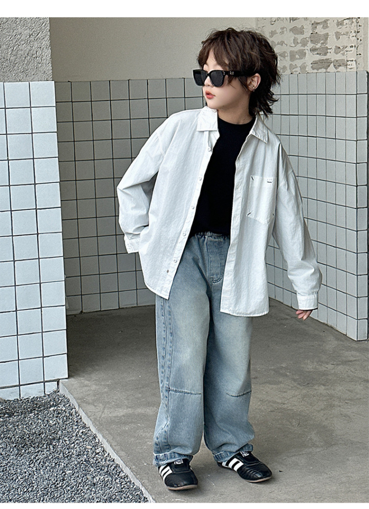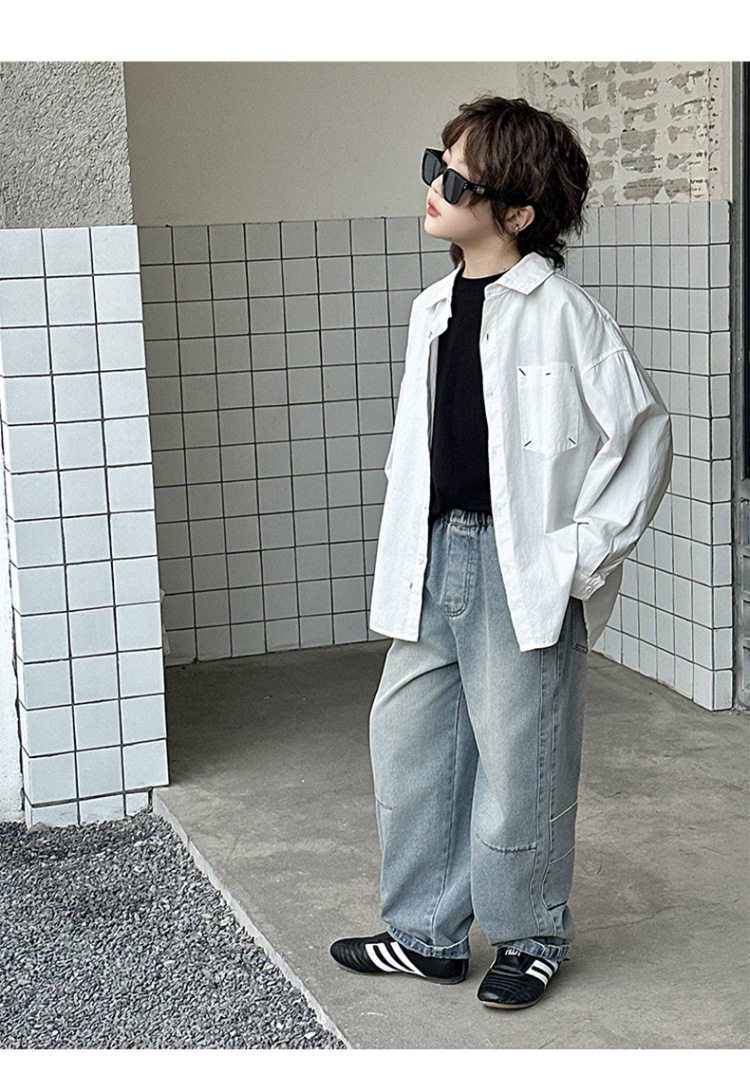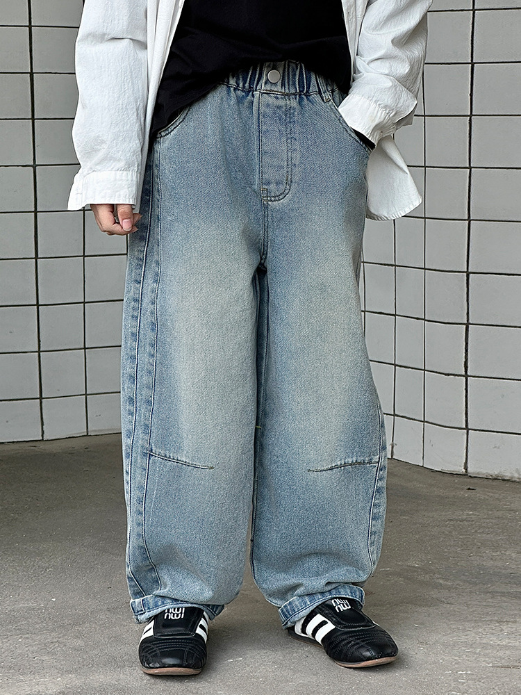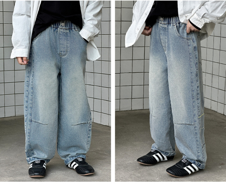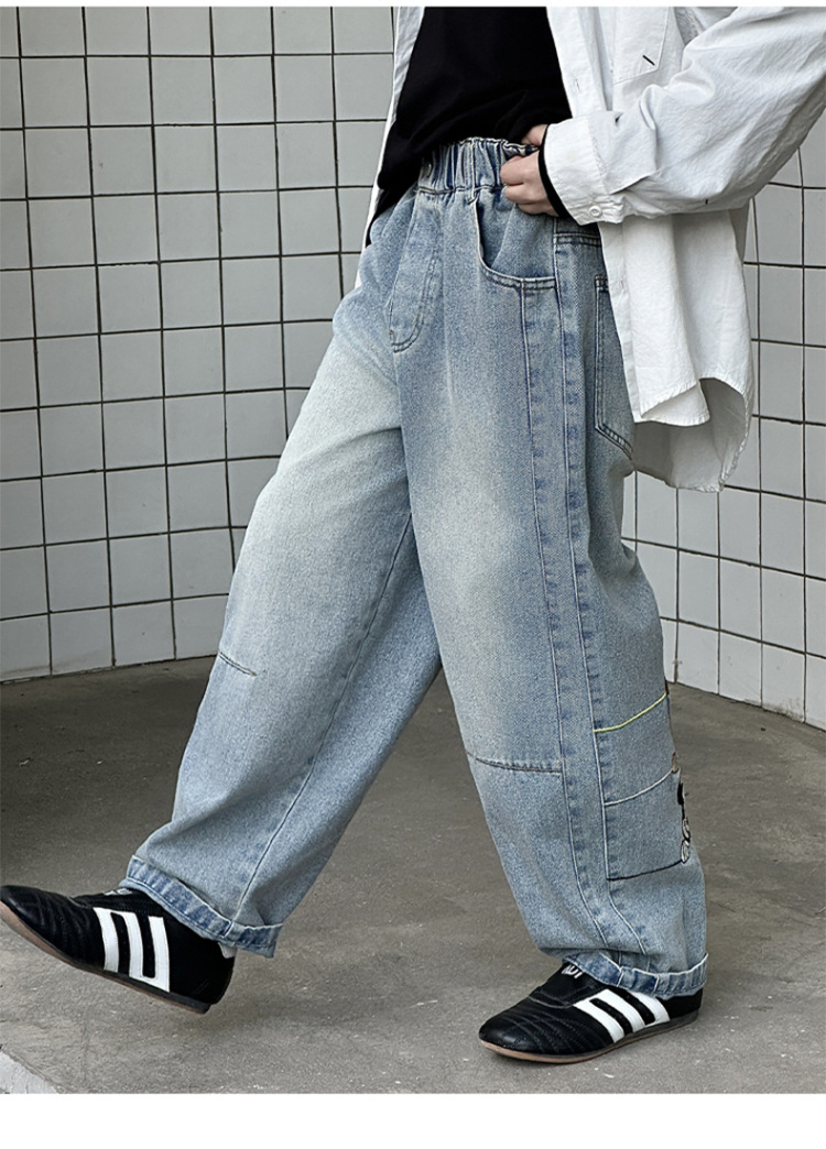 어린이 소년 청바지 2025 봄 새로운 느슨한 만화 재미 맞춤형 자수 서양식 청바지