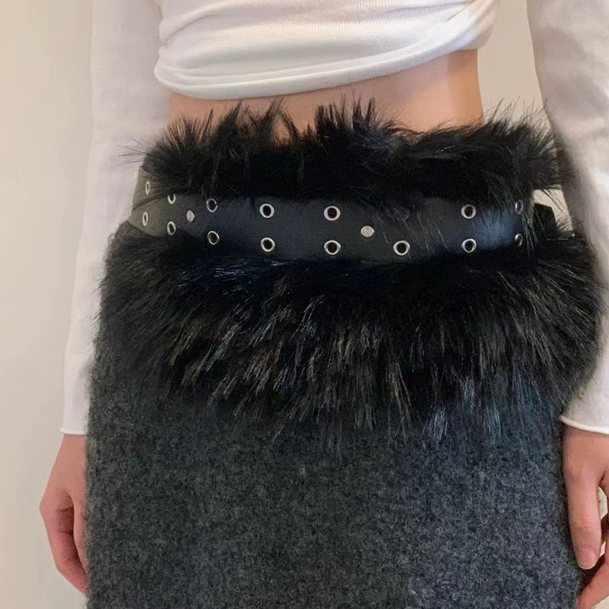 새로운 틈새 미국 스타일 뜨거운 소녀 와이드 가짜 모피 모피 허리 씰 가죽 벨트 패션 허리 유행