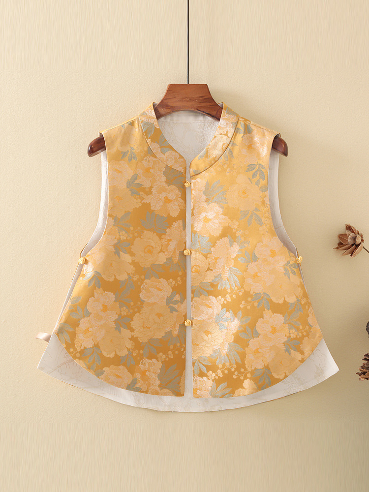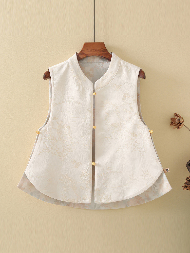새로운 중국 스타일 양면 국가 스타일 조끼 2025 봄 새로운 조끼 여성 복고풍 민족 스타일 조끼