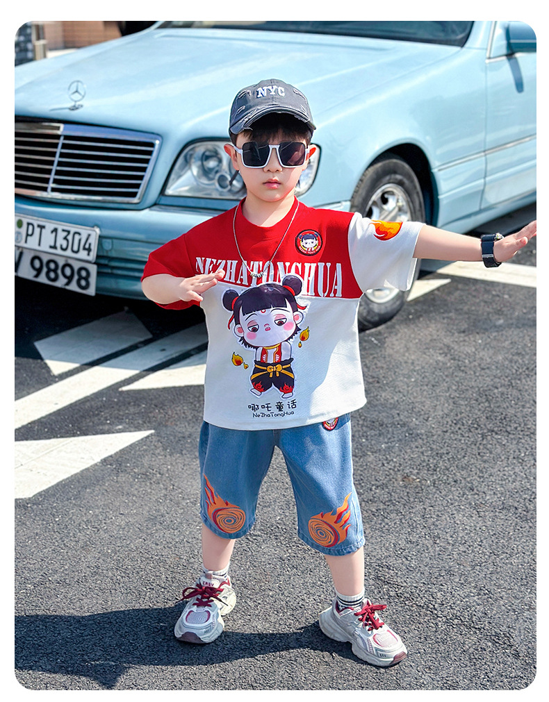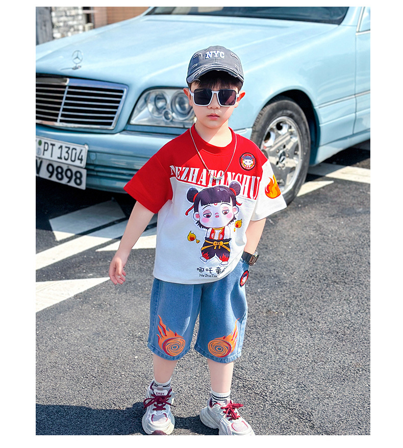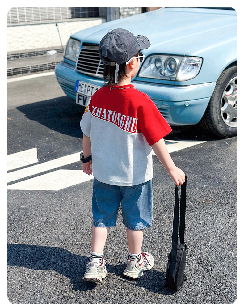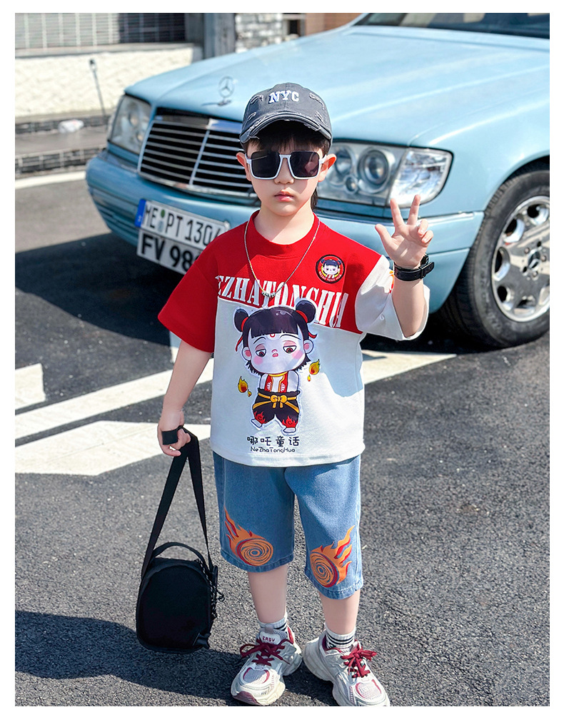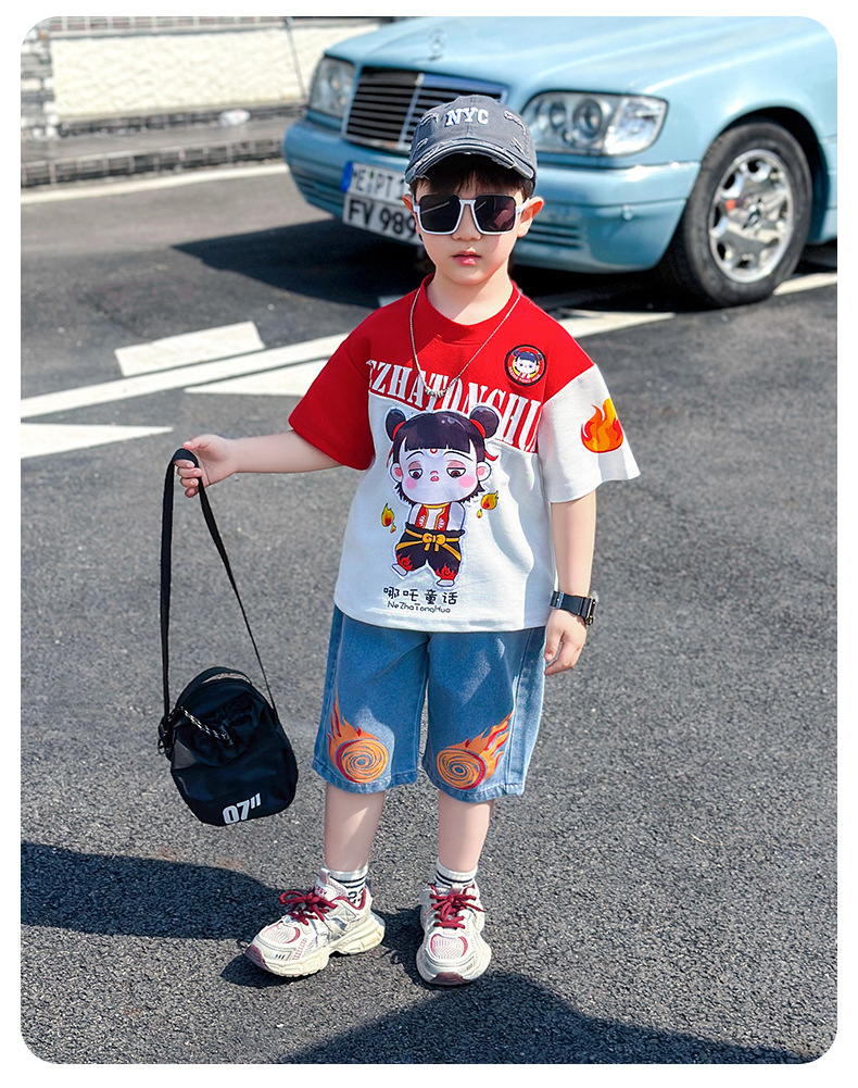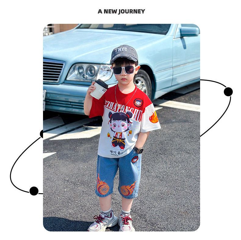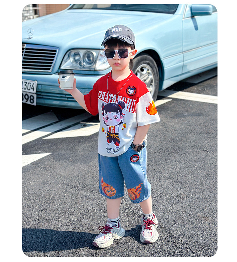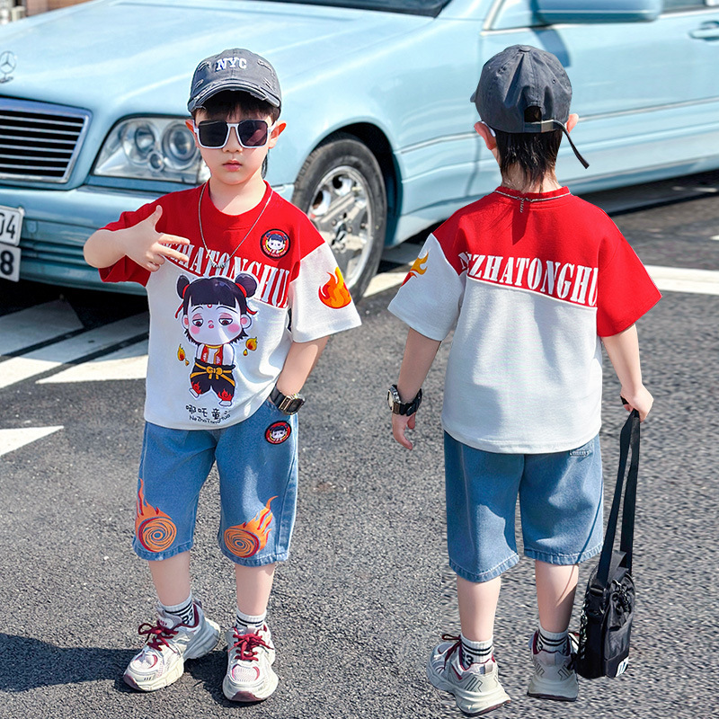 어린이 반팔 세트 소년 여름 옷 2025 새로운 멋진 잘 생긴 소년 옷 아기 여름 어린이 옷스토어 가기
