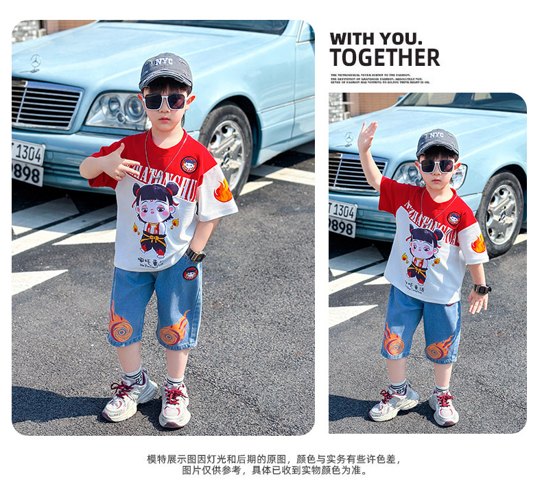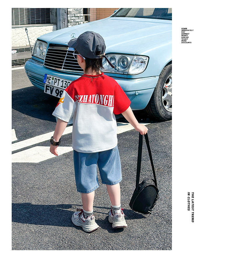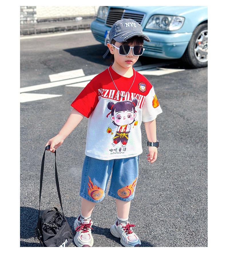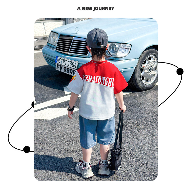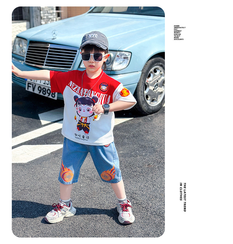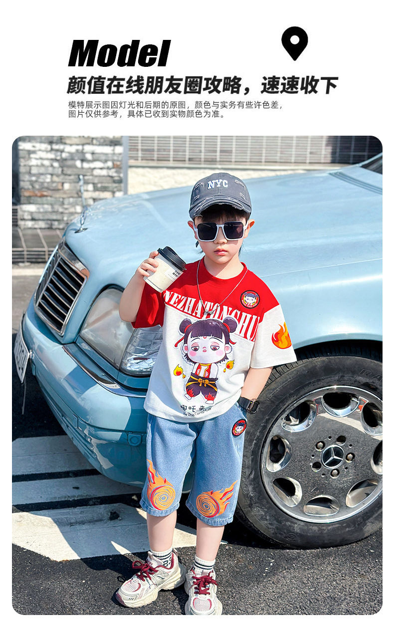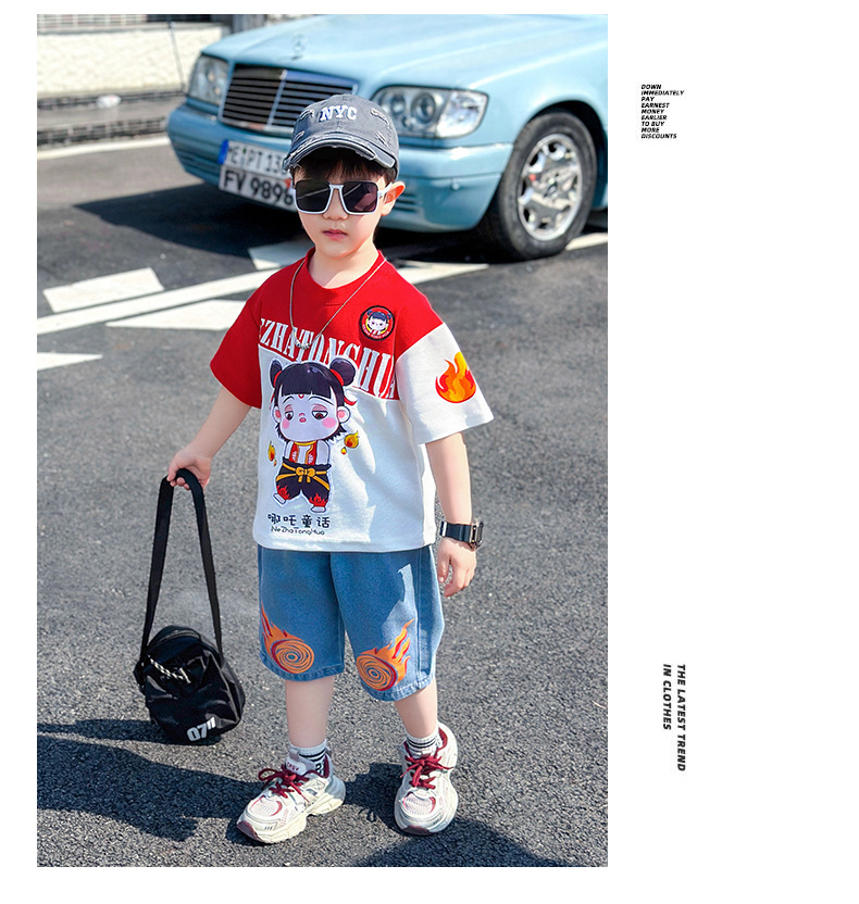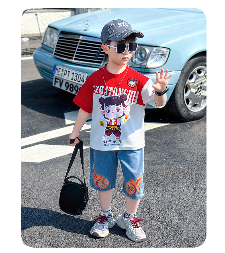 어린이 반팔 세트 소년 여름 옷 2025 새로운 멋진 잘 생긴 소년 옷 아기 여름 어린이 옷스토어 가기