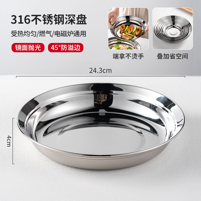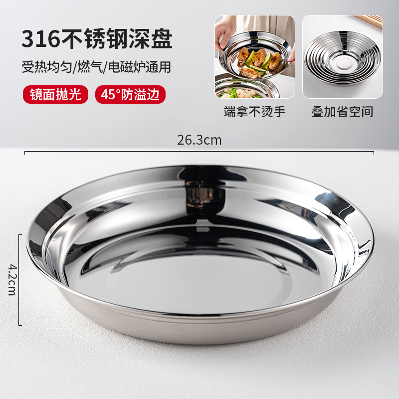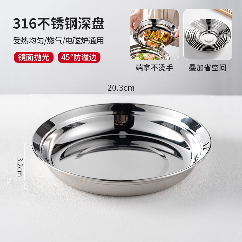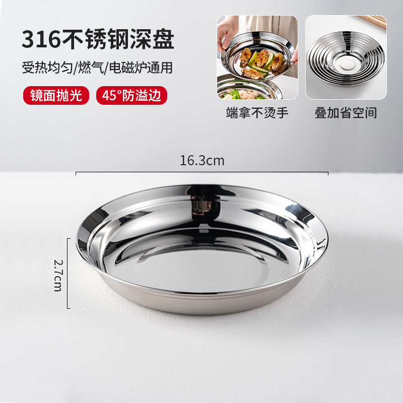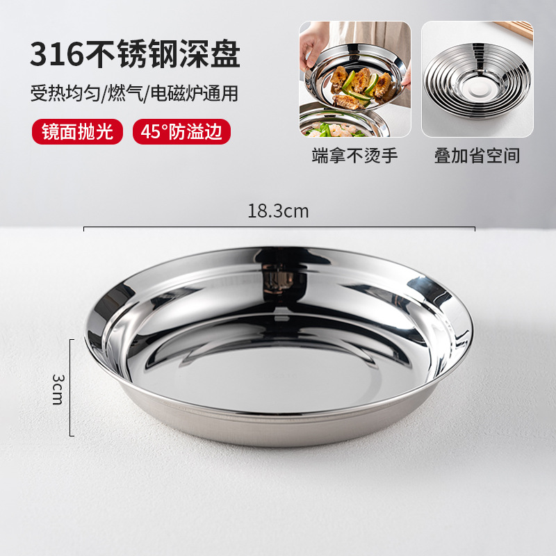 316 스테인레스 스틸 깊은 접시 식품 등급 두꺼운 가정용 주방 원형 접시 접시 접시 식기 상업용 접시스토어 가기