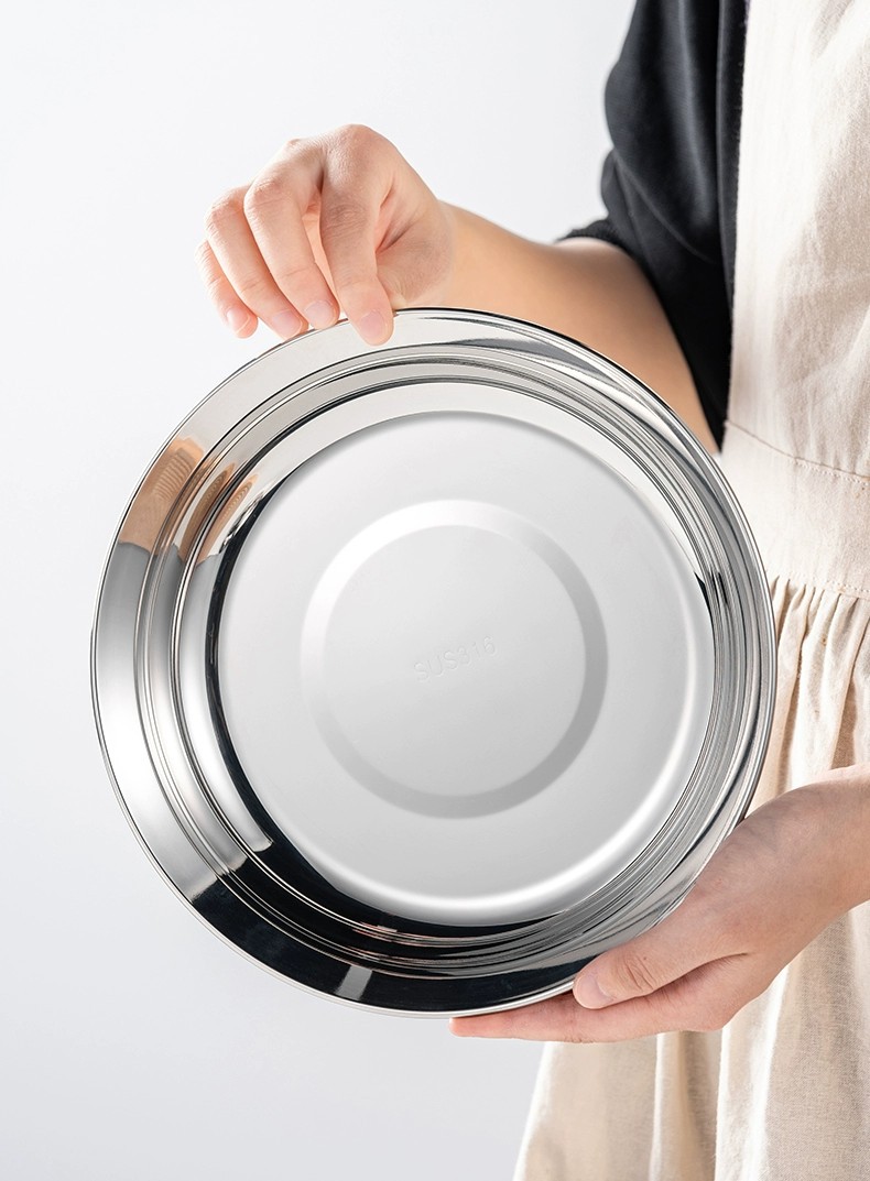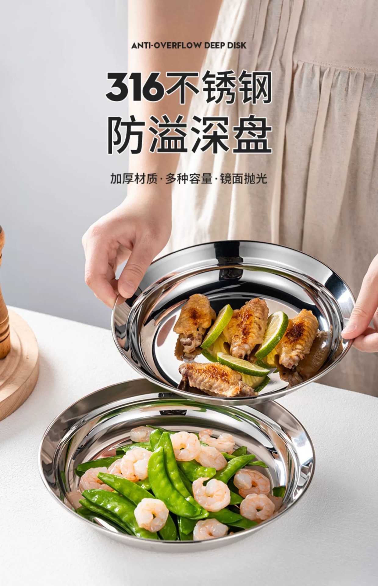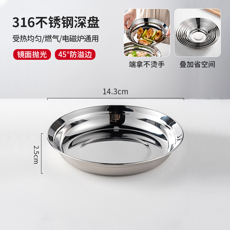 316 스테인레스 스틸 깊은 접시 식품 등급 두꺼운 가정용 주방 원형 접시 접시 접시 식기 상업용 접시
