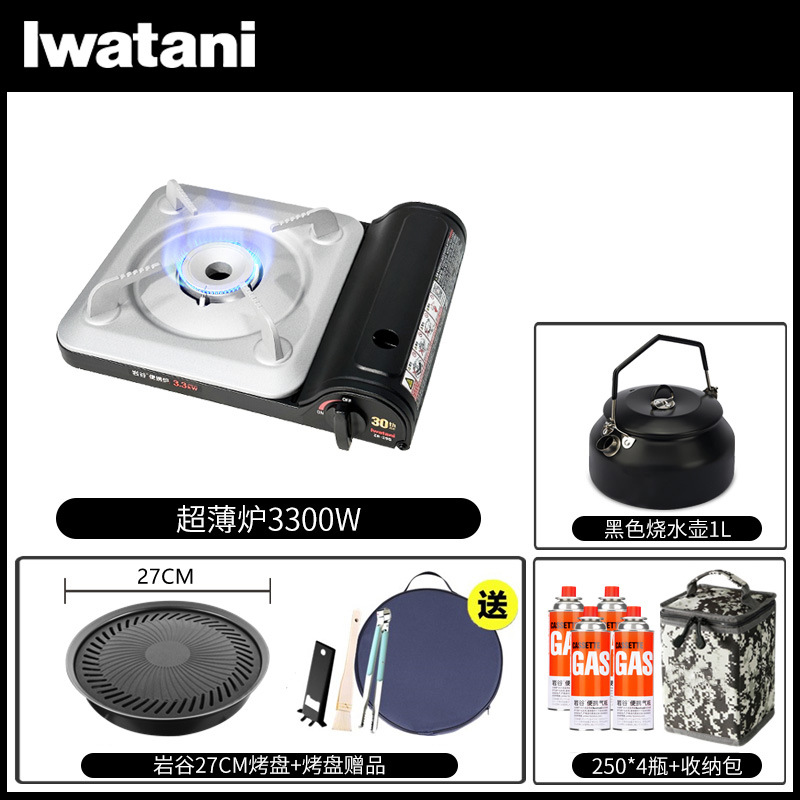 • "이와타니 브랜드 블랙 카세트 스토브 주전자 식사"
